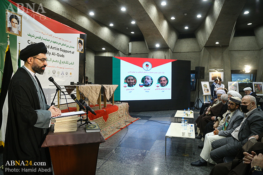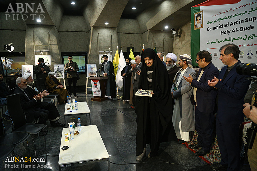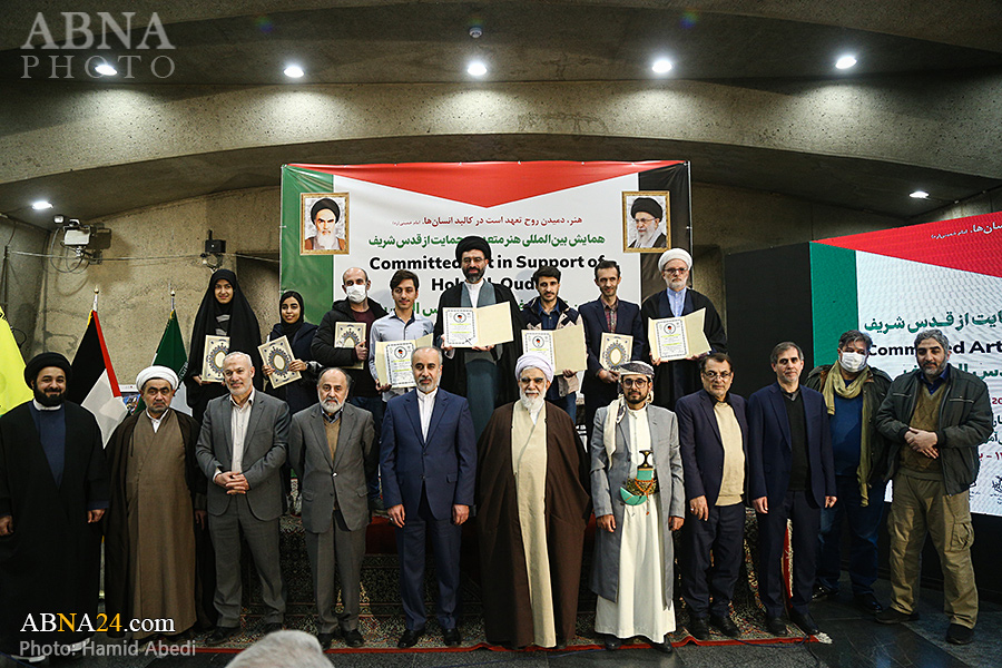 The closing and awarding ceremony of this festival, as well as the International Conference “Committed Art in Support of Holy al-Quds”, was held on Monday, February 20, 2023, at Ayeneh Hall of the Azadi Tower by the Committee for the Support of the Islamic Revolution of the Palestinian People affiliated with the Presidential Administration of the Islamic Republic of Iran, with the collaboration of the AhlulBayt (a.s.) World Assembly, Al-Wafa Islamic Party from Bahrain, Nujaba Islamic Movement from Iraq, Cultural-Artistic Center of the Islamic Revolution (Azadi Tower), ABNA News Agency, Martyr Fazel Center for Strategic Studies of Iraq, and Safir Network.