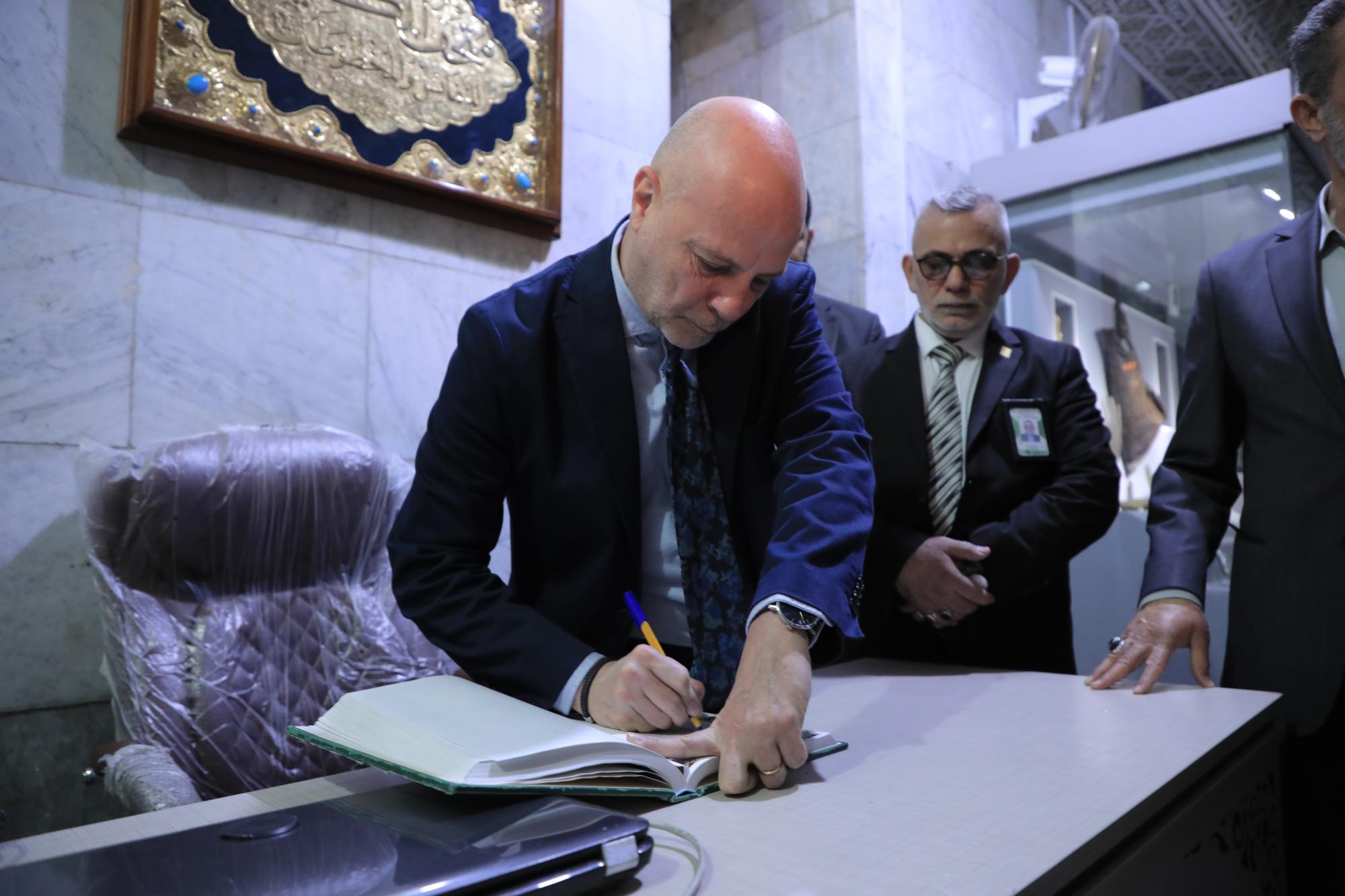 During his meeting with the secretary-general of the Al-Abbas's (p) Shrine; Sayed Mustafa Mortadha Aal Dea' Uddin, Mr. Cordoni listened to a detailed explanation of the holy shrine's efforts in the field of serving its visitors and the community, introducing him to the expansion projects that the shrine is working on to provide more spaces for visitors, especially on the days of major Ziyarat, in which millions of visitors flock to Karbala.