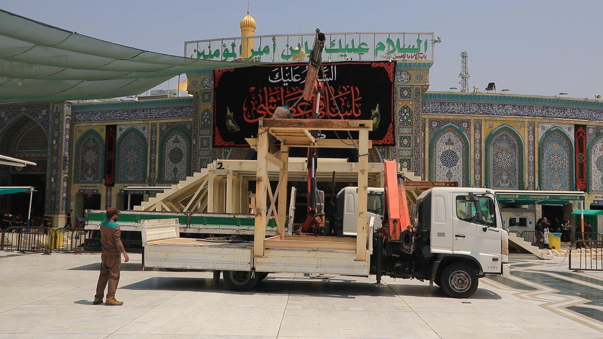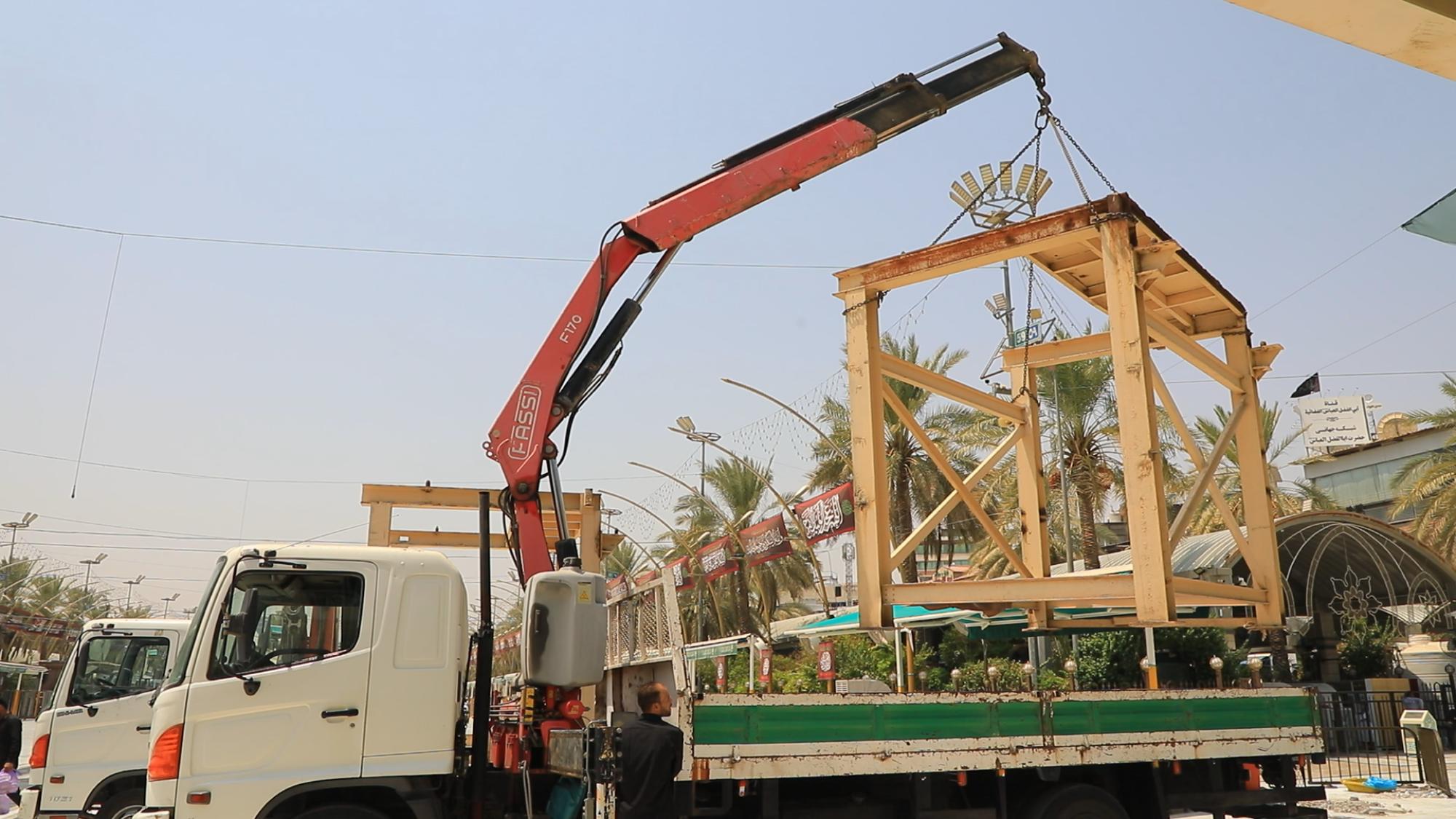 Engineer Ammar Salah Mahdi from the site said that " the technical staff has started installing the Iron Bridge to facilitate the smooth passage of visitors arriving at the shrine of Aba al-Fadl al-Abbas(peace be upon him) during the Ziyarat Arba'een of Imam al-Hussayn (peace be upon him), and to ensure that their movement does not intersect with the passage of the hussayni condolence processions.