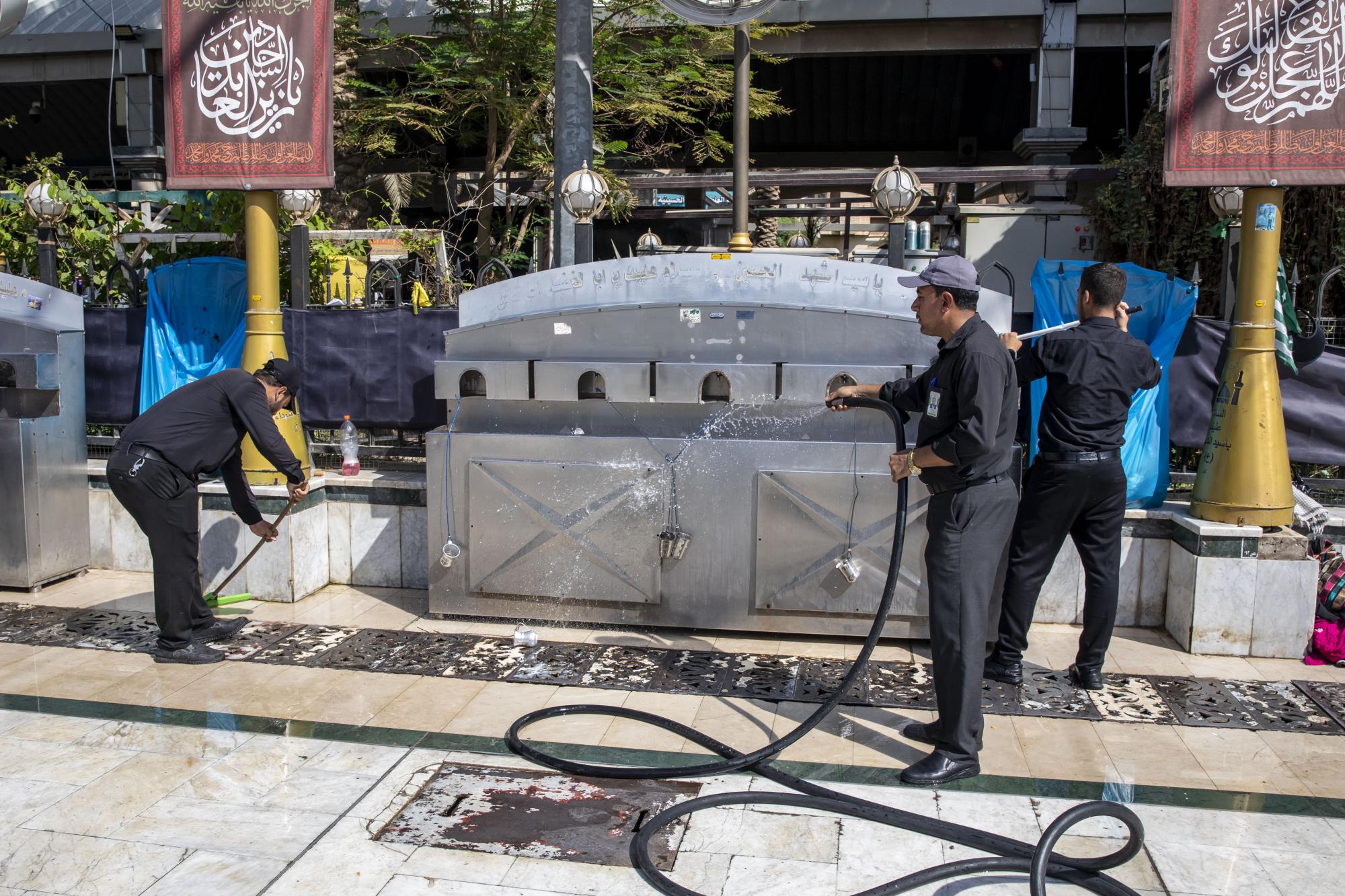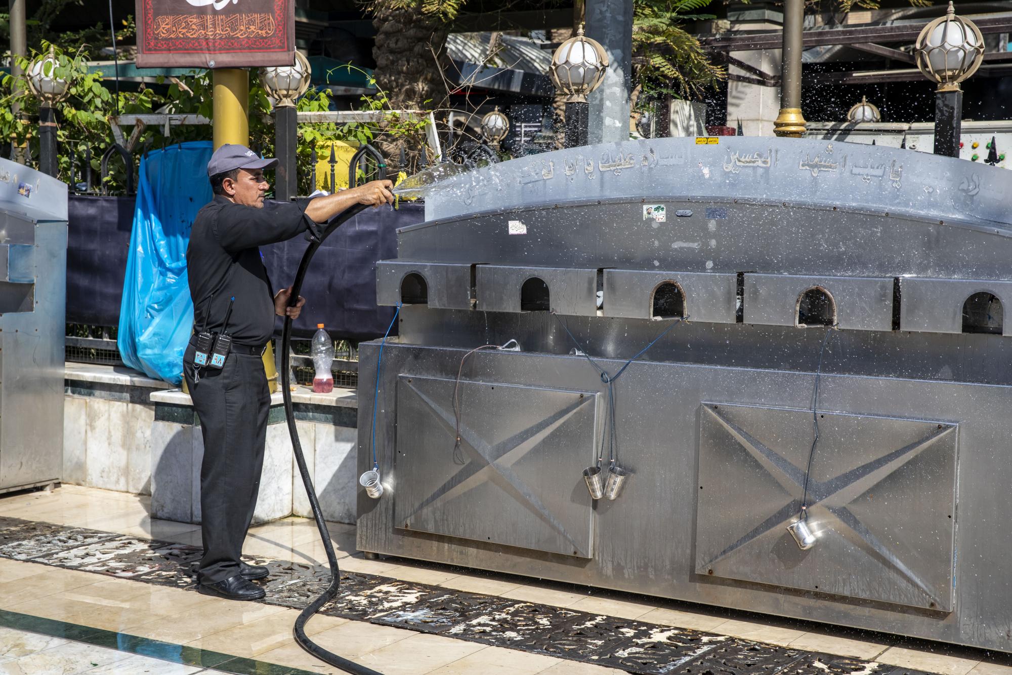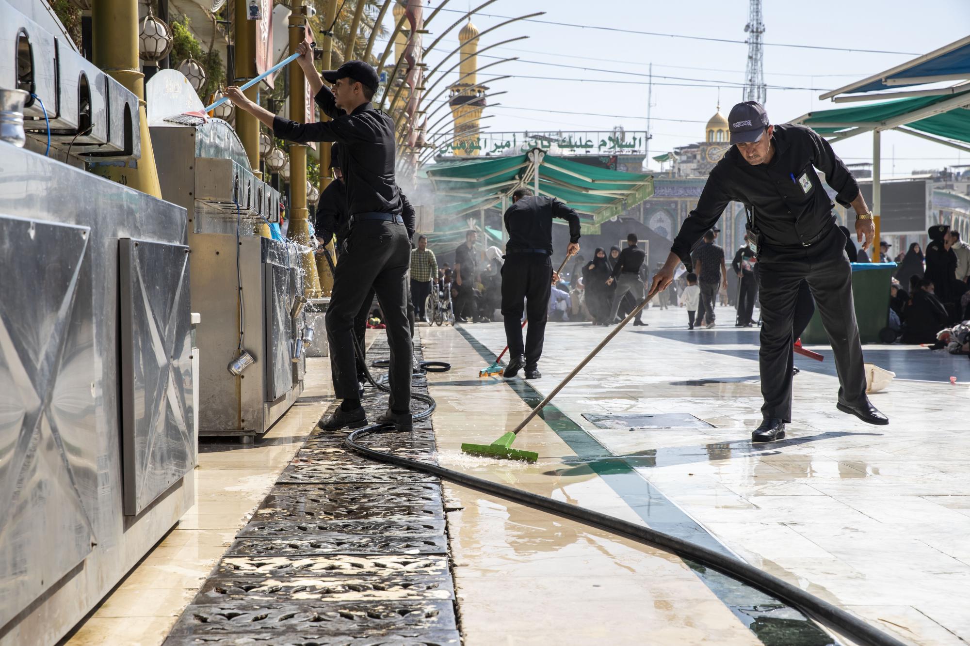 The supervisor of the campaign, Mr. Amir Musa, said:"after the end of the Ziyarat rituals and the reception of millions of visitors, our staff started on a wide campaign to clean and wash the Central Square area and its entrances, as well as removing waste and replacing carpets in the area.