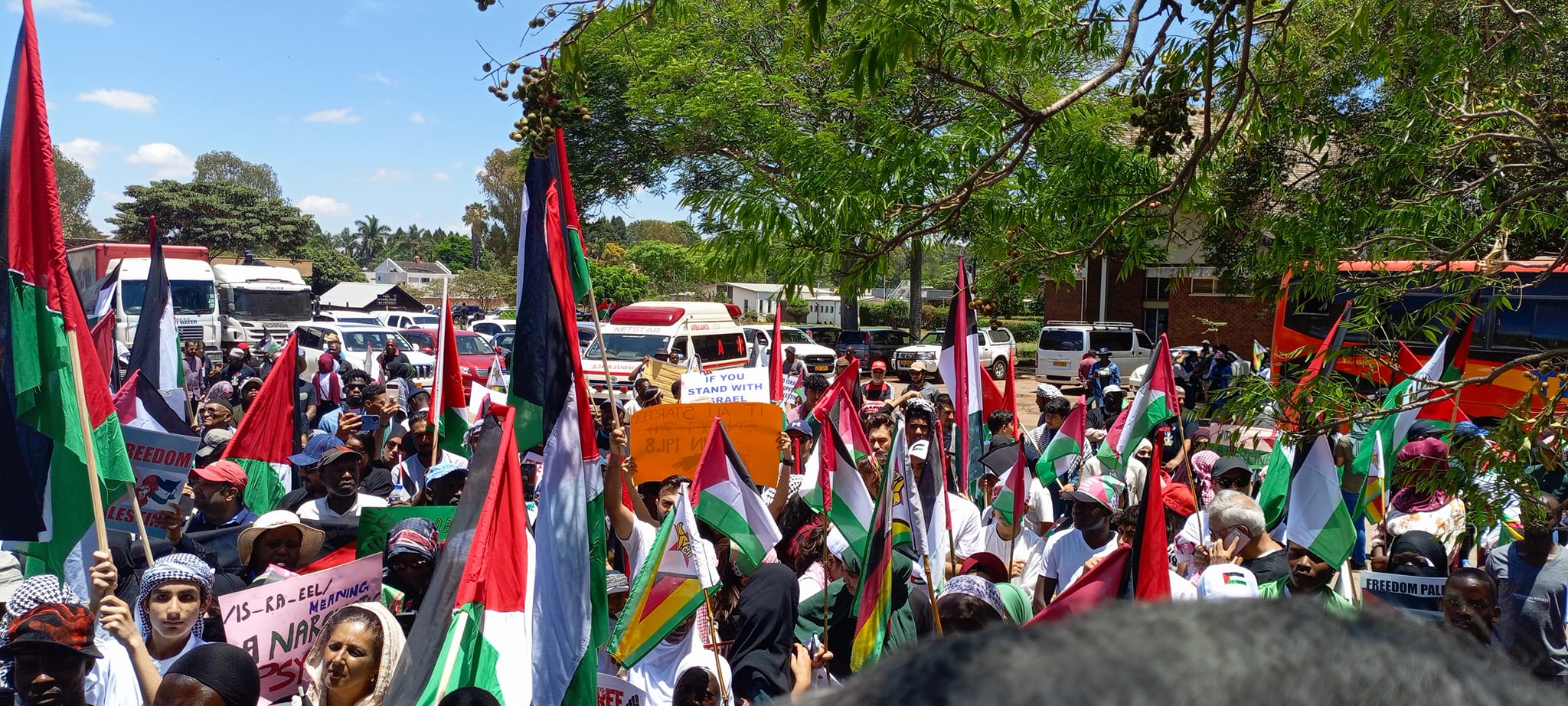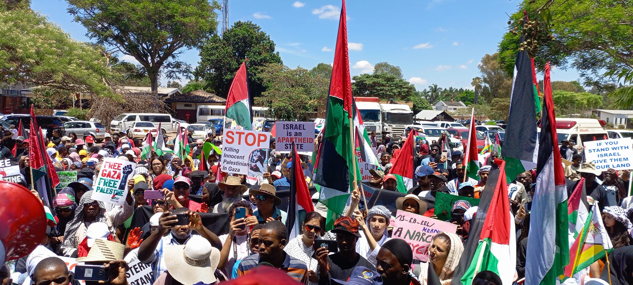 https://en.abna24.com/xfZCQ12 November 2023 - 09:52 News ID 1410848 English Home English Photos / Video: Massive rally in support of Palestine in Harare, Zimbabwe 12 November 2023 - 09:52 News ID: 1410848 related Photos: Muharram mourning ceremony held in Zimbabwe