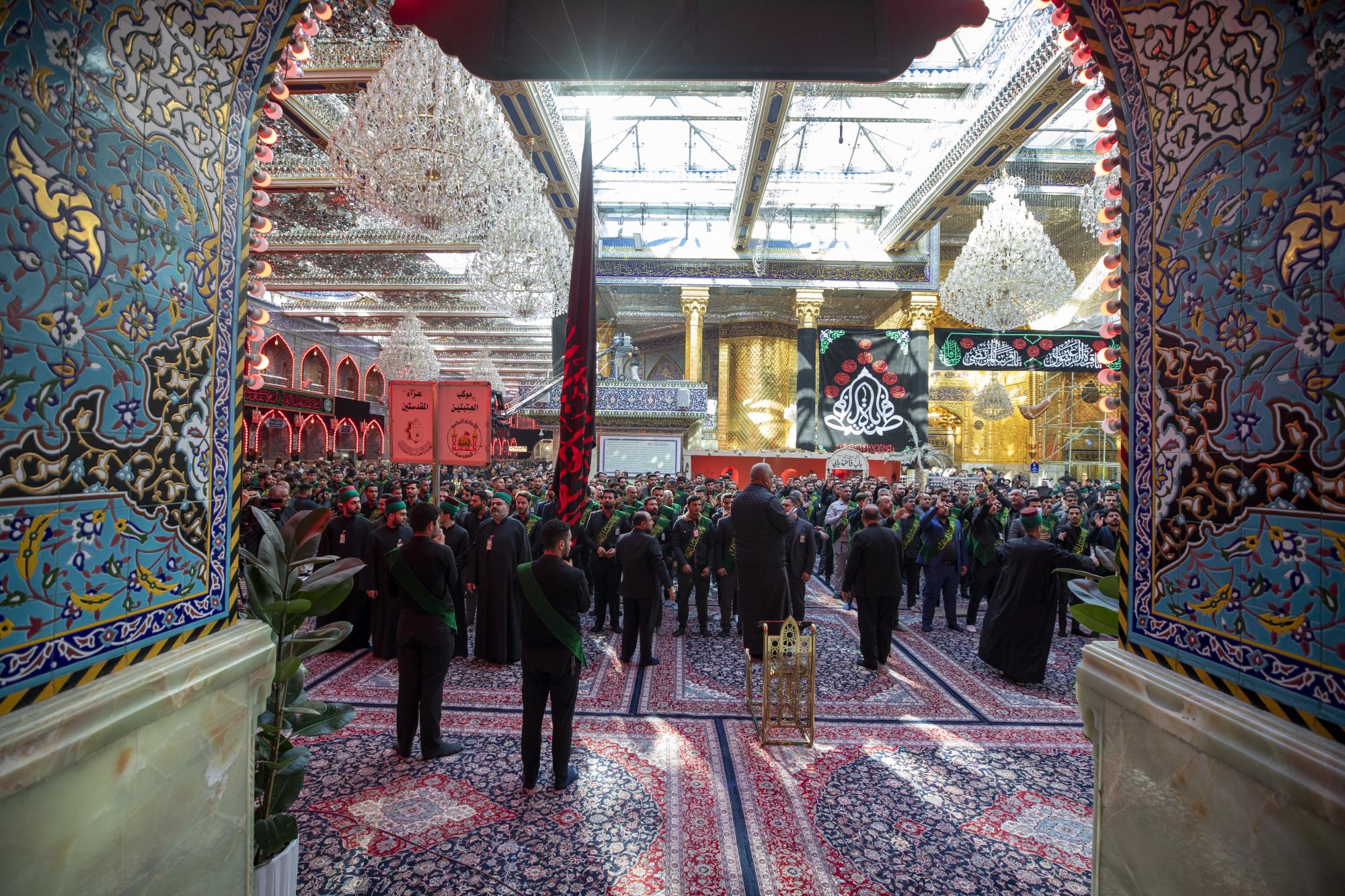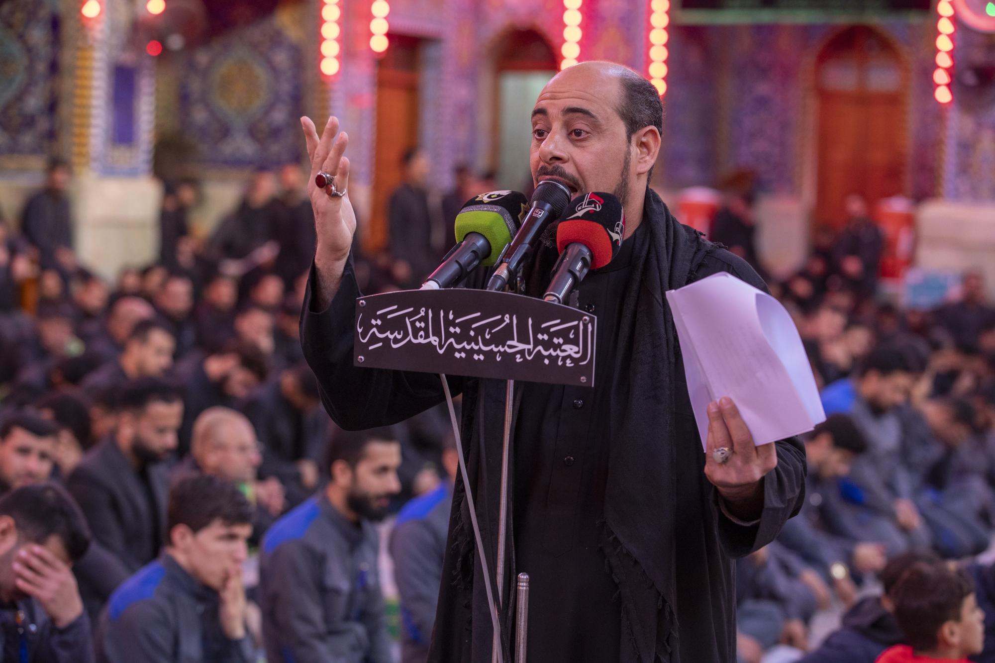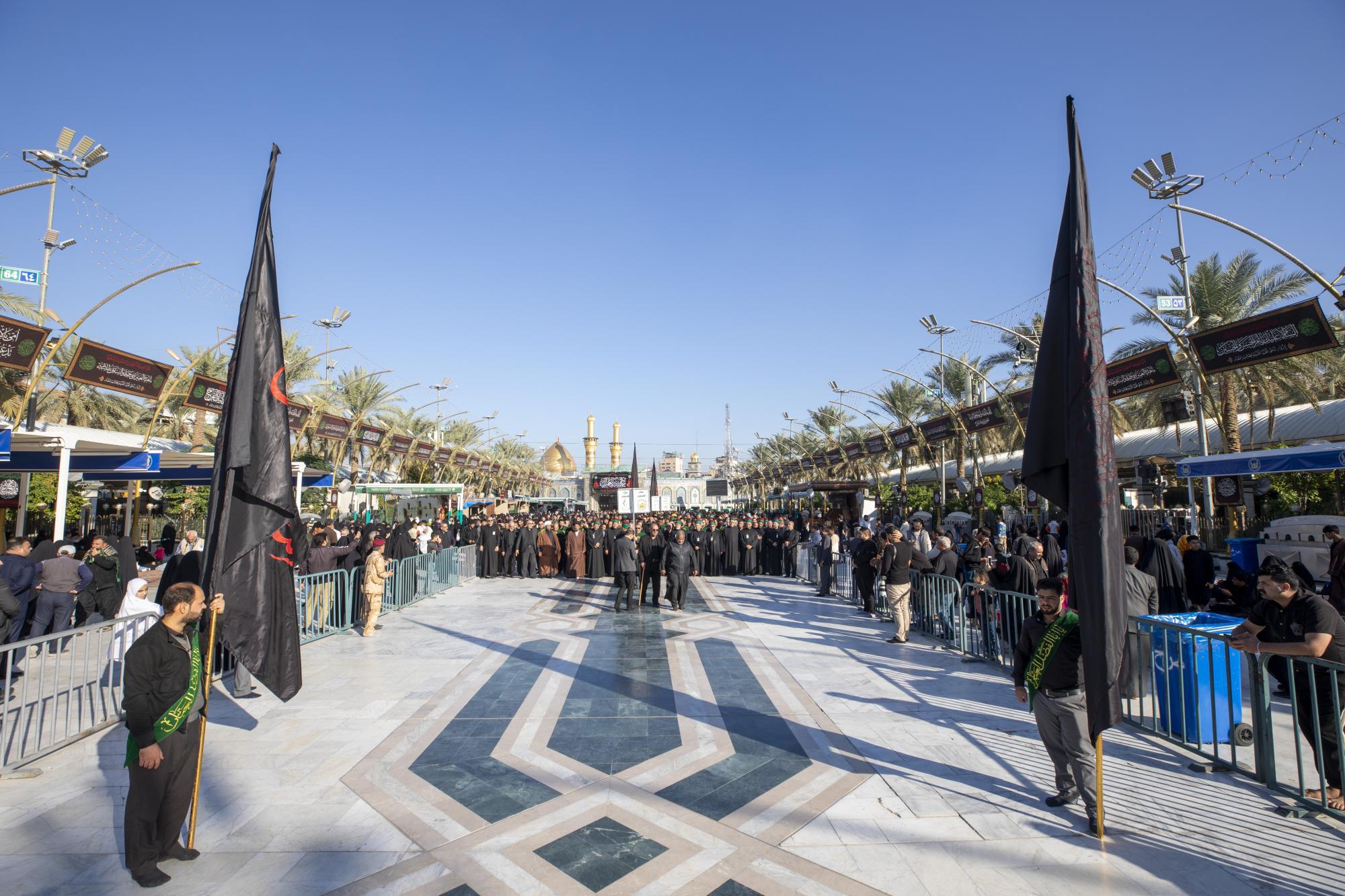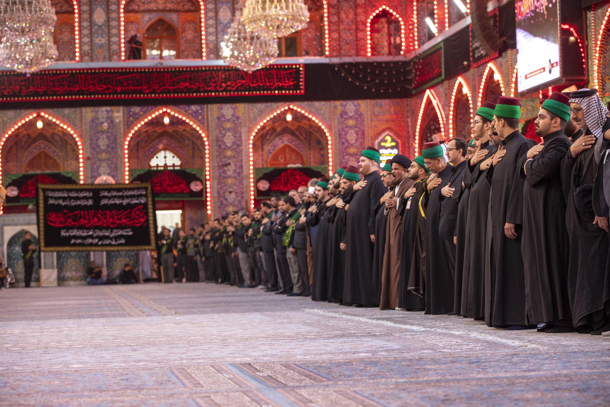 Sayed Badri Mamitha from the sayed servants ' division at the Al-Abbas's(p) holy shrine said that "the procession started from the Holy Courtyard of the Master Aba al-Fadl al-Abbas (peace be upon him), passing through a square between the Two Holy Shrines, and during the march the mourners chanted the words that embodied the feelings of sadness, and showed the extent of the impact of this great casualty on the souls of believers down to the shrine of Imam al-Hussayn (peace be upon him)".