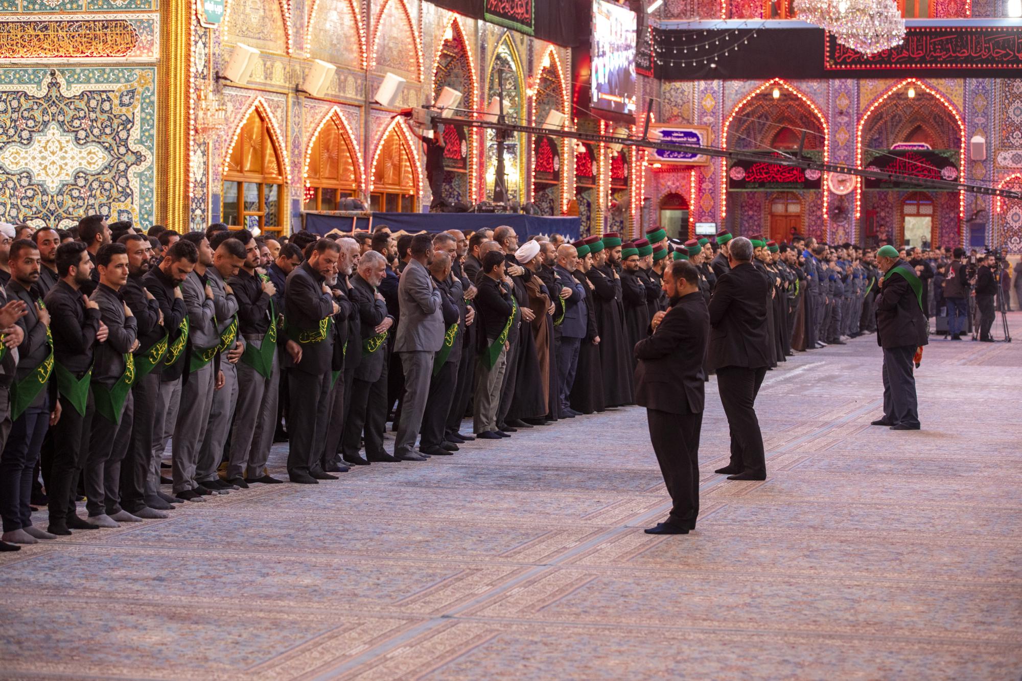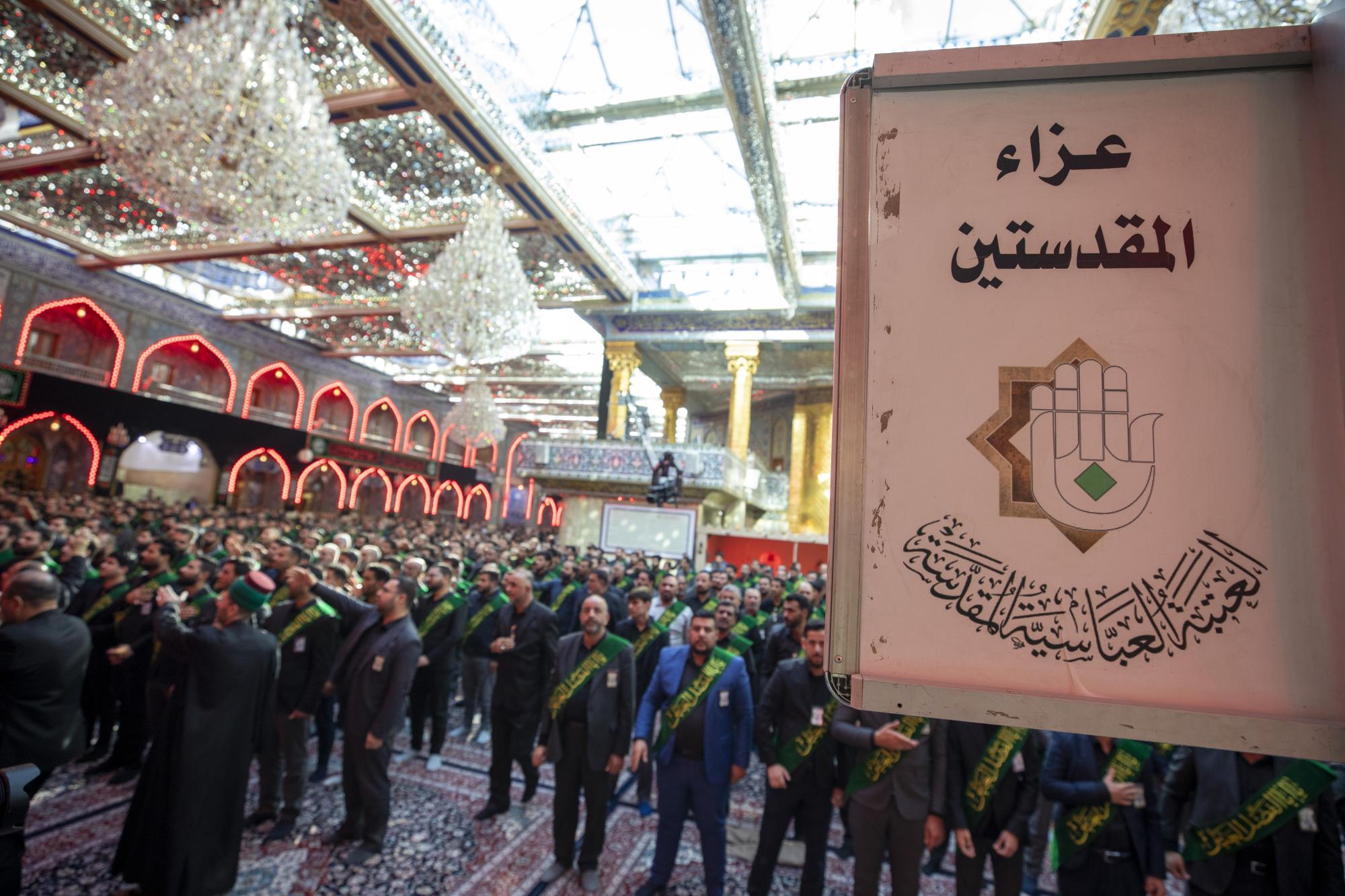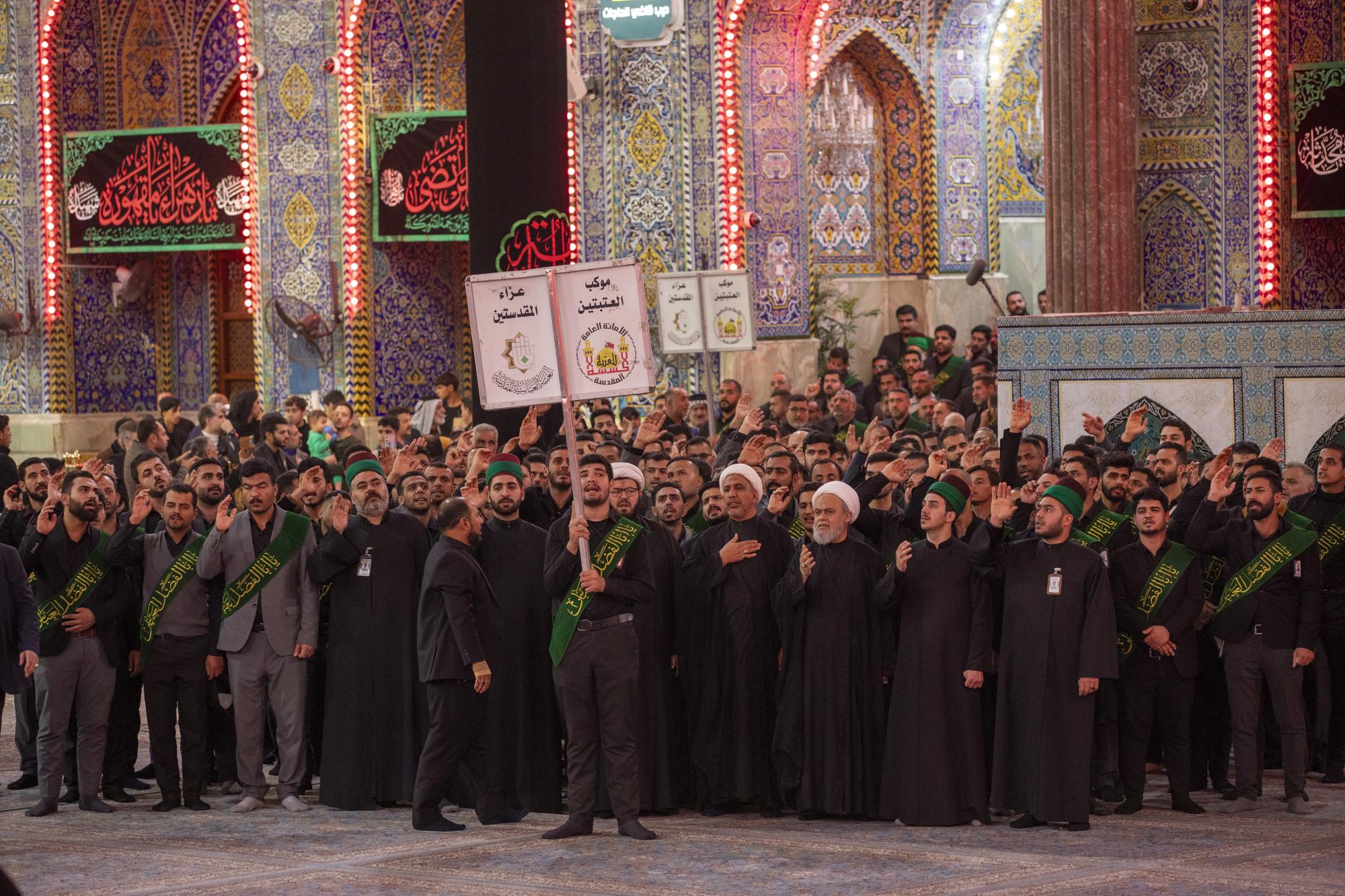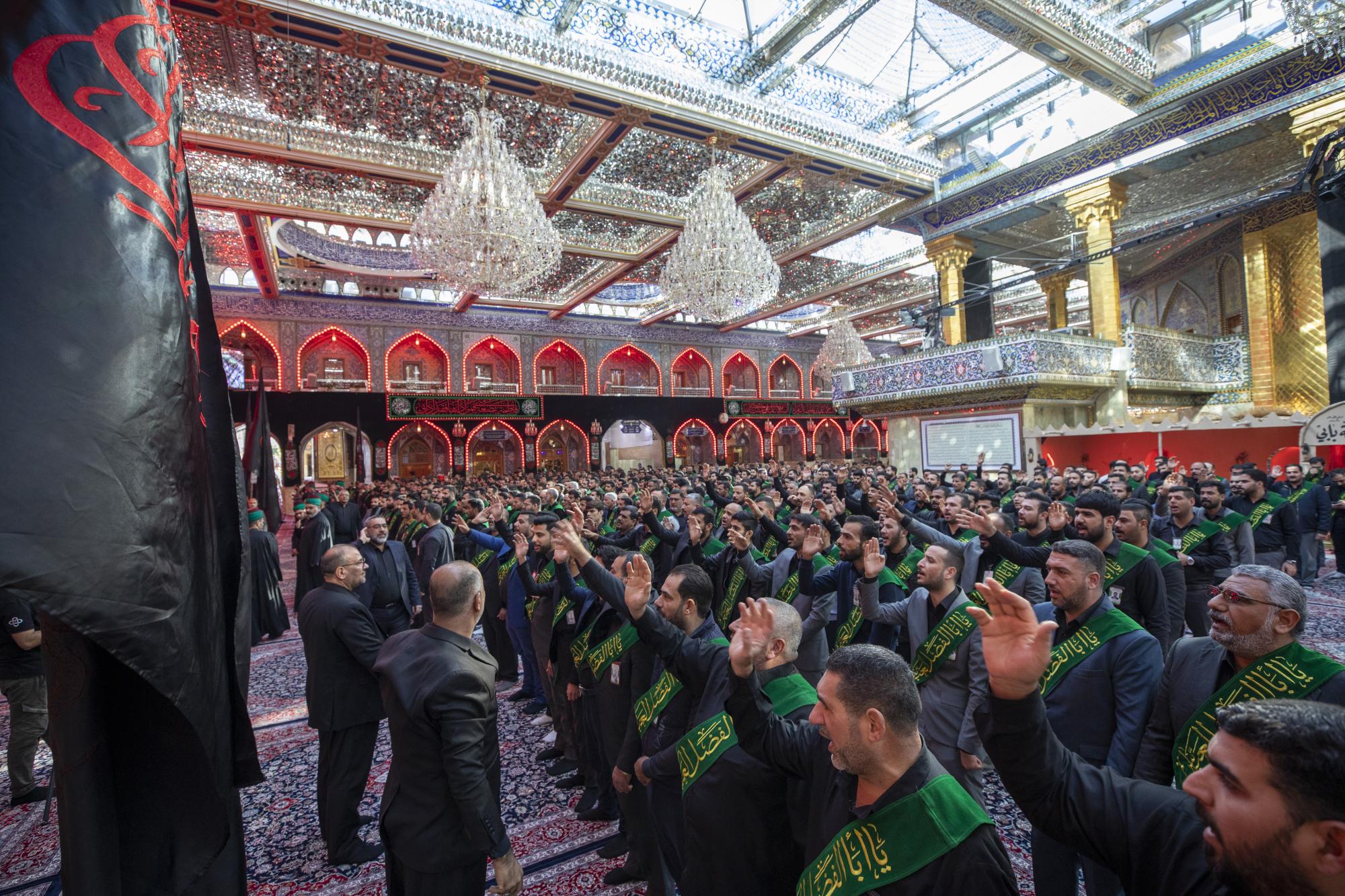 Sayed Badri Mamitha from the sayed servants ' division at the Al-Abbas's(p) holy shrine said that "the procession started from the Holy Courtyard of the Master Aba al-Fadl al-Abbas (peace be upon him), passing through a square between the Two Holy Shrines, and during the march the mourners chanted the words that embodied the feelings of sadness, and showed the extent of the impact of this great casualty on the souls of believers down to the shrine of Imam al-Hussayn (peace be upon him)".