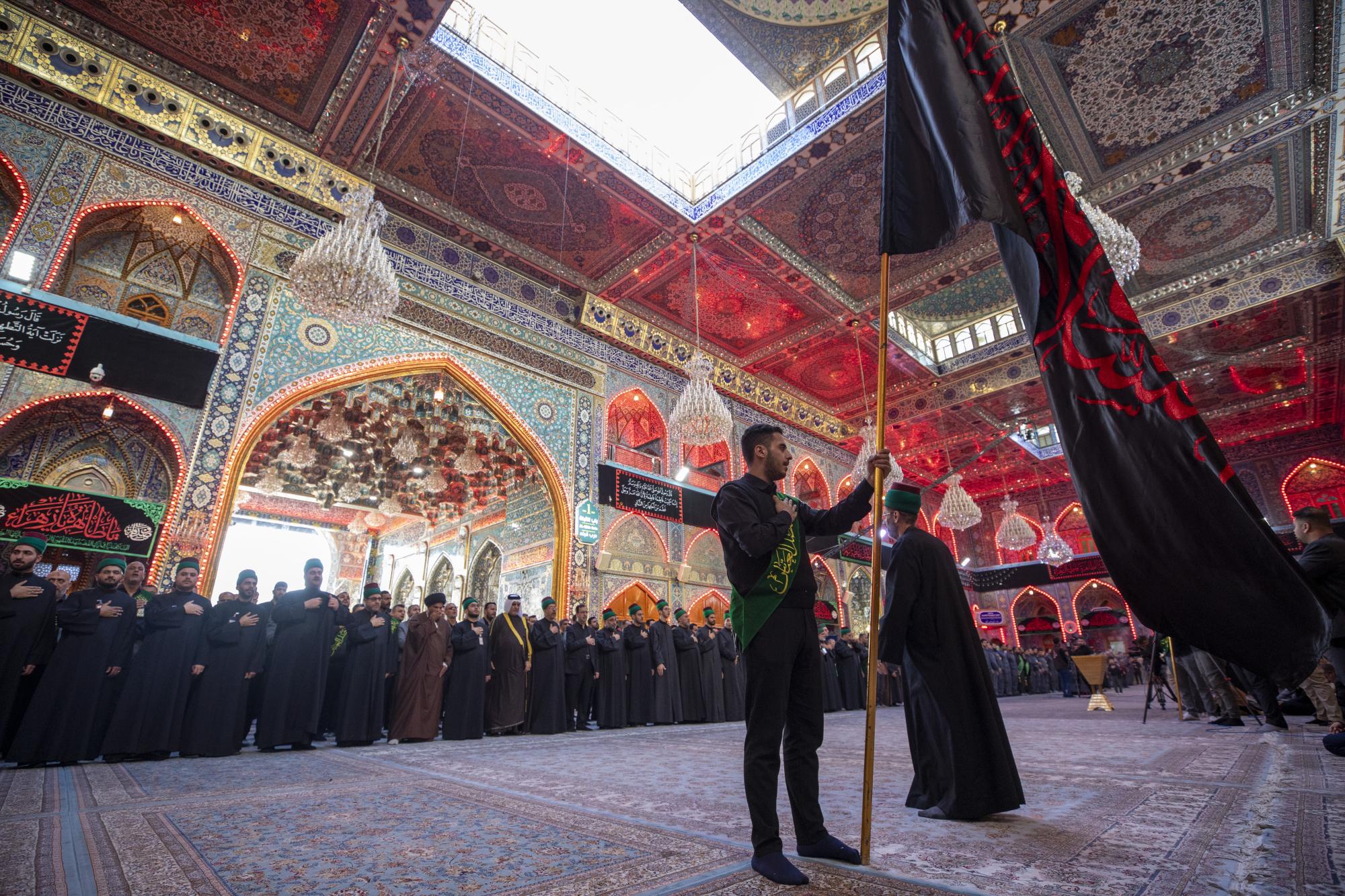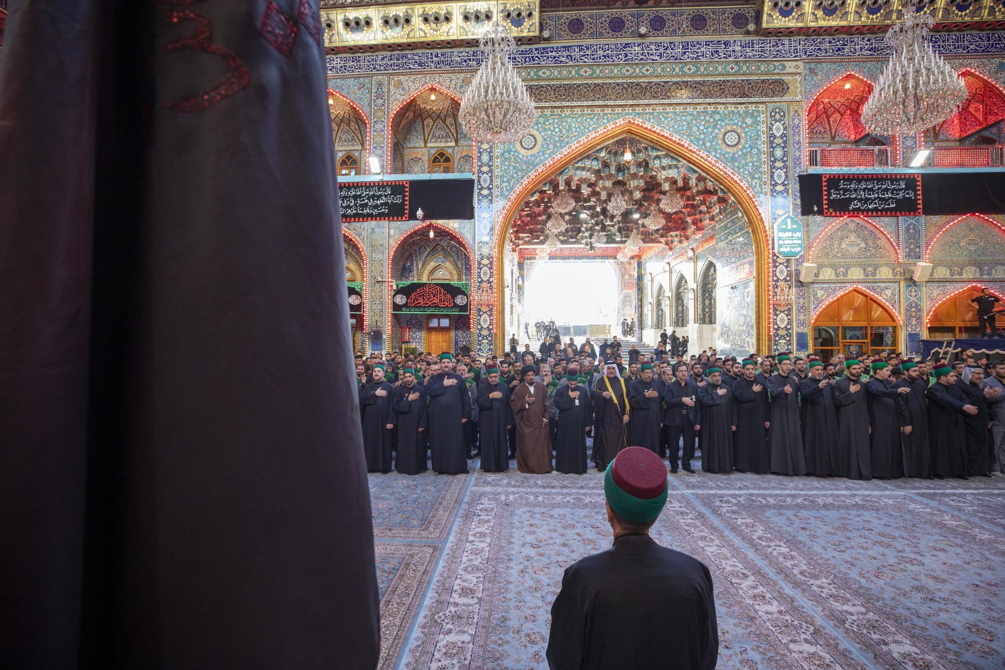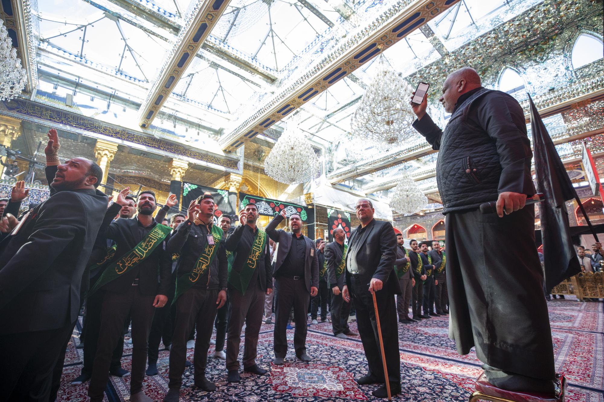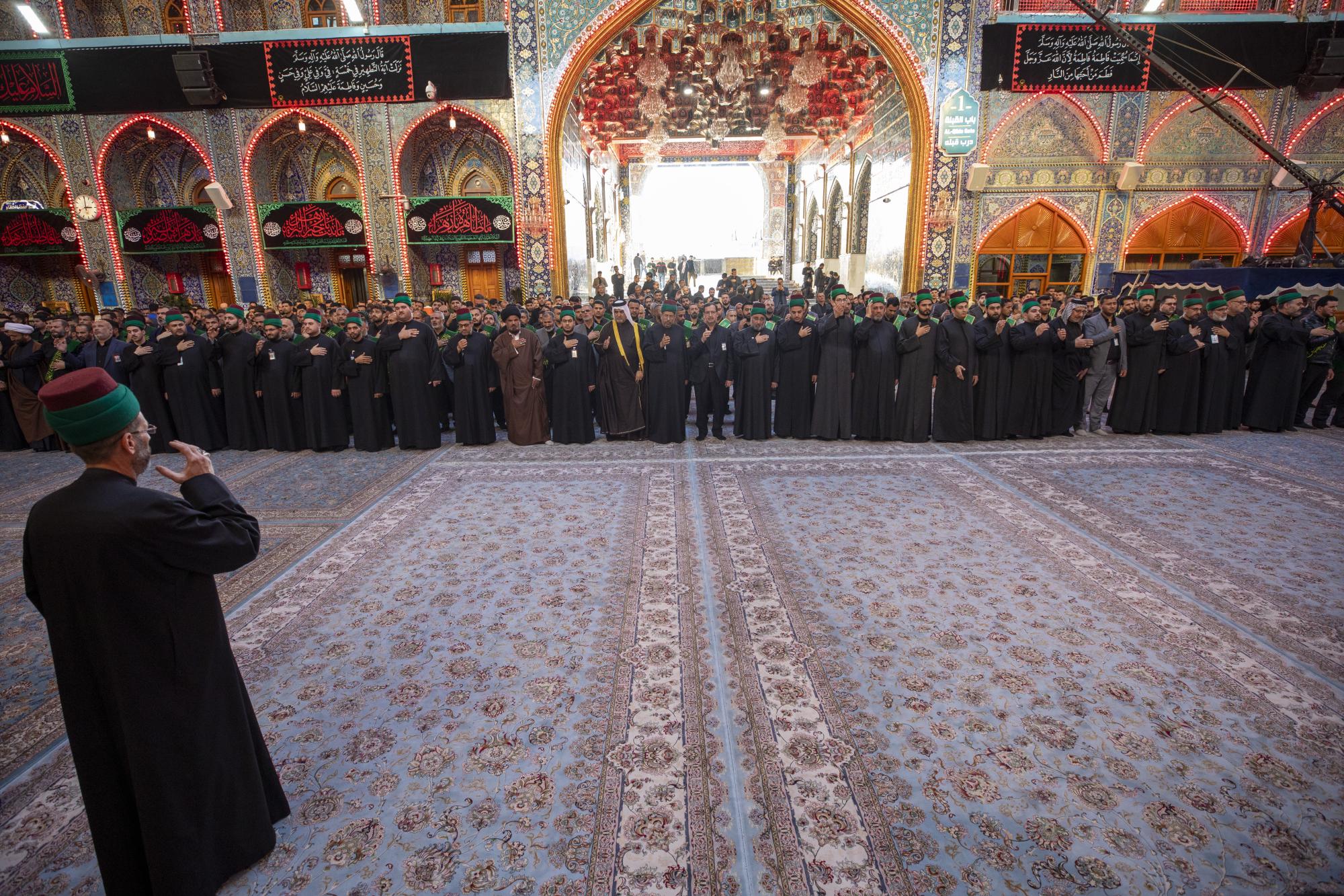 Sayed Badri Mamitha from the sayed servants ' division at the Al-Abbas's(p) holy shrine said that "the procession started from the Holy Courtyard of the Master Aba al-Fadl al-Abbas (peace be upon him), passing through a square between the Two Holy Shrines, and during the march the mourners chanted the words that embodied the feelings of sadness, and showed the extent of the impact of this great casualty on the souls of believers down to the shrine of Imam al-Hussayn (peace be upon him)".
