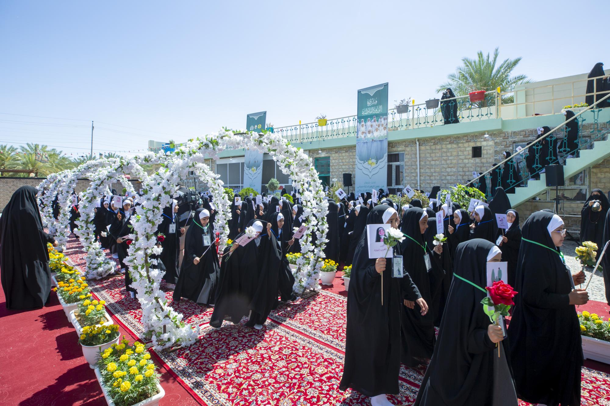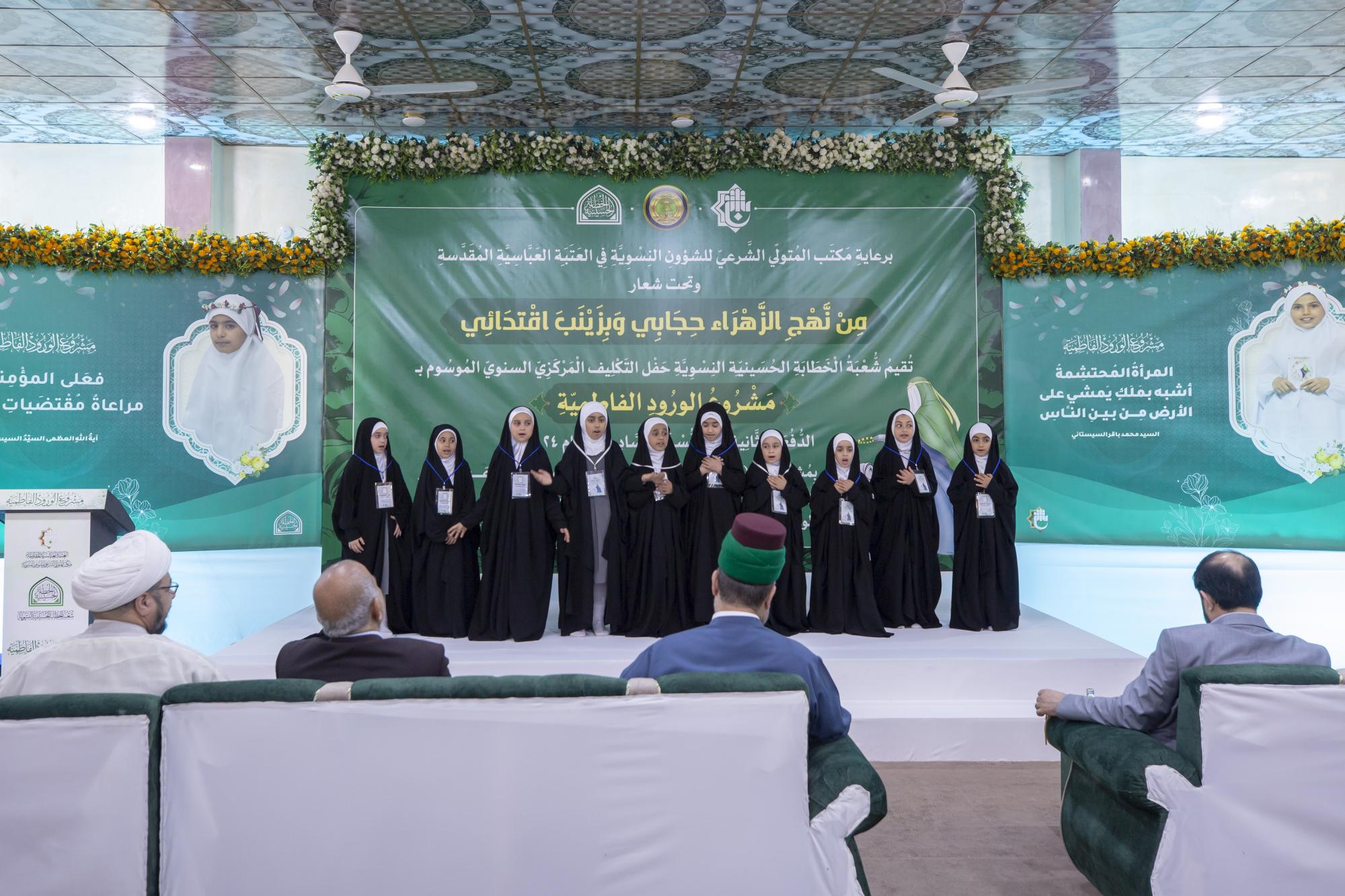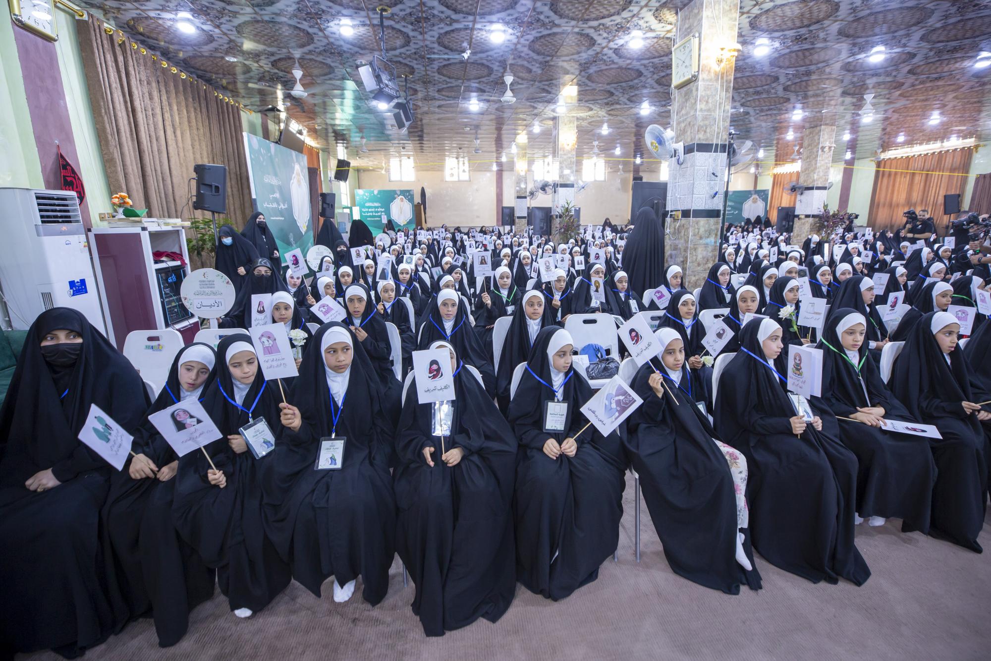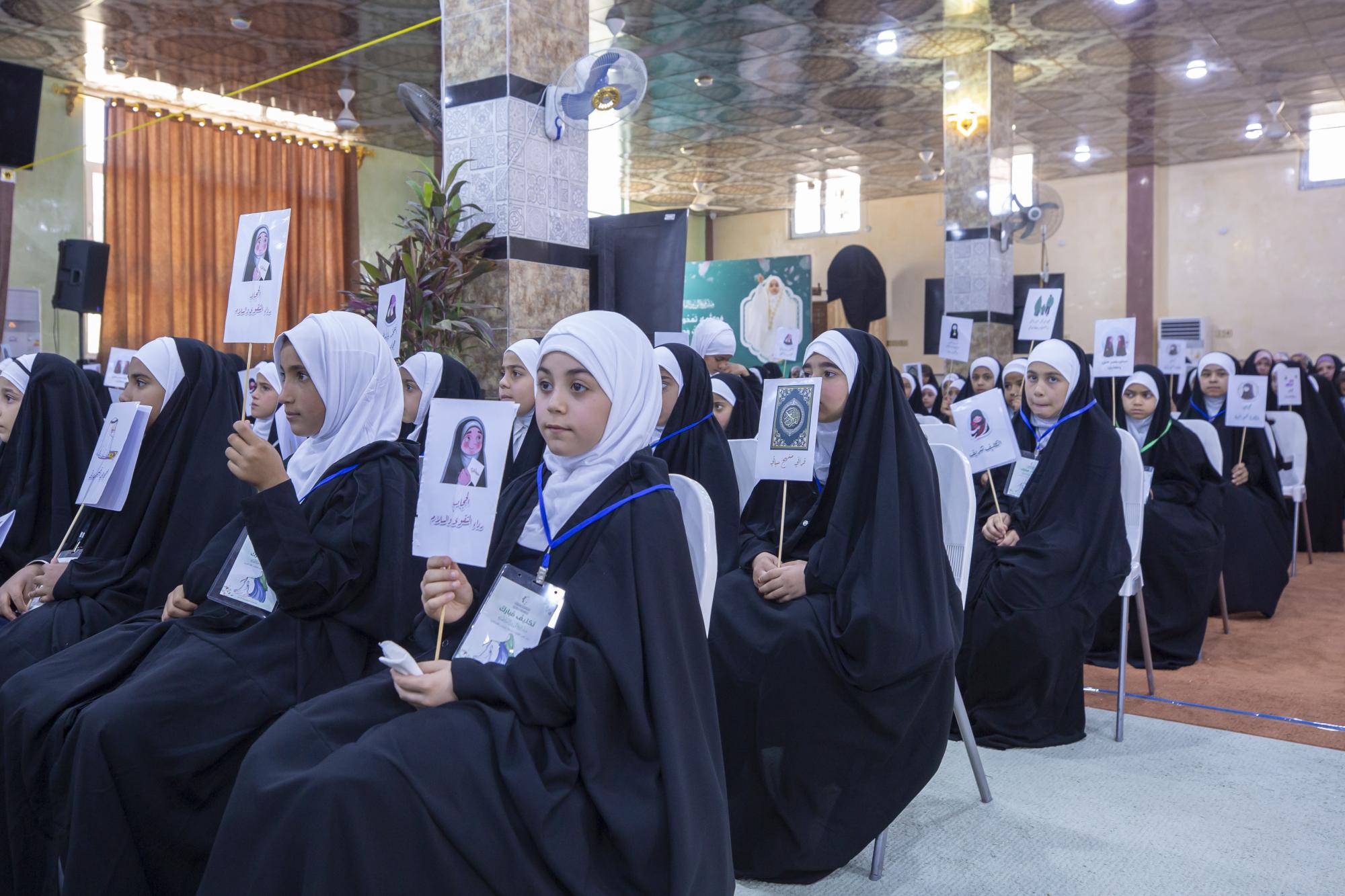 The events of the ceremony were supervised by the Husseini Women Public Speaking Division of the Office of the Senior Official of the Women Affairs at the Al-Abbas's (p) holy shrine, in cooperation with the Holy Karbala education directorate, on the Hall of the Great Mosque of az-Zahra in the District, with the participation of more than (300) students from the schools of Ain al-Tamr district in the province of Karbala.
