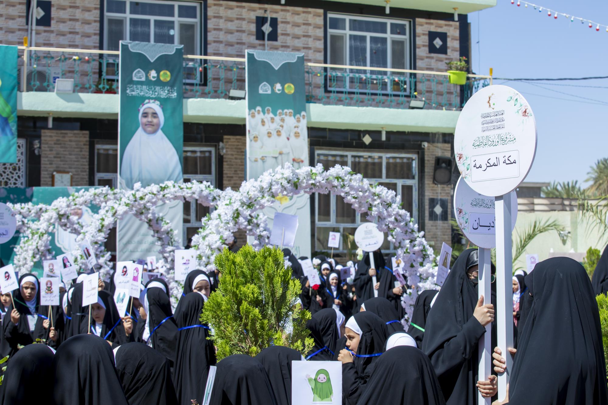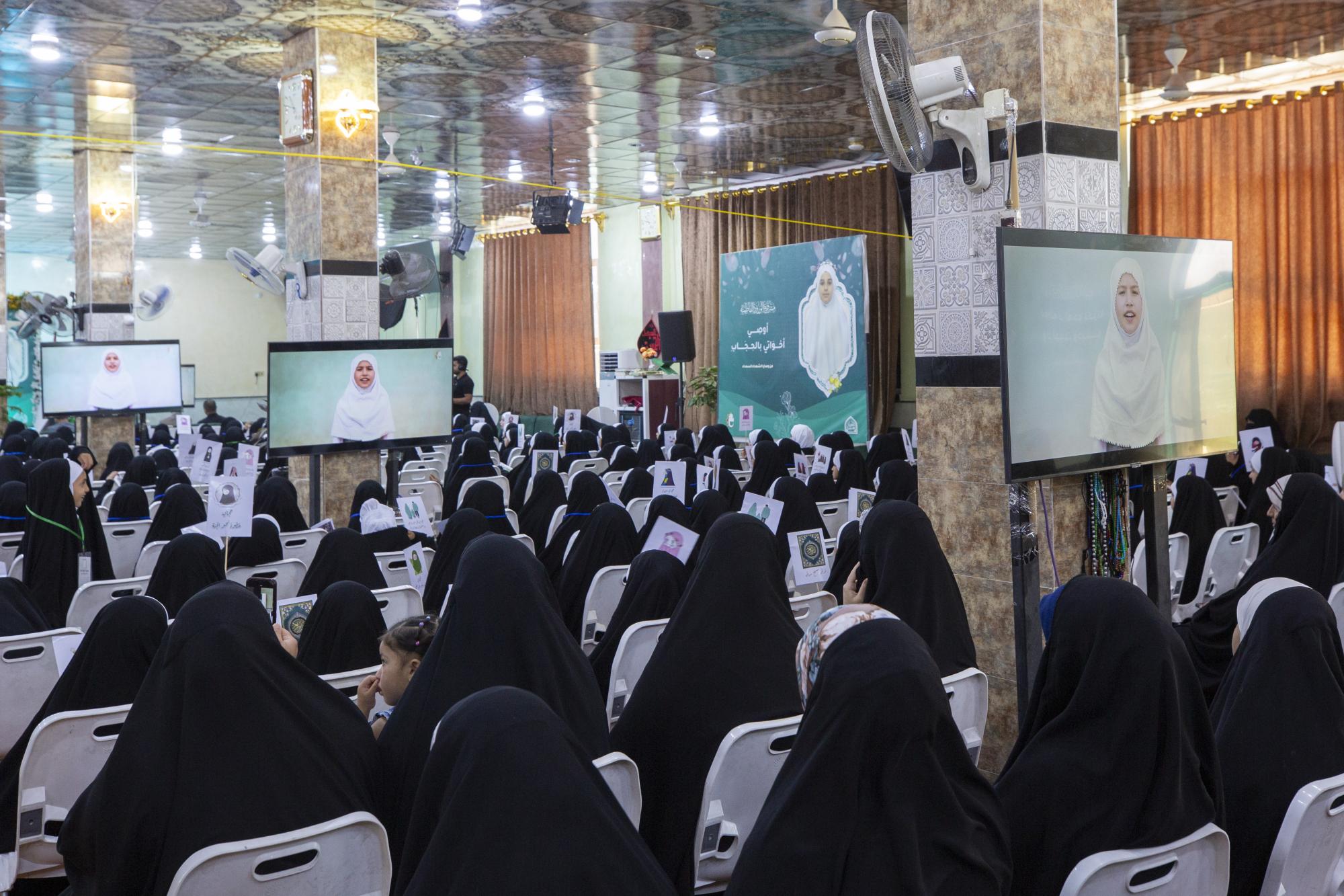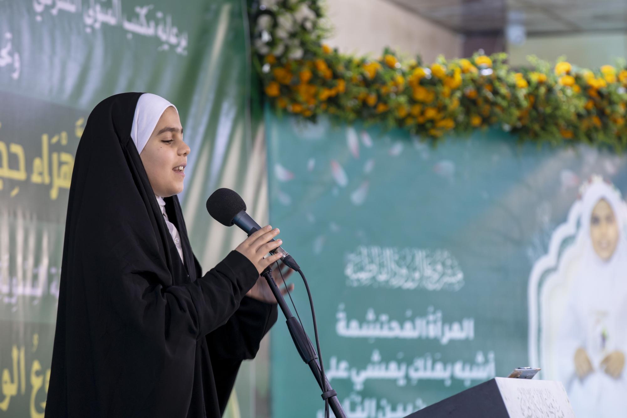The events of the ceremony were supervised by the Husseini Women Public Speaking Division of the Office of the Senior Official of the Women Affairs at the Al-Abbas's (p) holy shrine, in cooperation with the Holy Karbala education directorate, on the Hall of the Great Mosque of az-Zahra in the District, with the participation of more than (300) students from the schools of Ain al-Tamr district in the province of Karbala.