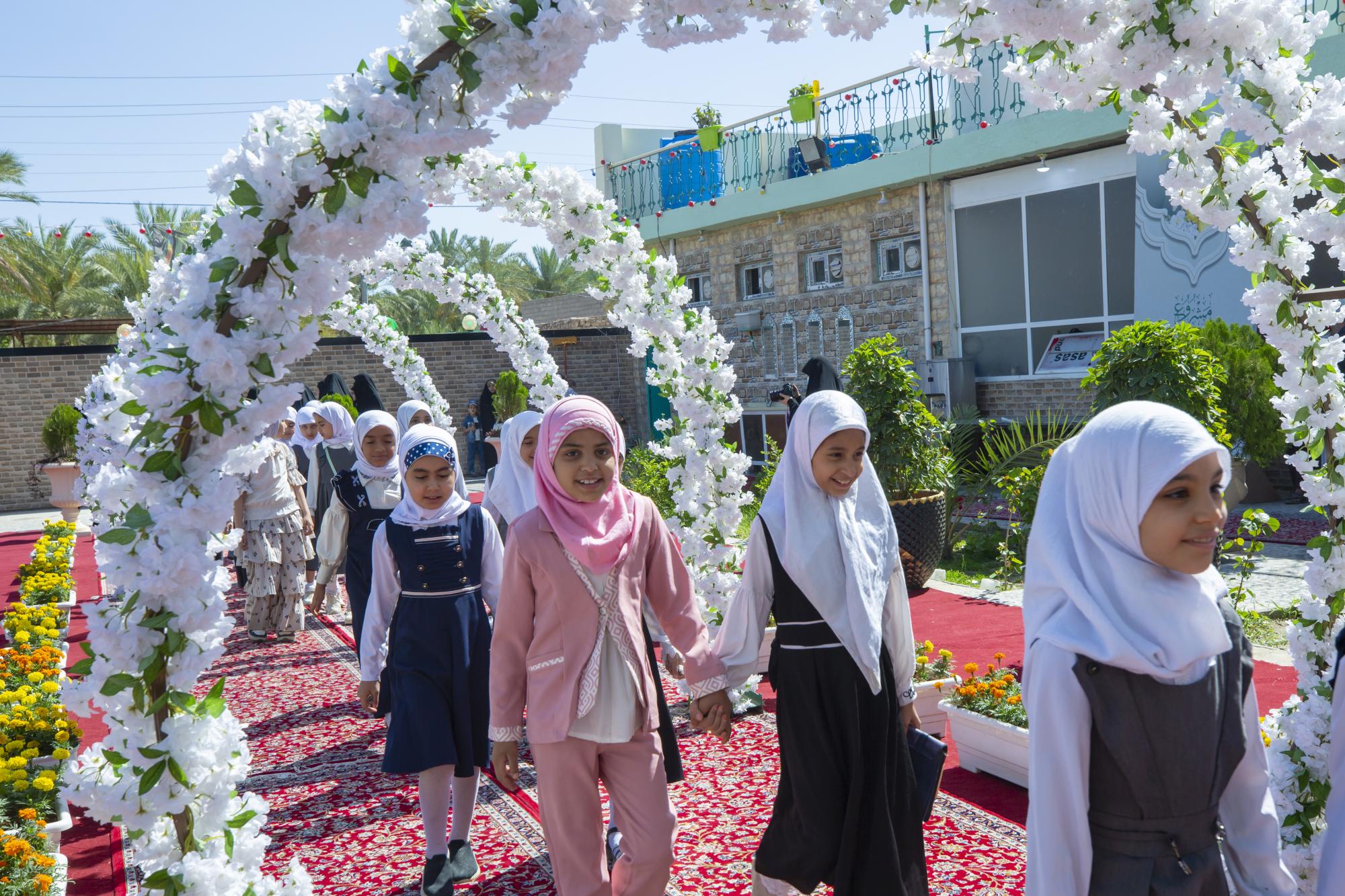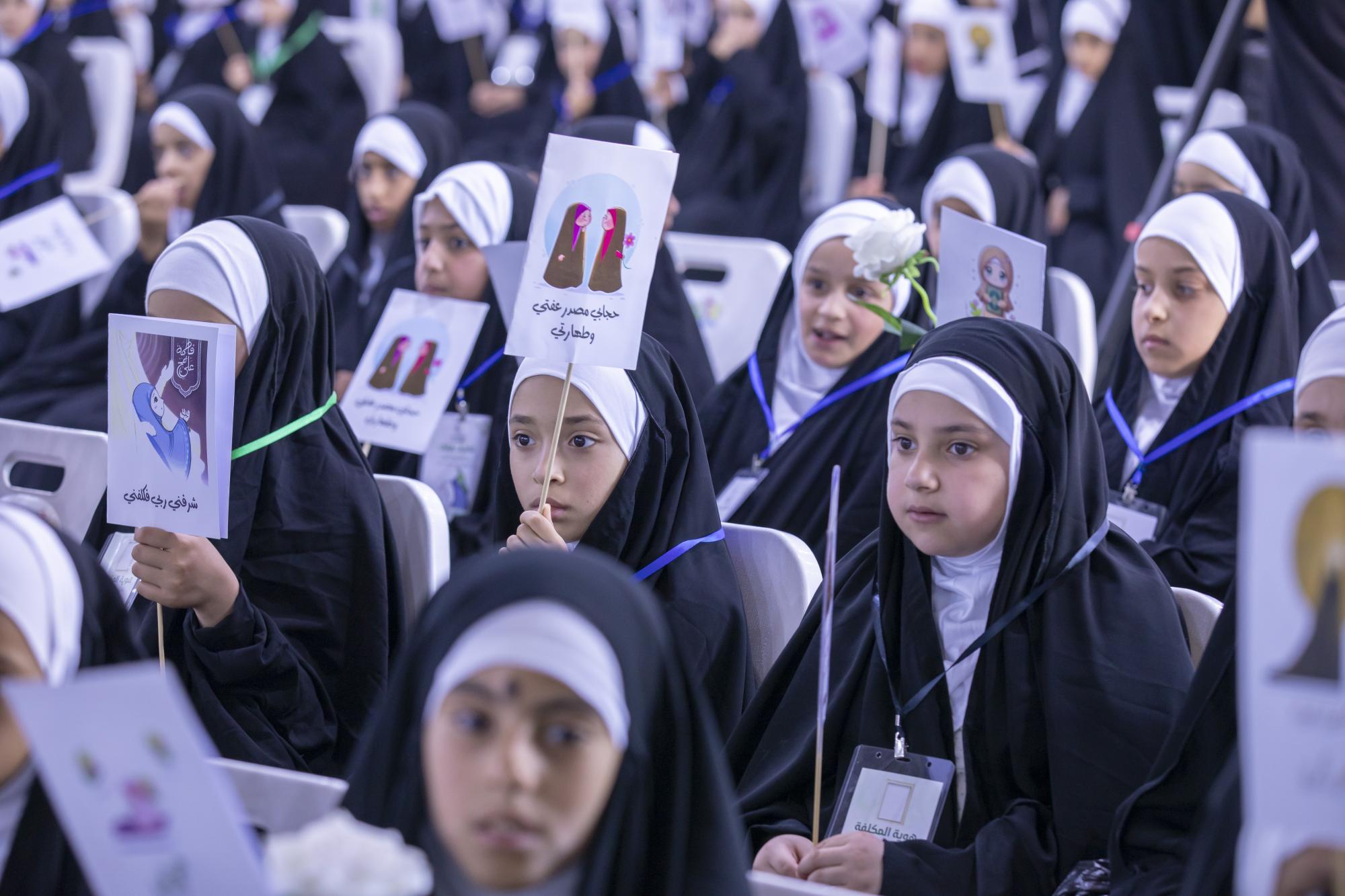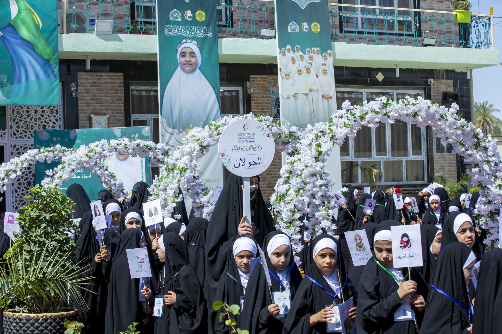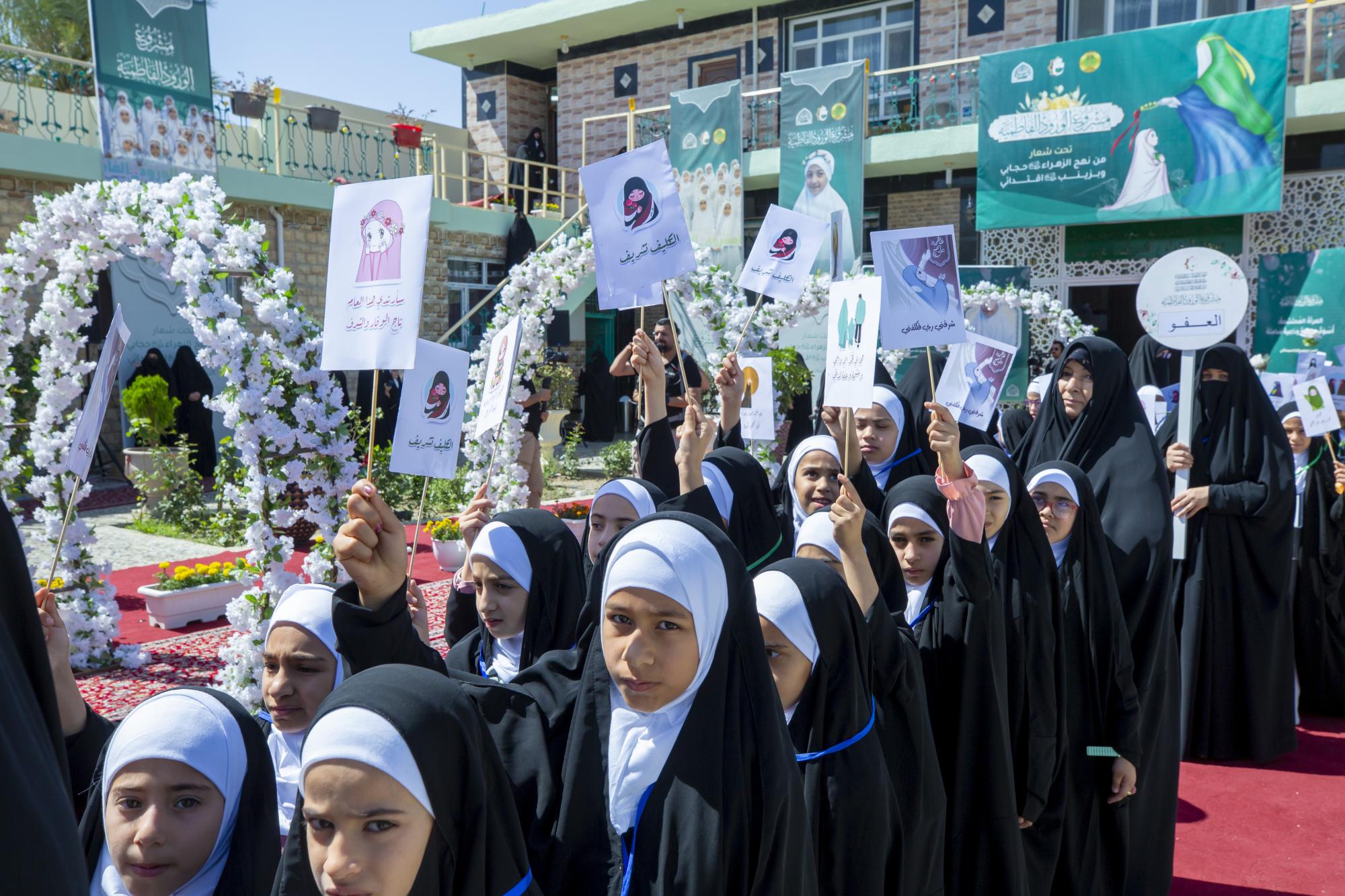 The events of the ceremony were supervised by the Husseini Women Public Speaking Division of the Office of the Senior Official of the Women Affairs at the Al-Abbas's (p) holy shrine, in cooperation with the Holy Karbala education directorate, on the Hall of the Great Mosque of az-Zahra in the District, with the participation of more than (300) students from the schools of Ain al-Tamr district in the province of Karbala.
