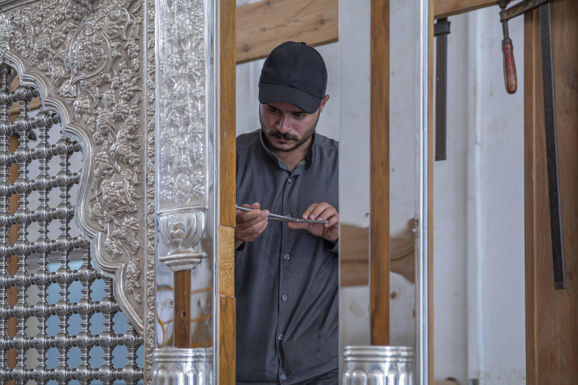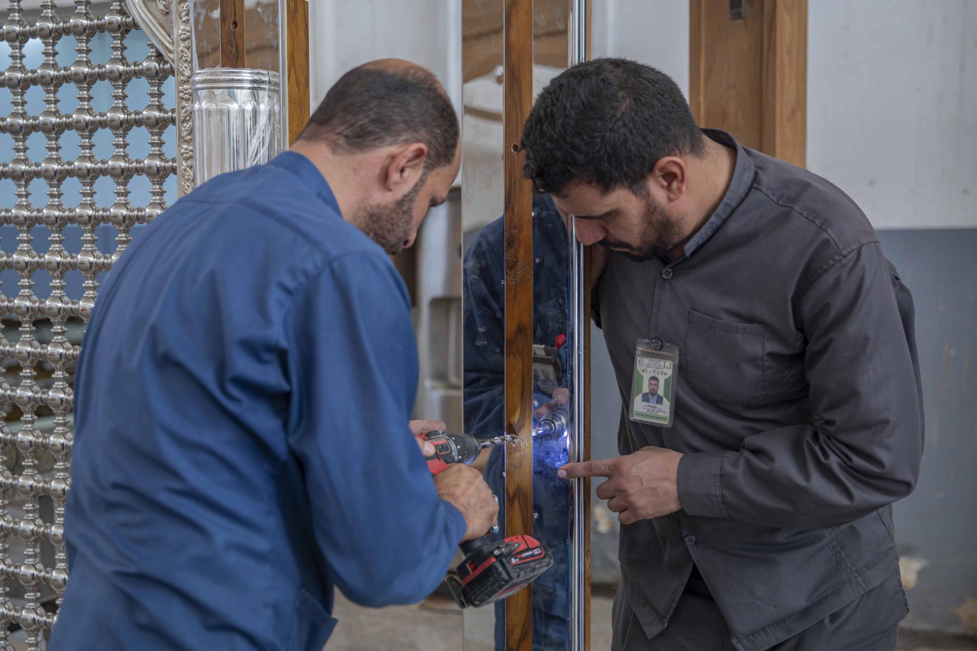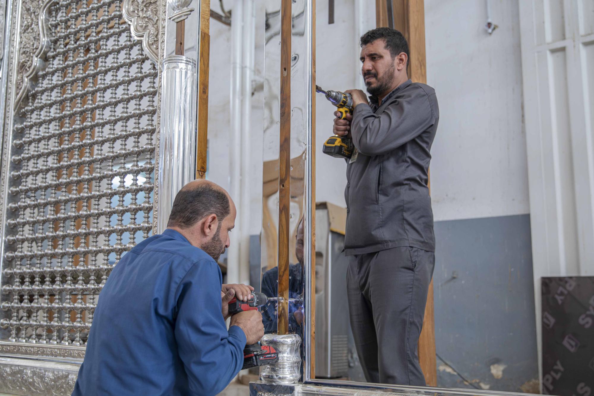 "The facade work was completed within the specified time period and according to the designs prepared for it, and the work came as a result of the experience of the staff of the shrines' grids and doors manufacturing department in this field, along with joint cooperation with the holy shrines," Al-Gharabi said, pointing out that "the department has many achievements in the grids' industry inside and outside Iraq."