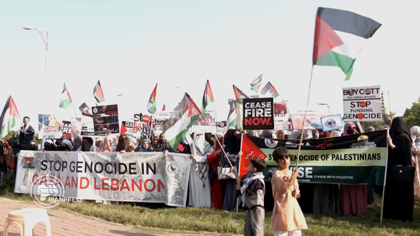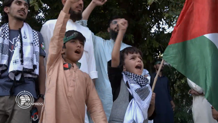 Holding the Palestinian flag, the Pakistani youth shouted slogans against the Israeli regime and the US and called both the root of corruption and atrocities in the world. Humira Tayyaba, the team leader of the Save Gaza Campaign that is the body that organized the demonstration, told Iran Press: " The Palestinians have paid a huge price, but they have told the world that they are victorious, they have succeeded in their narrative and told that no one can defeat Palestine and no one can push out the Palestinians from their land."