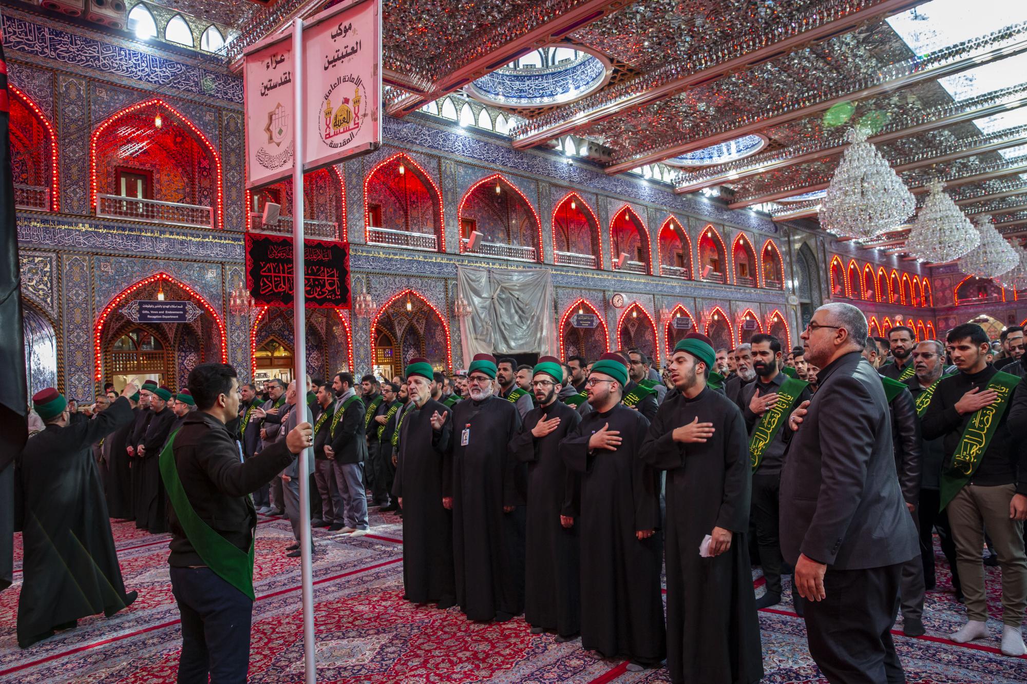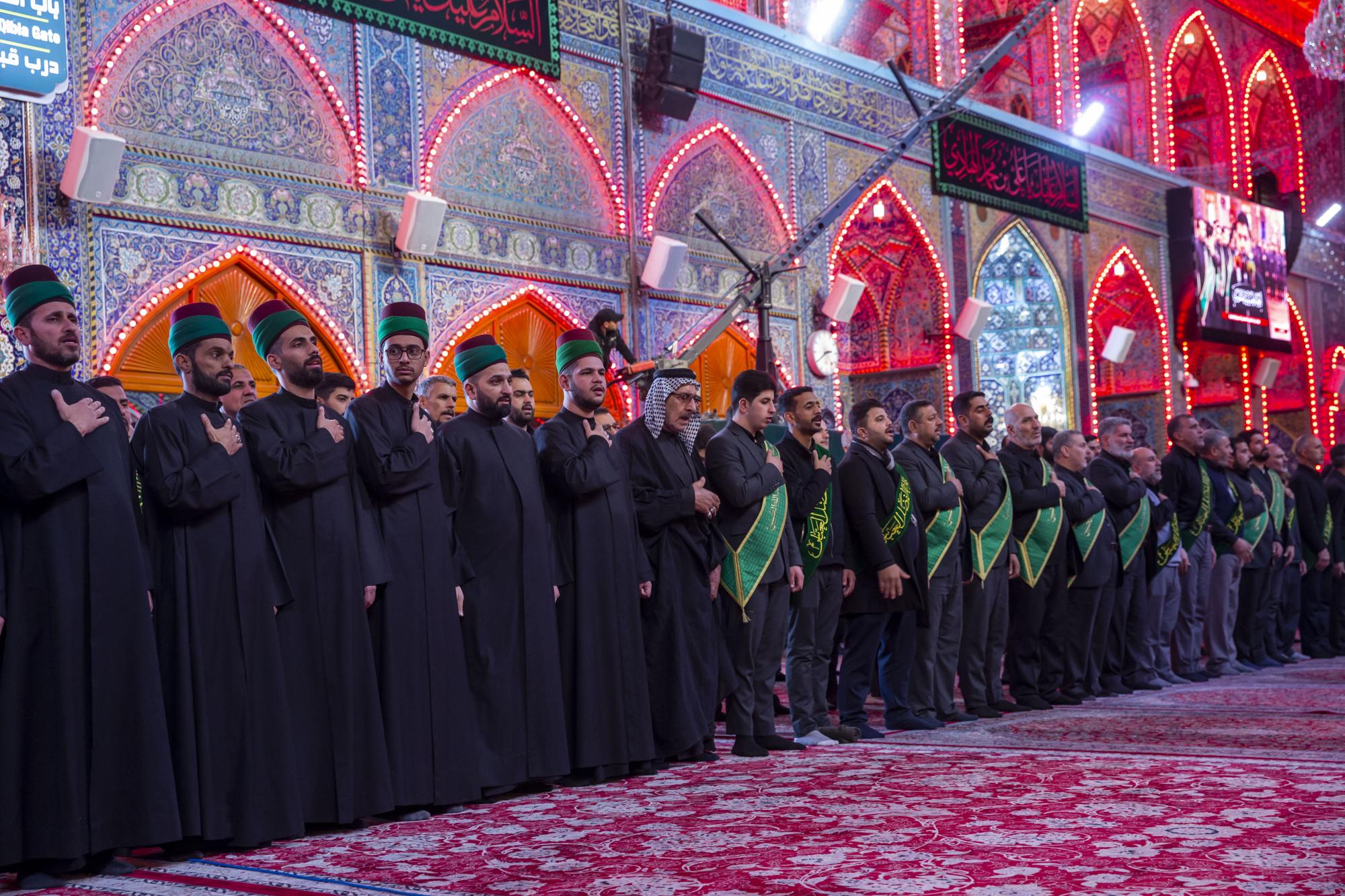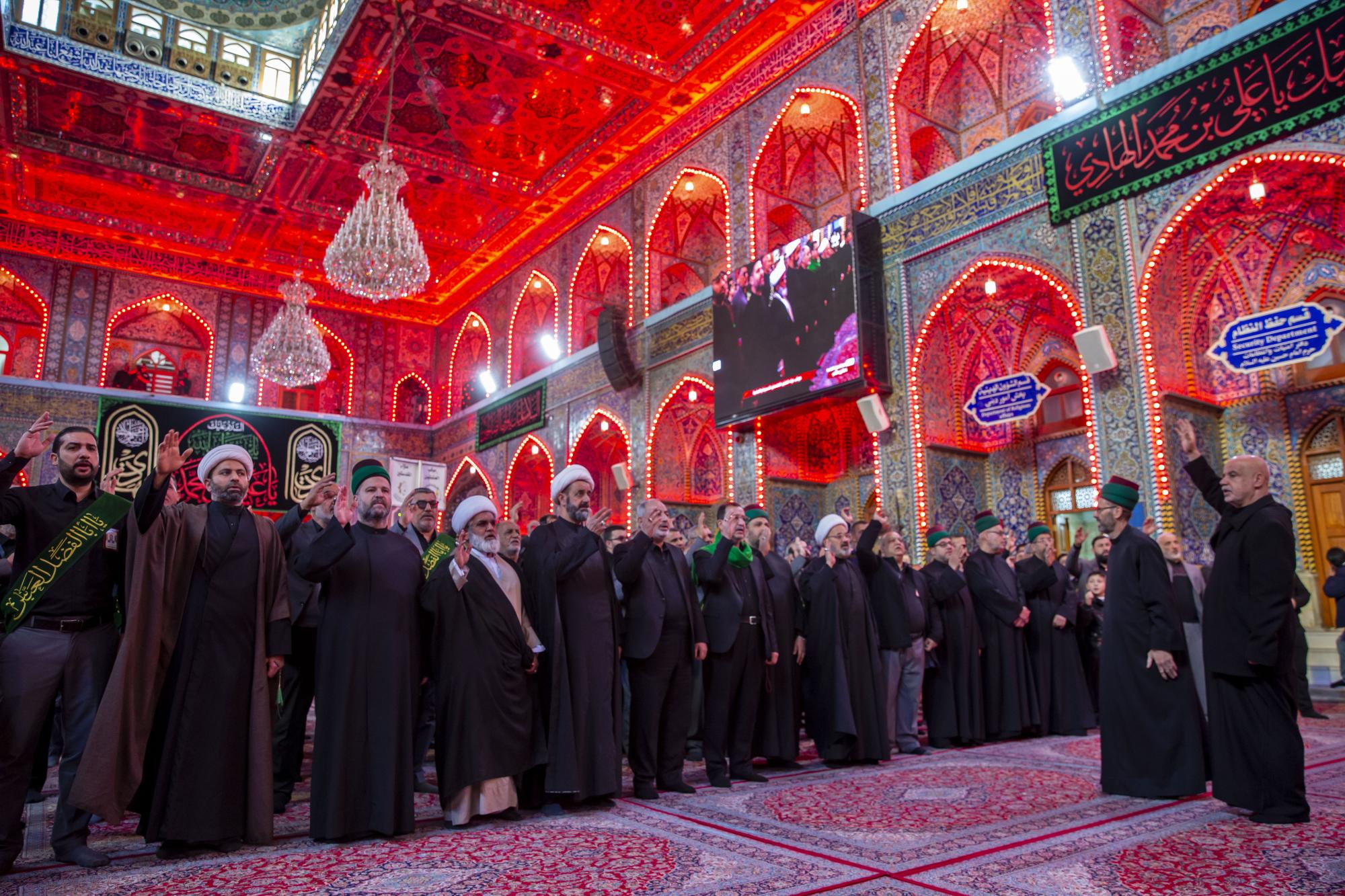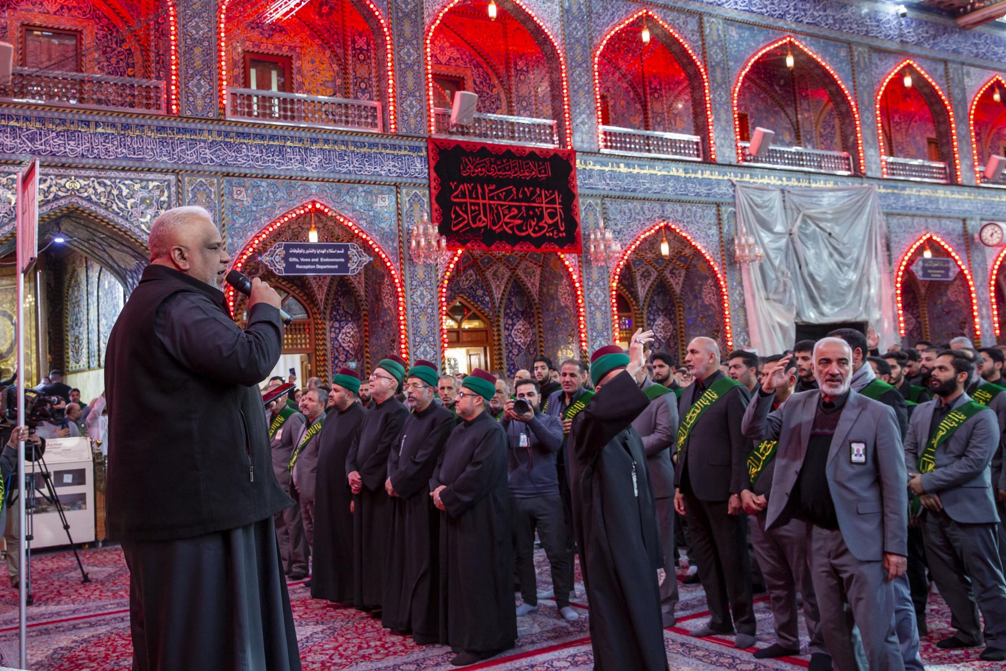 One of the staff of the Sayed servants ' division at the Al-Abbas's (p) shrine: Sayed Badri Mamitha, said:"the servants of the holy shrines of Imam al-Hussayn and al-Abbas (peace be upon them), they set off through a unified funeral procession on the occasion of the sad anniversary of the martyrdom anniversary of Imam Ali al-Hadi (peace be upon him), echoing the words that embodied the feelings of sadness and sorrow, and showed the extent of this casualty in the hearts of the lovers of Ahl Al-Bayt (peace be upon them)".