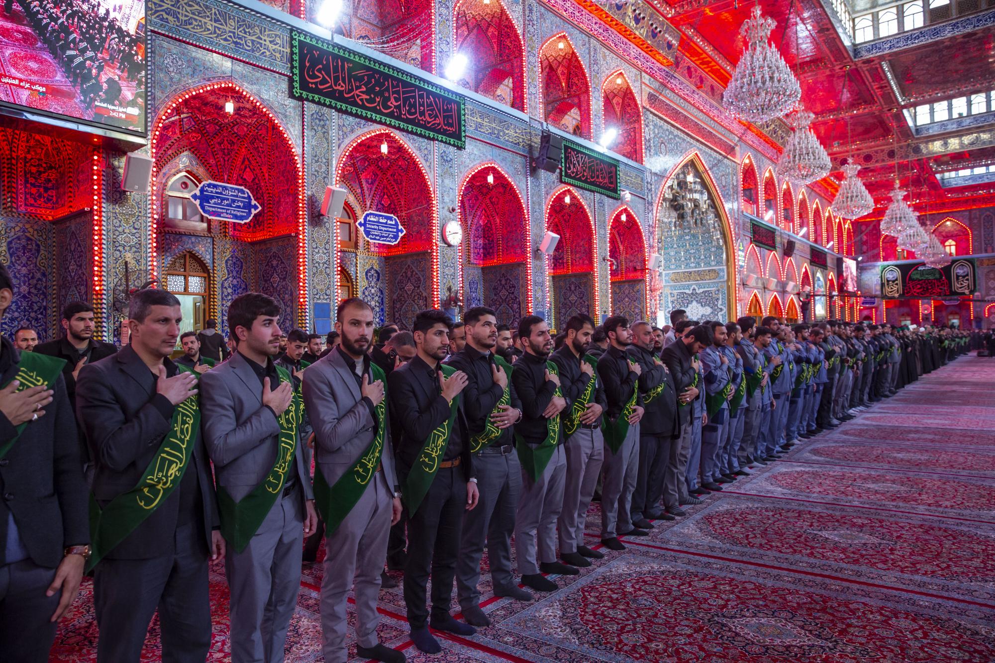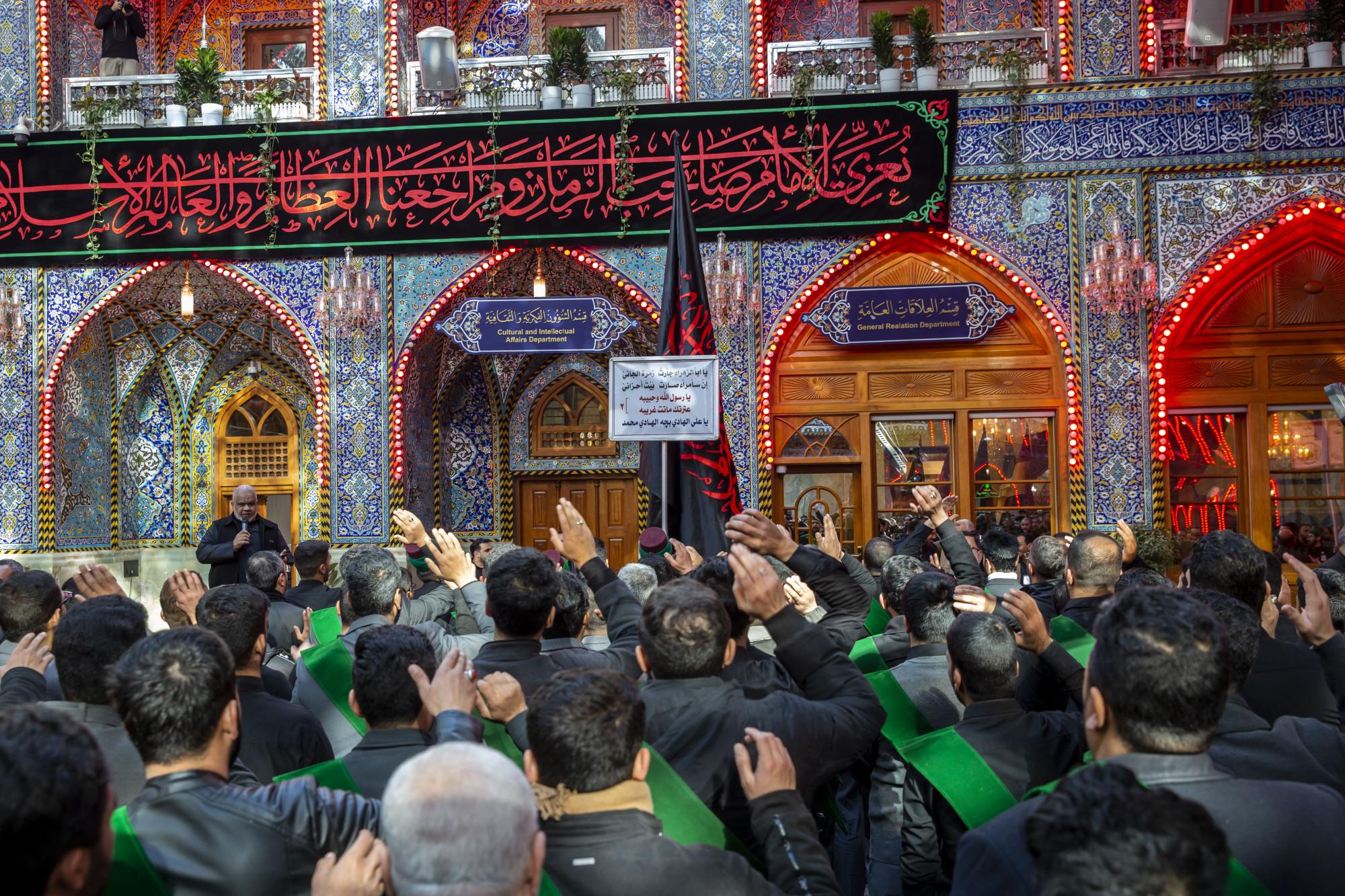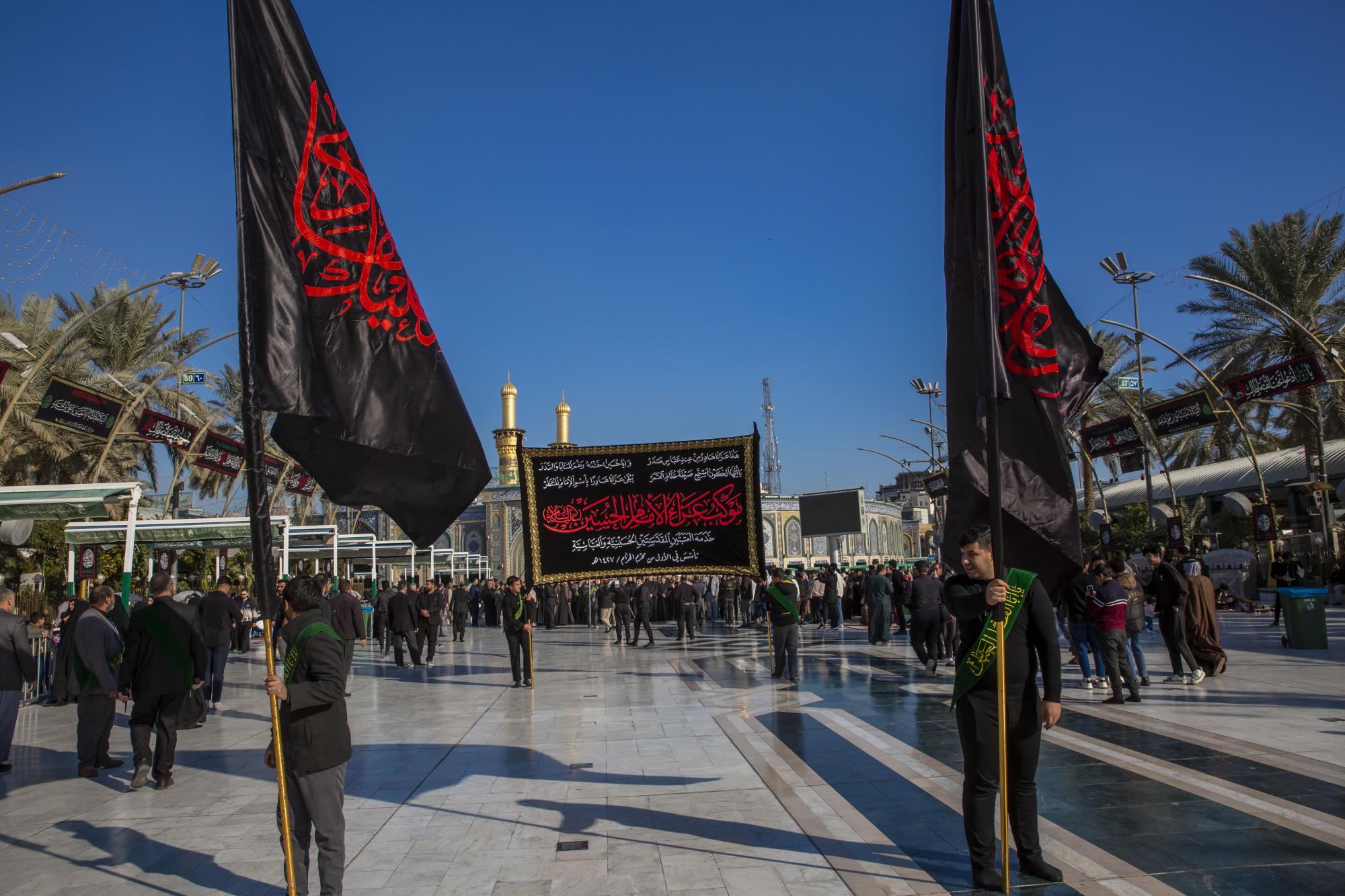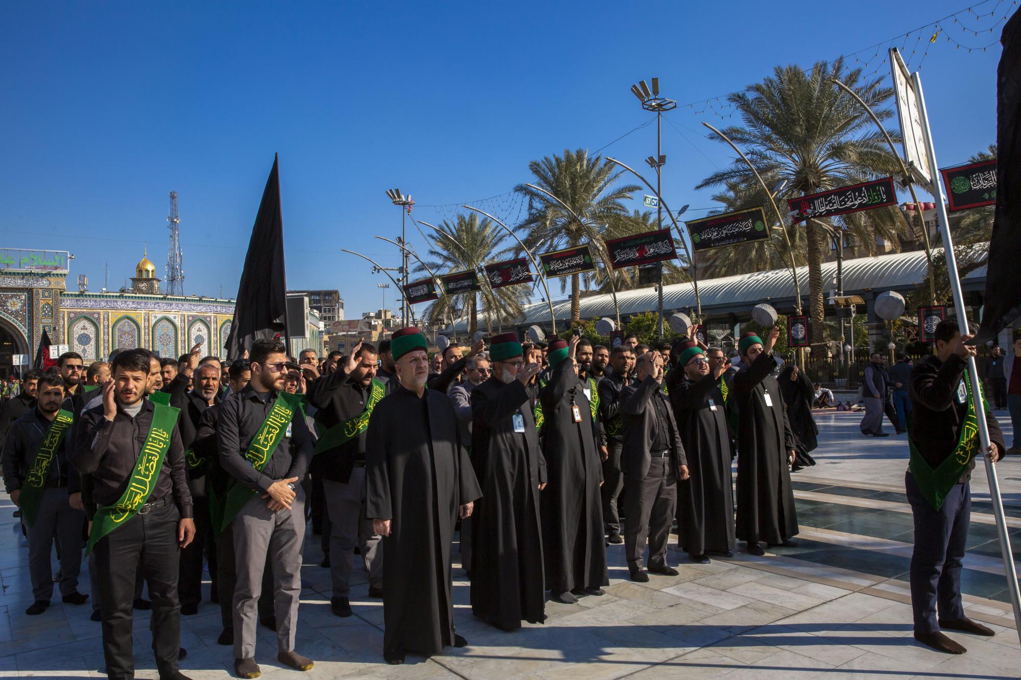 One of the staff of the Sayed servants ' division at the Al-Abbas's (p) shrine: Sayed Badri Mamitha, said:"the servants of the holy shrines of Imam al-Hussayn and al-Abbas (peace be upon them), they set off through a unified funeral procession on the occasion of the sad anniversary of the martyrdom anniversary of Imam Ali al-Hadi (peace be upon him), echoing the words that embodied the feelings of sadness and sorrow, and showed the extent of this casualty in the hearts of the lovers of Ahl Al-Bayt (peace be upon them)".