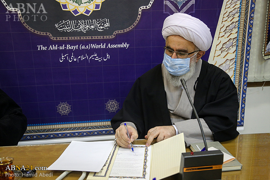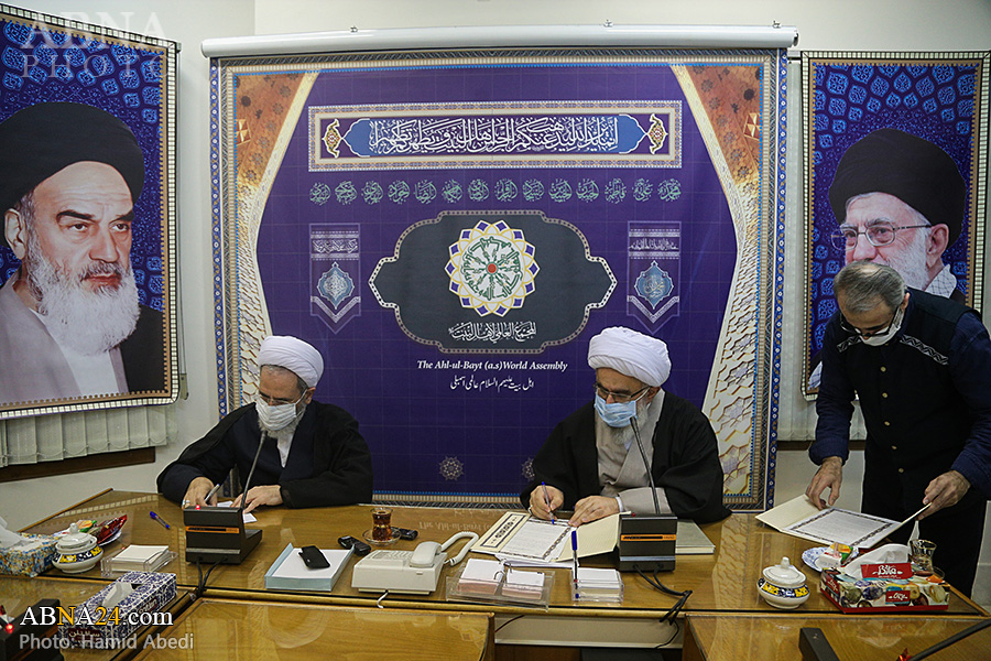Signing ceremony of memorandum of understanding between Ahlulbayt (AS) World Assembly and Centre for Management of Islamic Seminaries held in Qom.
