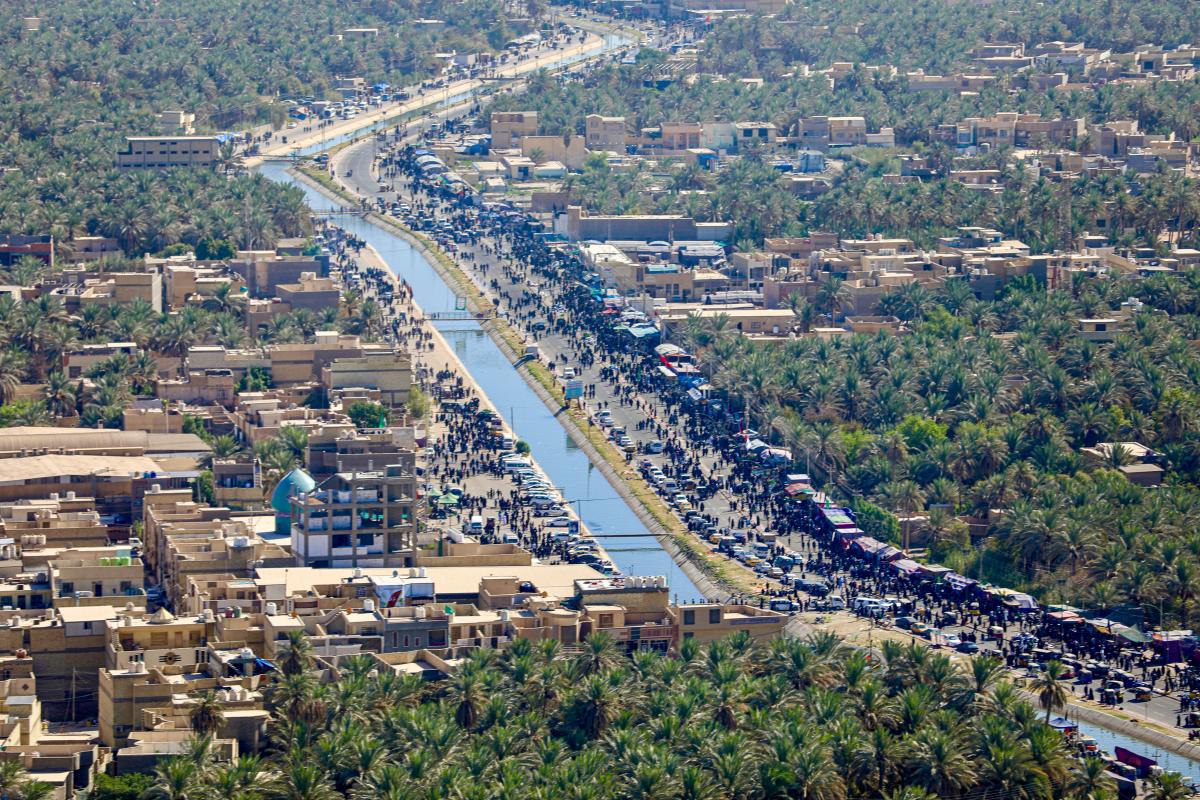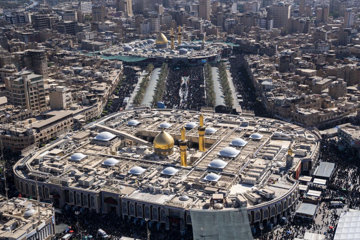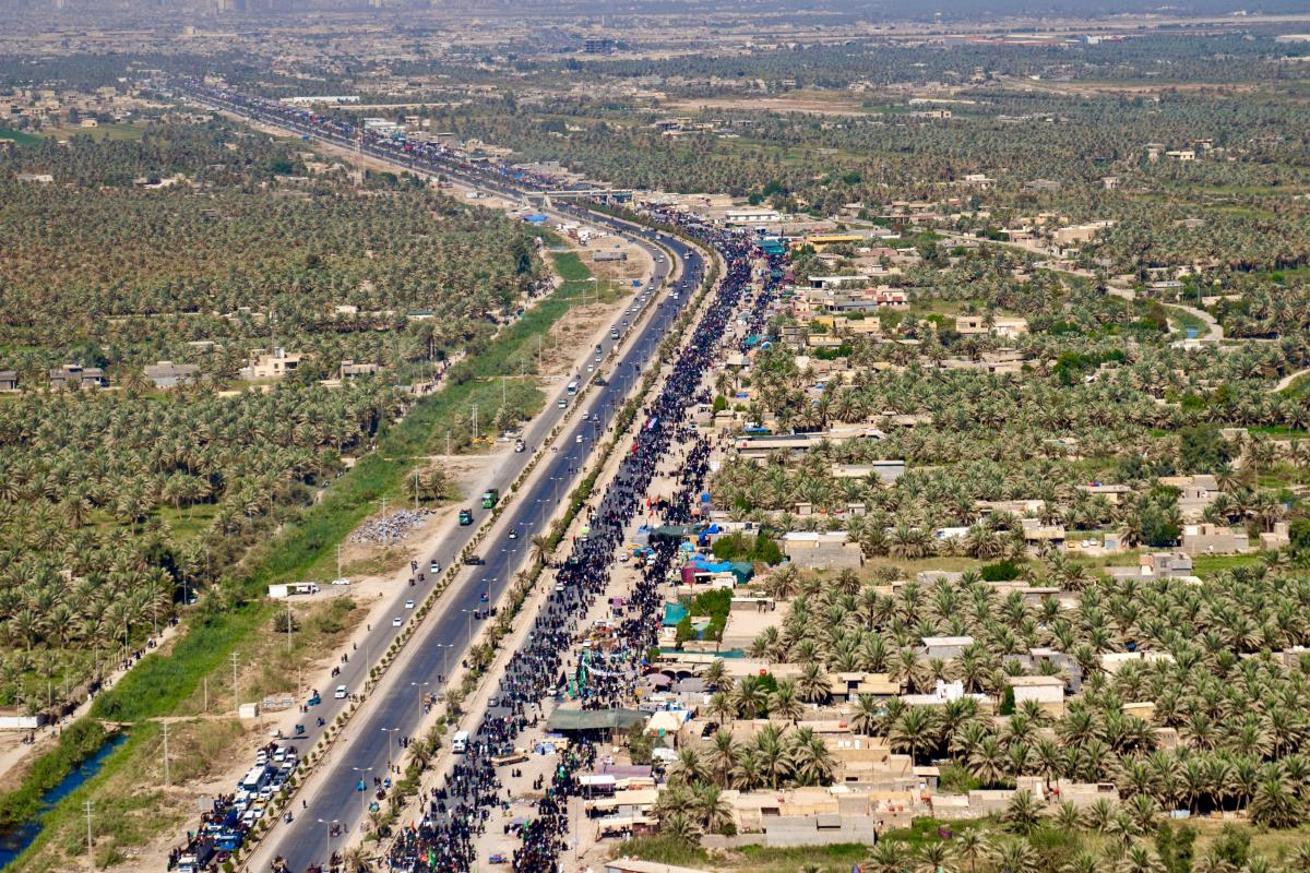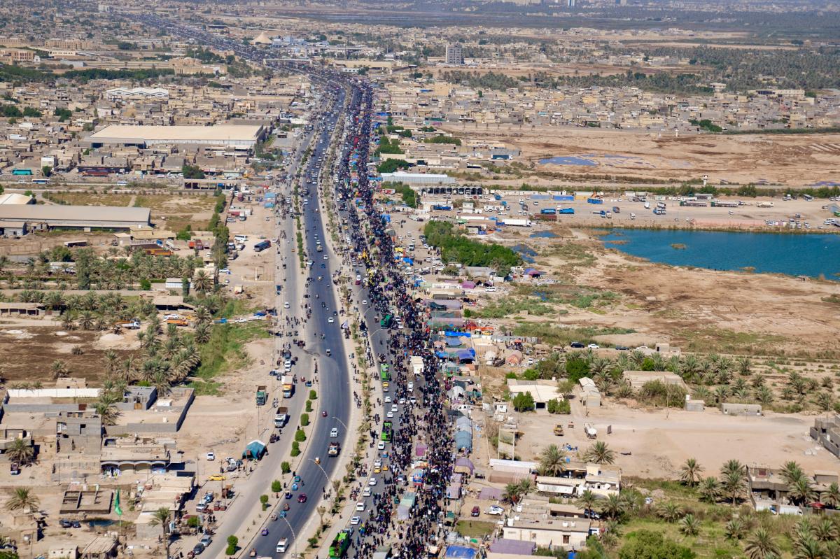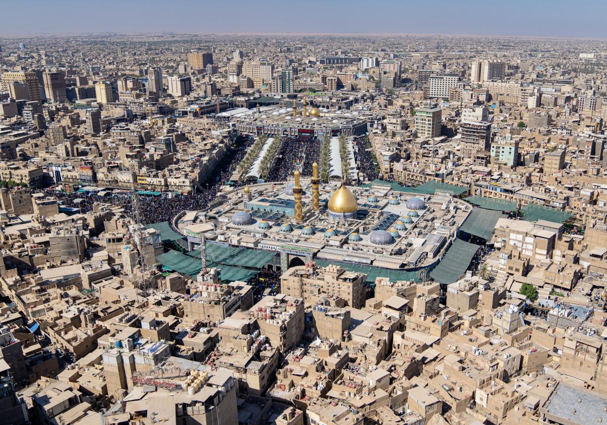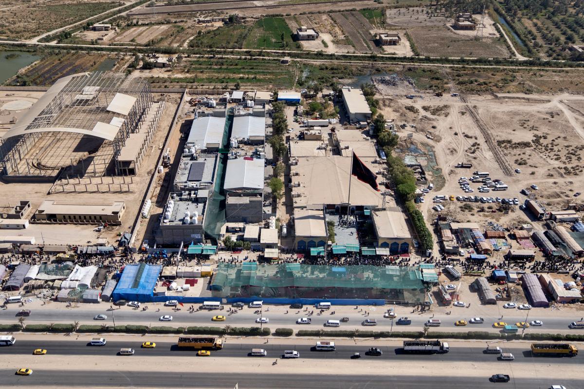 Aerial photos taken by the cameras of the expert center of the Media Department of the Al-Abbas's (p) holy shrine showed the movement of visitors inside the holy city of Karbala and its main entrances. The holy city of Karbala is currently witnessing the arrival of millions of Iraqi and foreign visitors to commemorate the ceremonies of the blessed Ziyarat Arba'een tomorrow, 20th Safar 1444 AH, corresponding to September 17, 2022 .
