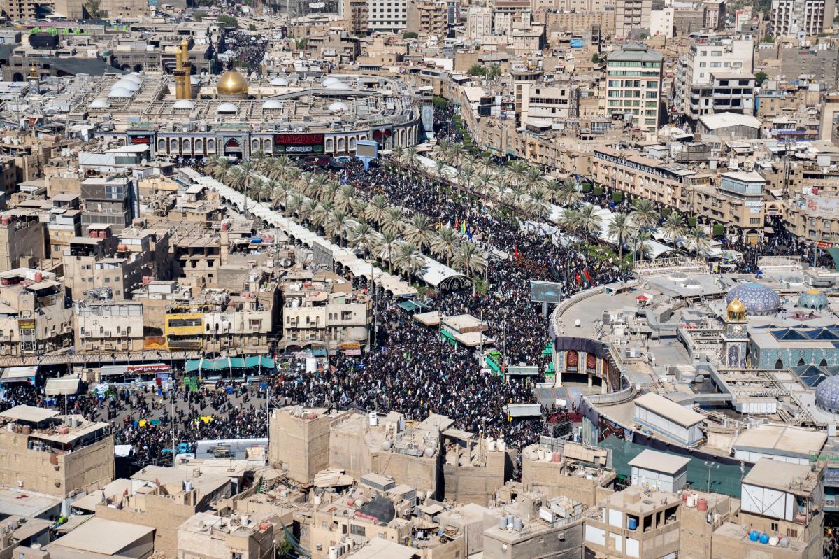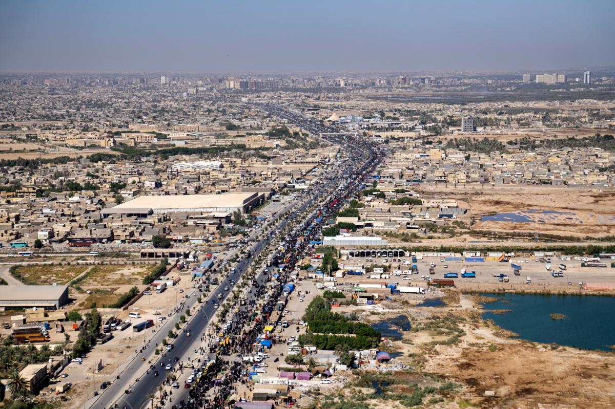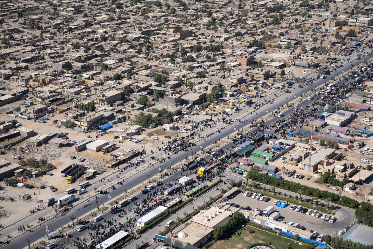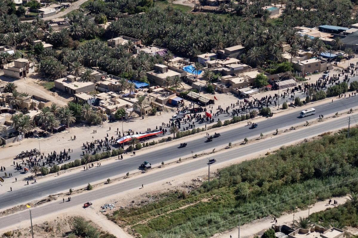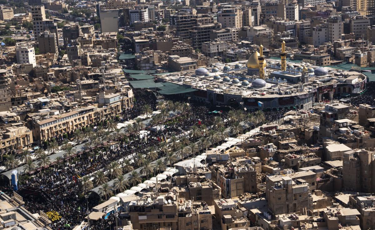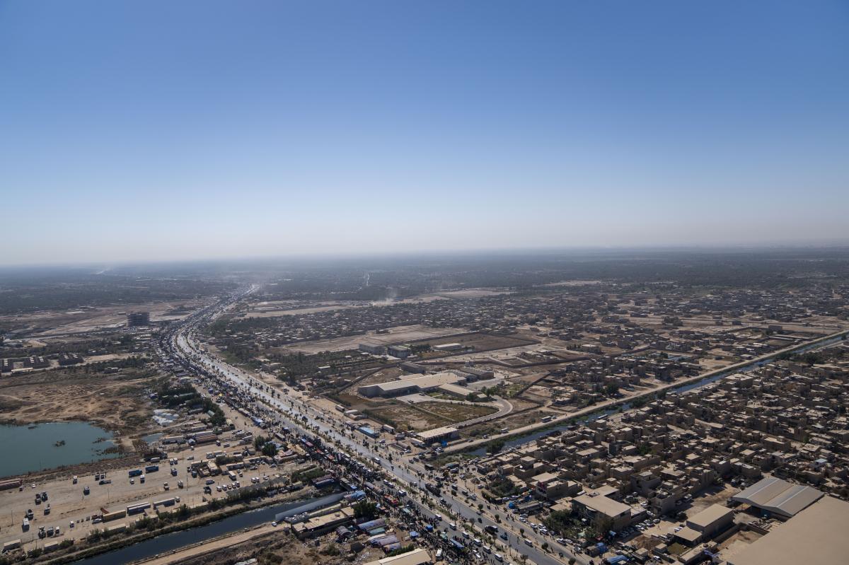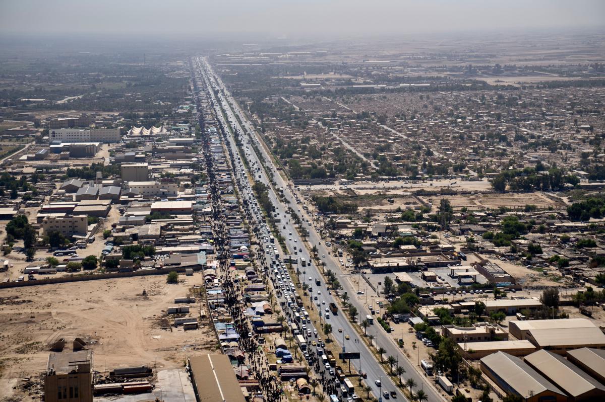 Aerial photos taken by the cameras of the expert center of the Media Department of the Al-Abbas's (p) holy shrine showed the movement of visitors inside the holy city of Karbala and its main entrances. The holy city of Karbala is currently witnessing the arrival of millions of Iraqi and foreign visitors to commemorate the ceremonies of the blessed Ziyarat Arba'een tomorrow, 20th Safar 1444 AH, corresponding to September 17, 2022 .