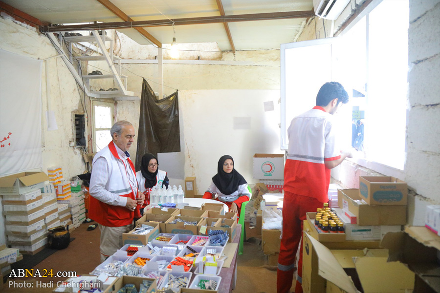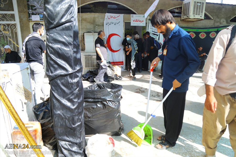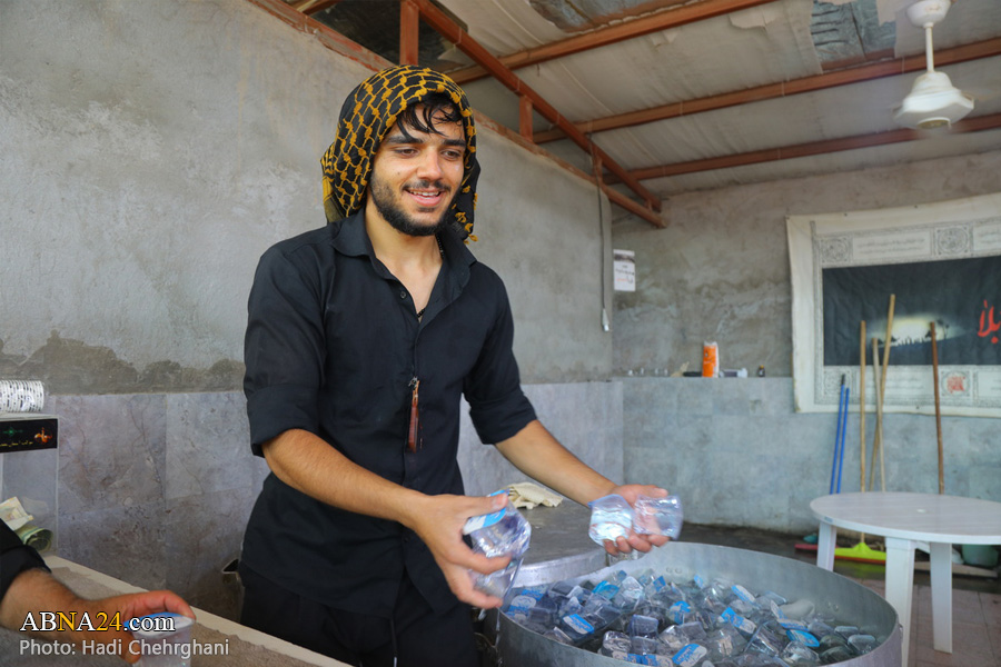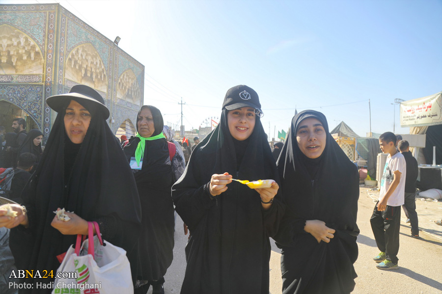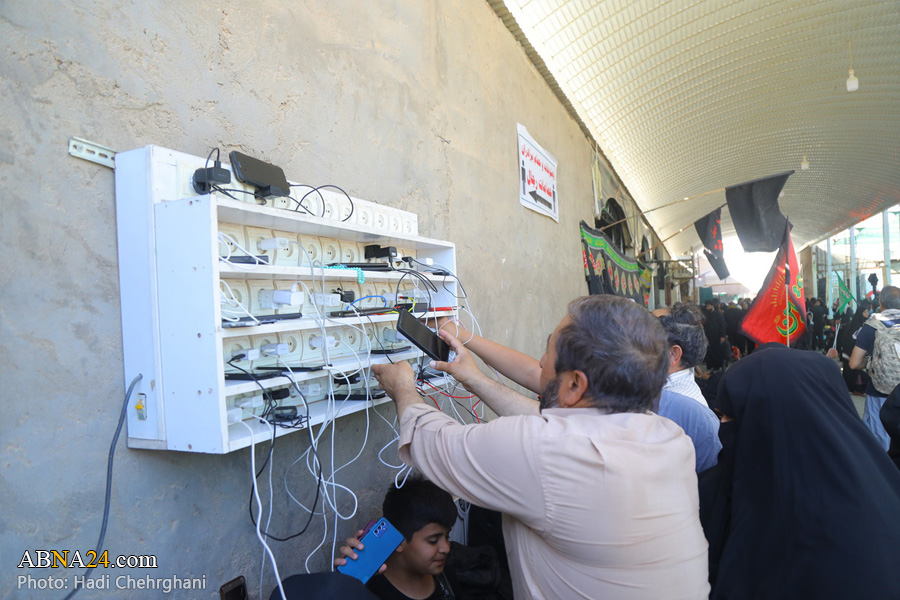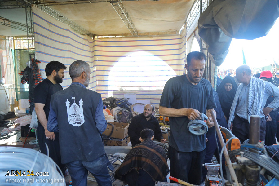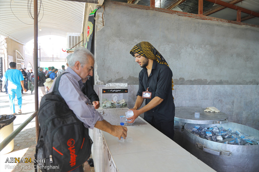 AhlulBayt News Agency (ABNA): The Holy Astan of Hazrat Fatima Masoumeh (s.a.) by setting up a Moukeb on the walking route of Arbaeen from Najaf to Karbala, services to the pilgrims of Arbaeen.