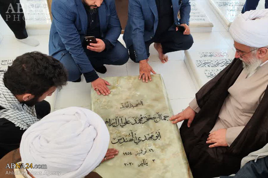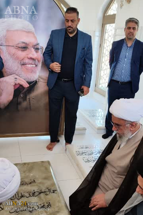 AhlulBayt News Agency (ABNA): Ayatollah Reza Ramazani, the Secretary General of the AhlulBayt (a.s.) World Assembly, attended the tomb of a group of scholars and martyrs buried in Wadi-us-Salaam cemetery, including the tomb of Martyr Abu Mahdi al-Muhandis, in Najaf.