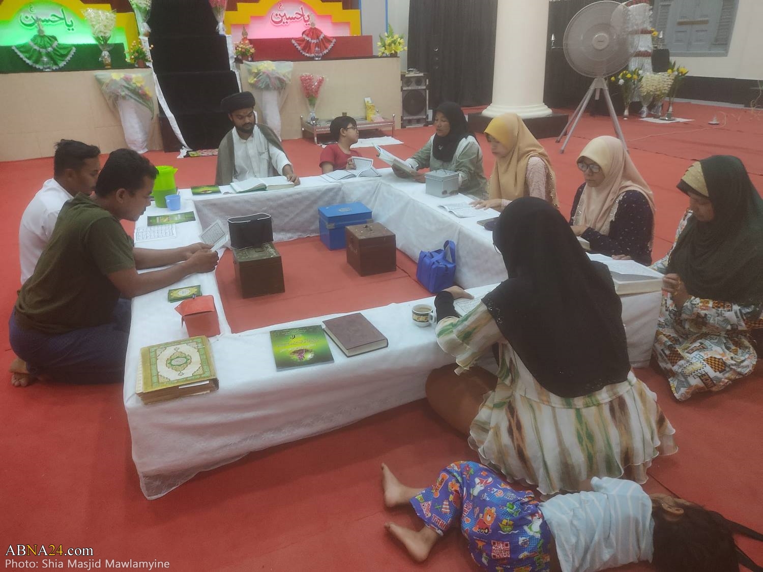 Quran Tafseer and Iftar table during holy month of Ramadan at Shia Masjid of Mawlamyine city, Myanmar. (1444-2023)