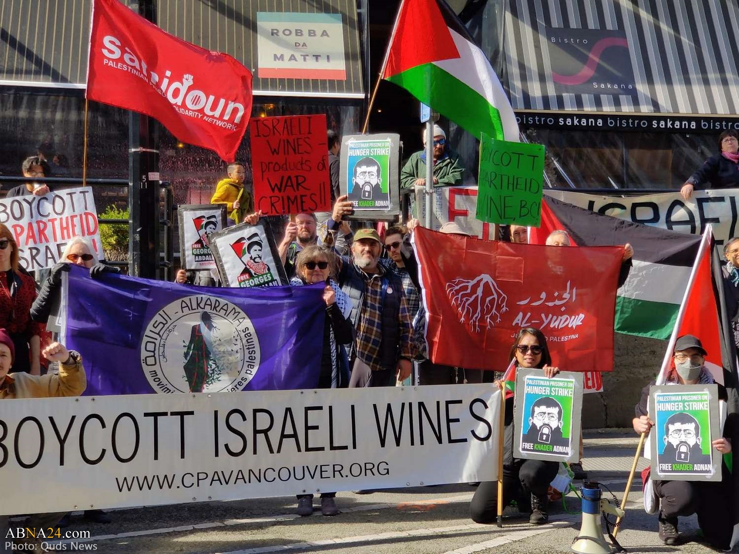 Pro-Palestine activists hold a vigil in Vancouver of Canada to demand BC Stores end their complicity in Israeli war crimes and stop selling Israeli products! They also called to free Palestinian prisoners in Israeli jails Walid Abu Daqqa and Khader Adnan.