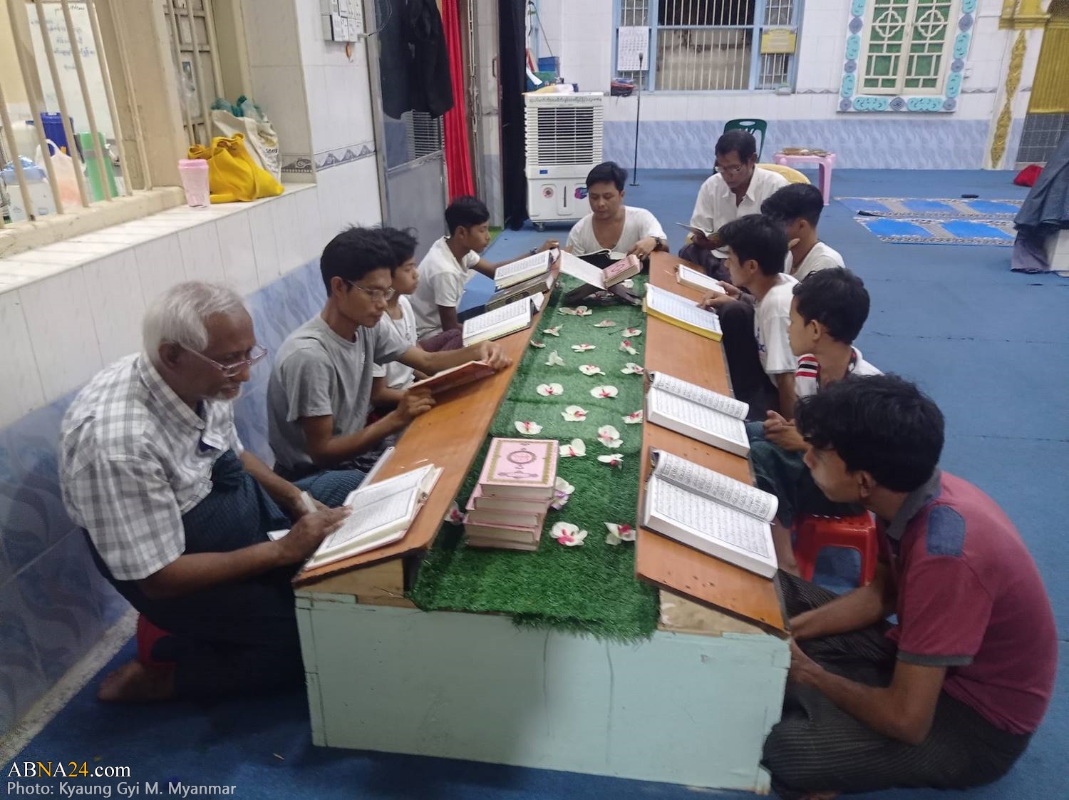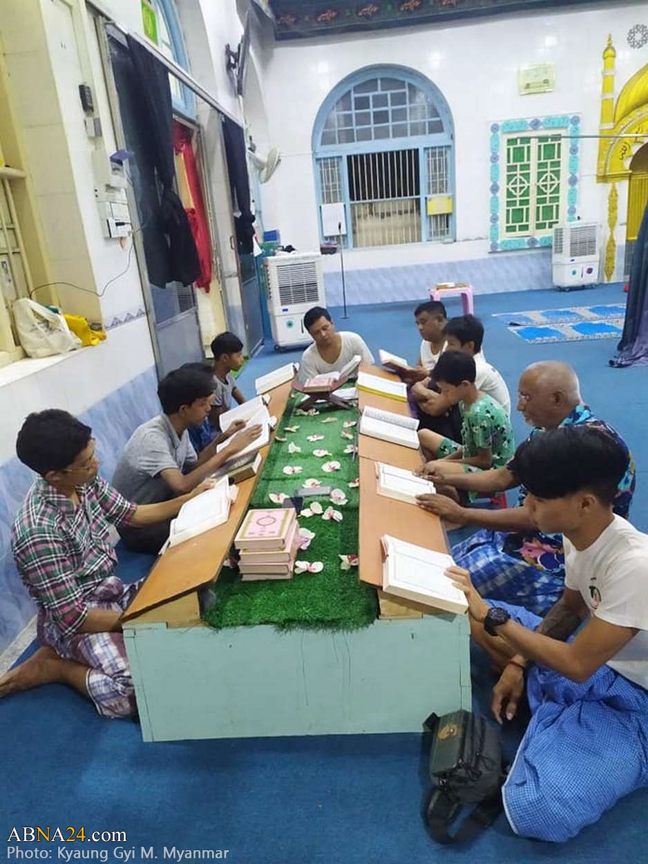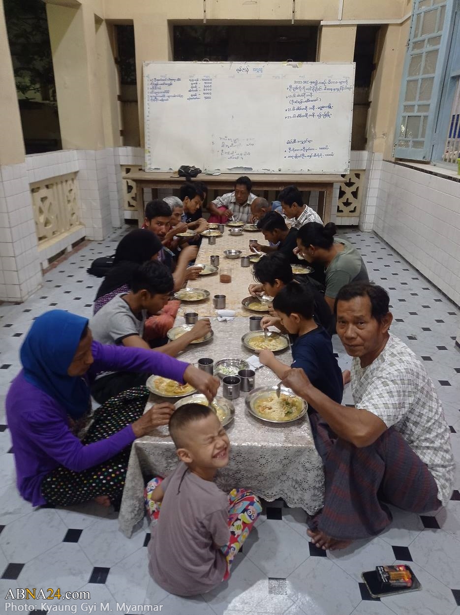 Holy Ramadan Quran recitation and Iftar table at Kyaung Gyi Mosque in Pyay town, Myanmar (1444-2023)