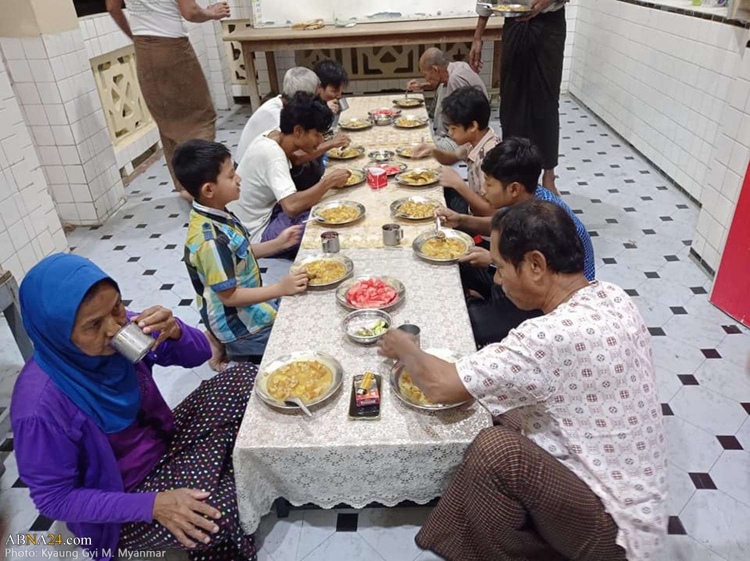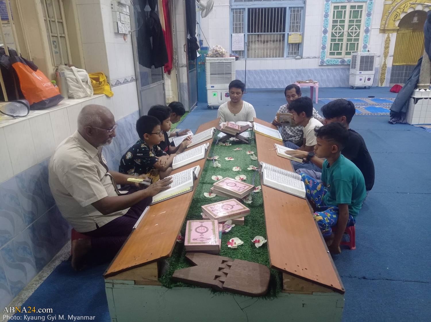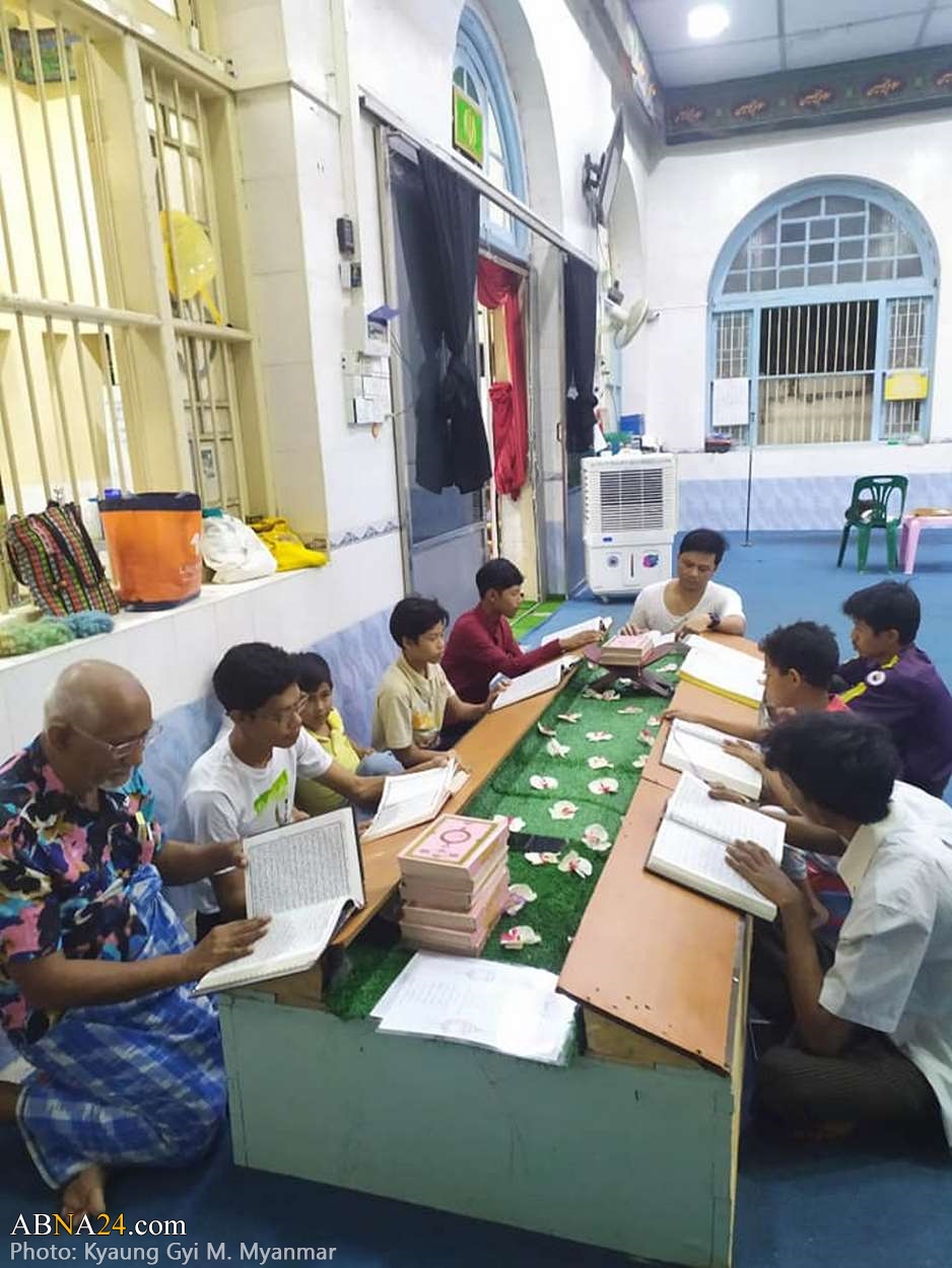 Holy Ramadan Quran recitation and Iftar table at Kyaung Gyi Mosque in Pyay town, Myanmar (1444-2023)