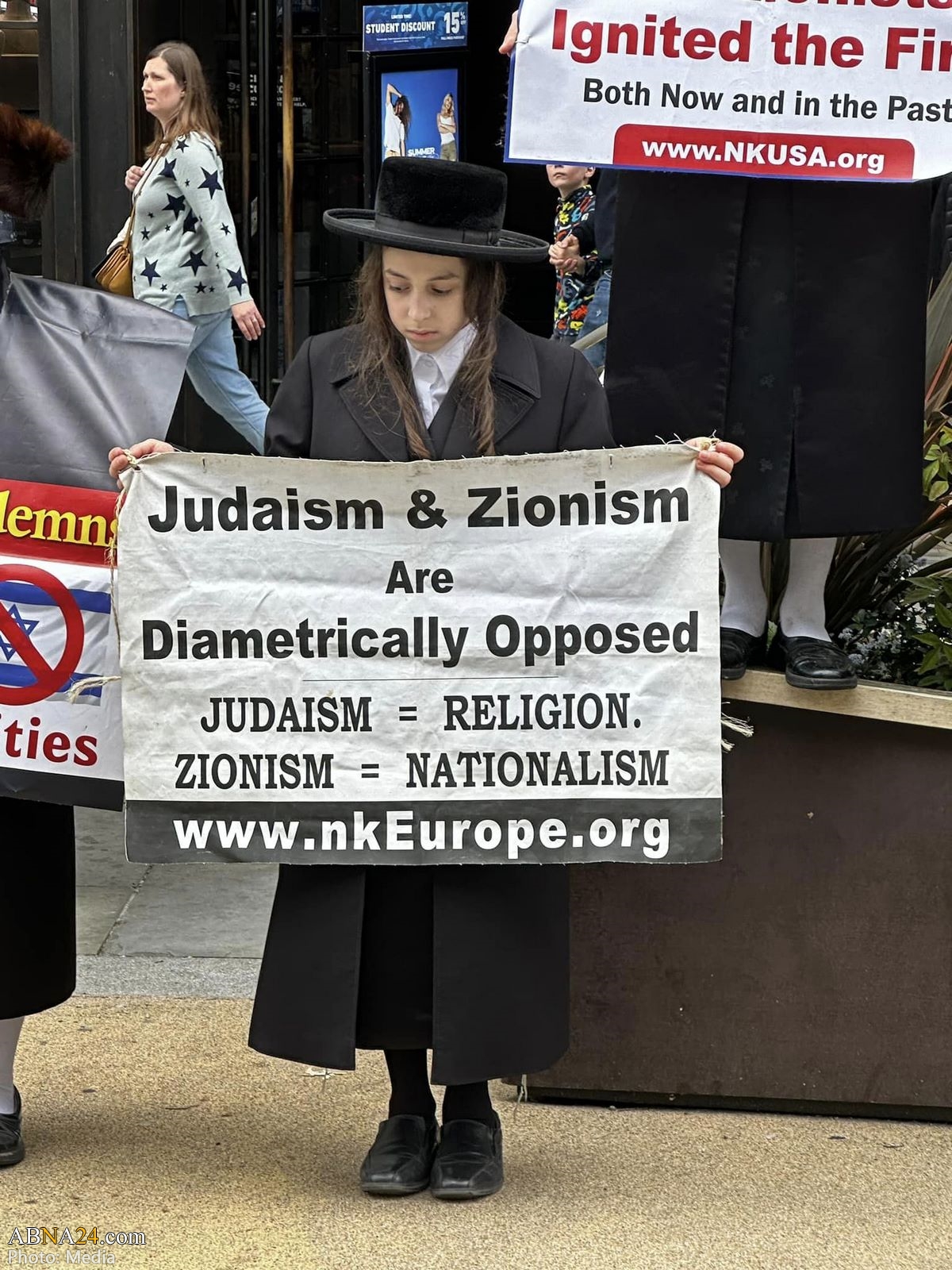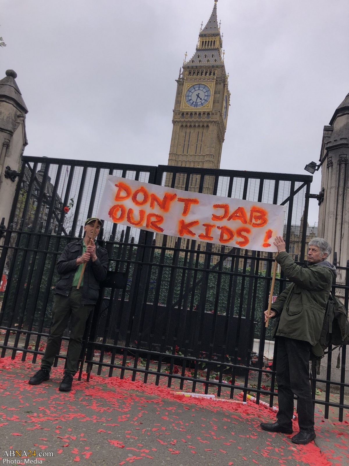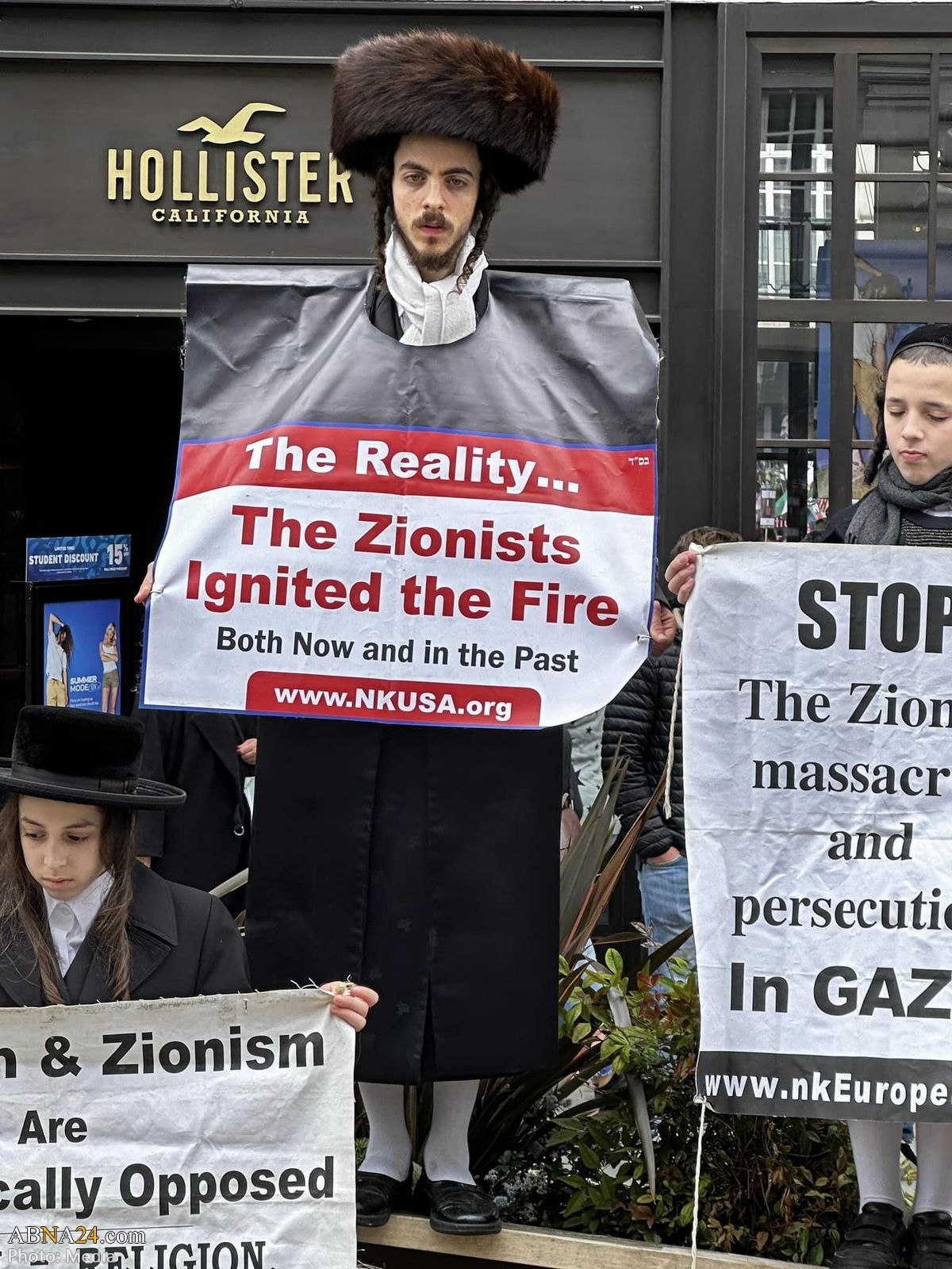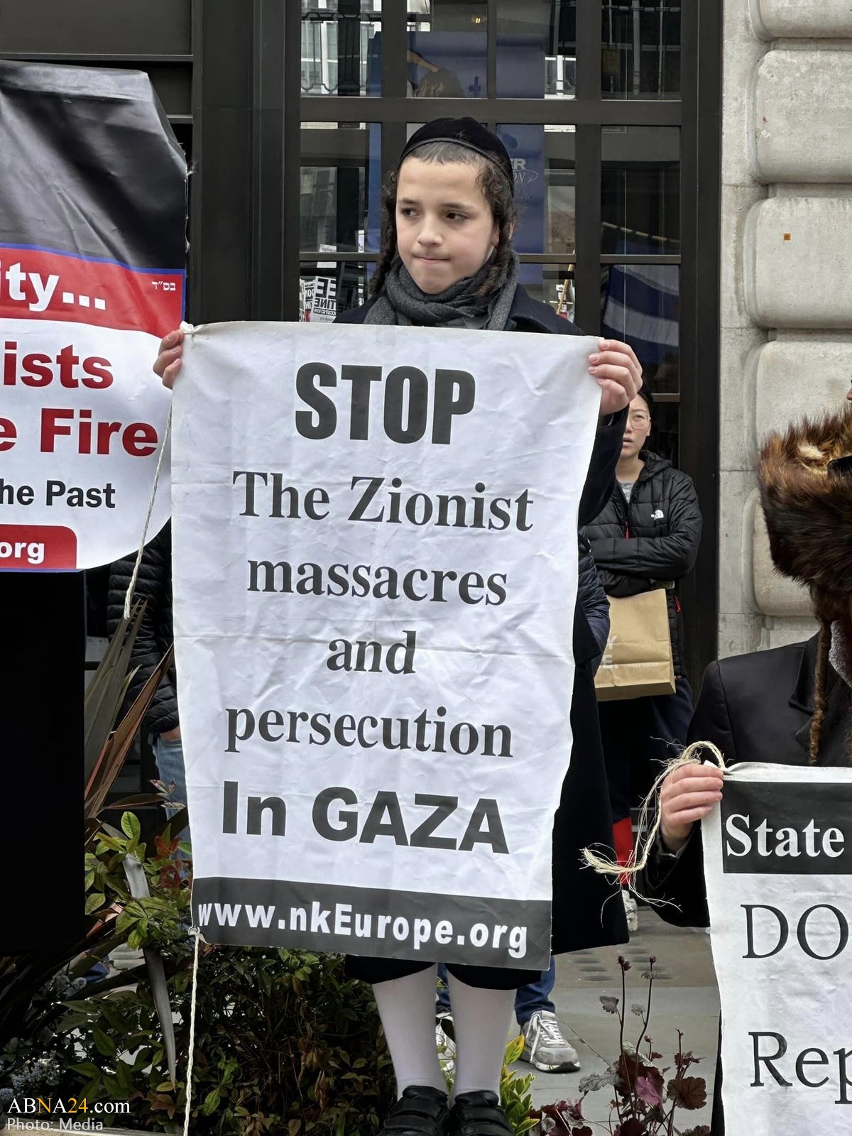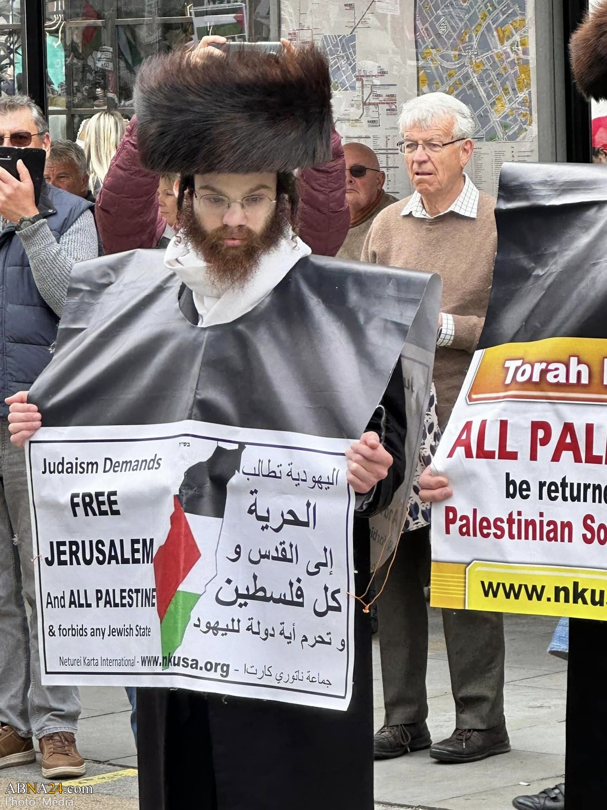 Pro-Palestine activists march to Downing Street in London to demand that the British government pressure ‘Israel’ to stop bombing Gaza and impose sanctions on ‘Israel’ for its 75-year Nakba of Palestine. Thousands of people gathered in London to mark the 75th anniversary of Nakba Day, which marks the establishment of the fake regime of Israel in historical Palestine, forcing nearly 800,000 Palestinians to flee their homes.