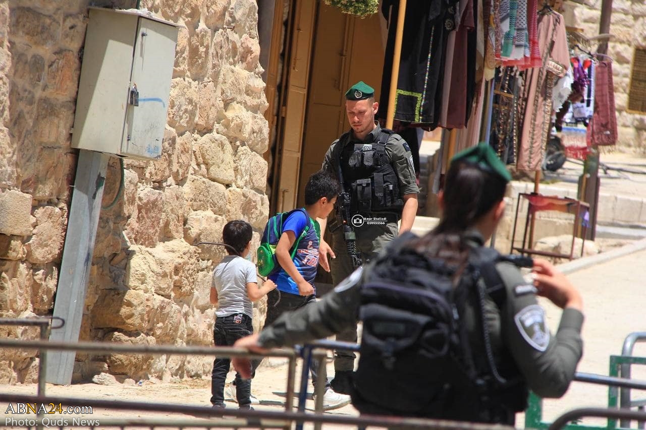 Photos: Israeli occupation soldier seizes flag of Palestine from a child near Al-Ibrahimi mosque