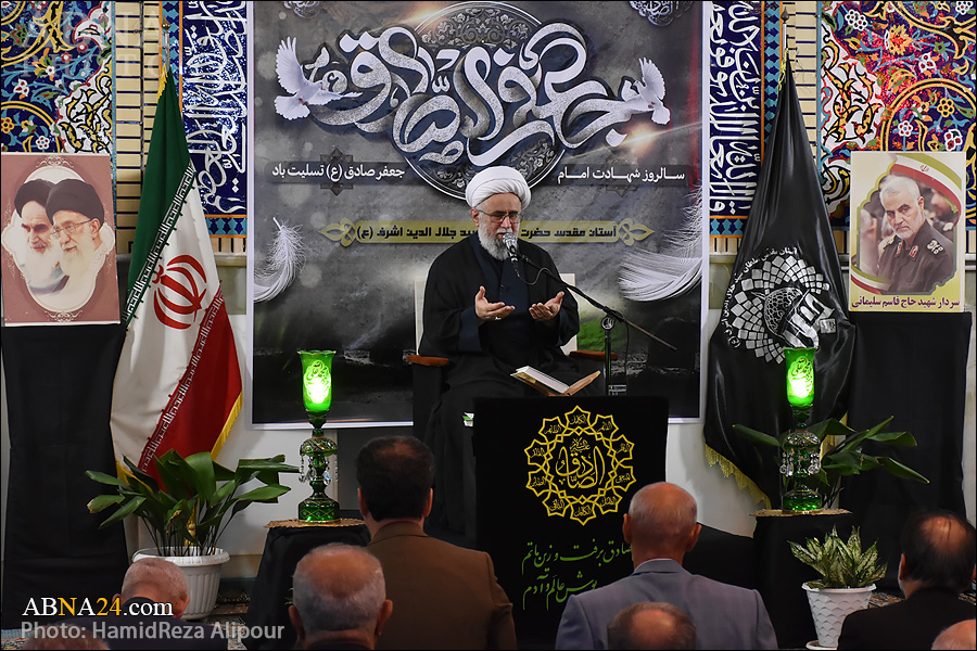 AhlulBayt News Agency (ABNA): Mourning ceremony of Imam Sadiq (a.s.) martyrdom was held at Seyyed Jalal-ad-Din Ashraf shrine in Astaneh-ye Ashrafiyeh. Ayatollah Ramazani, the Secretary General of AhlulBayt (a.s.) World Assembly delivered speech at the ceremony.