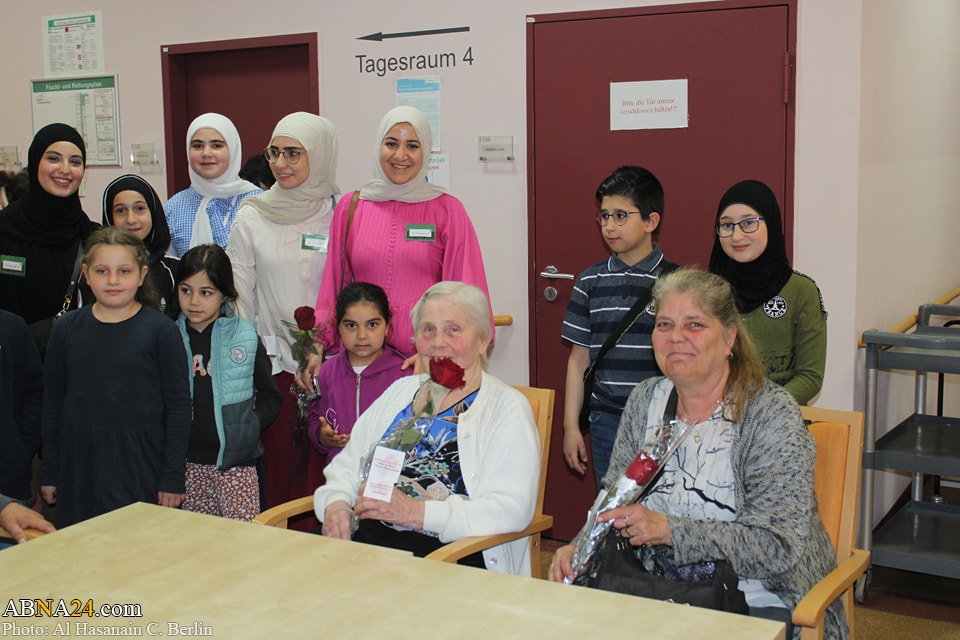 On the occasion of Mother's Day in Germany, a group of children and women of the Imamain Al-Hassanein (AS) in Berlin, Germany visited the nursing home and congratulated them old women and gifted them roses. Mother's Day in Germany is May 14, 2023.