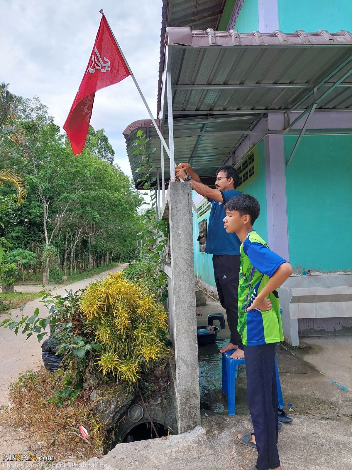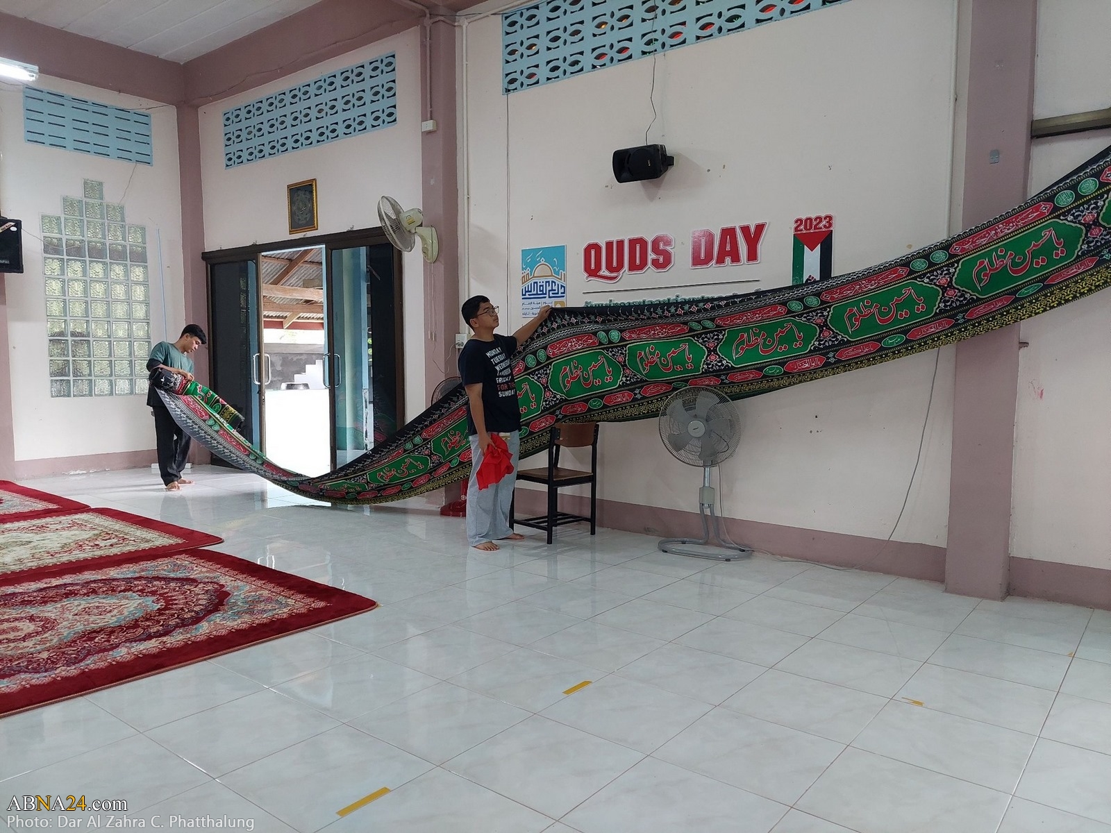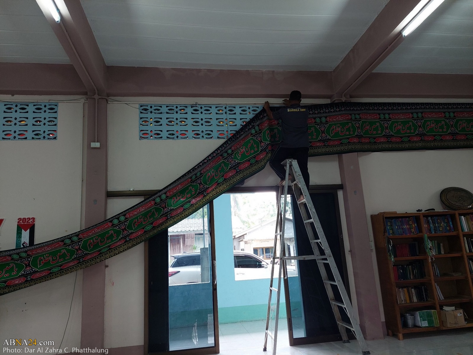 Youths are preparing Dar al-Zahra Center in Kong Ra district of Phatthalung province in Thailand for Muharram mourning ceremony 1445-2023.