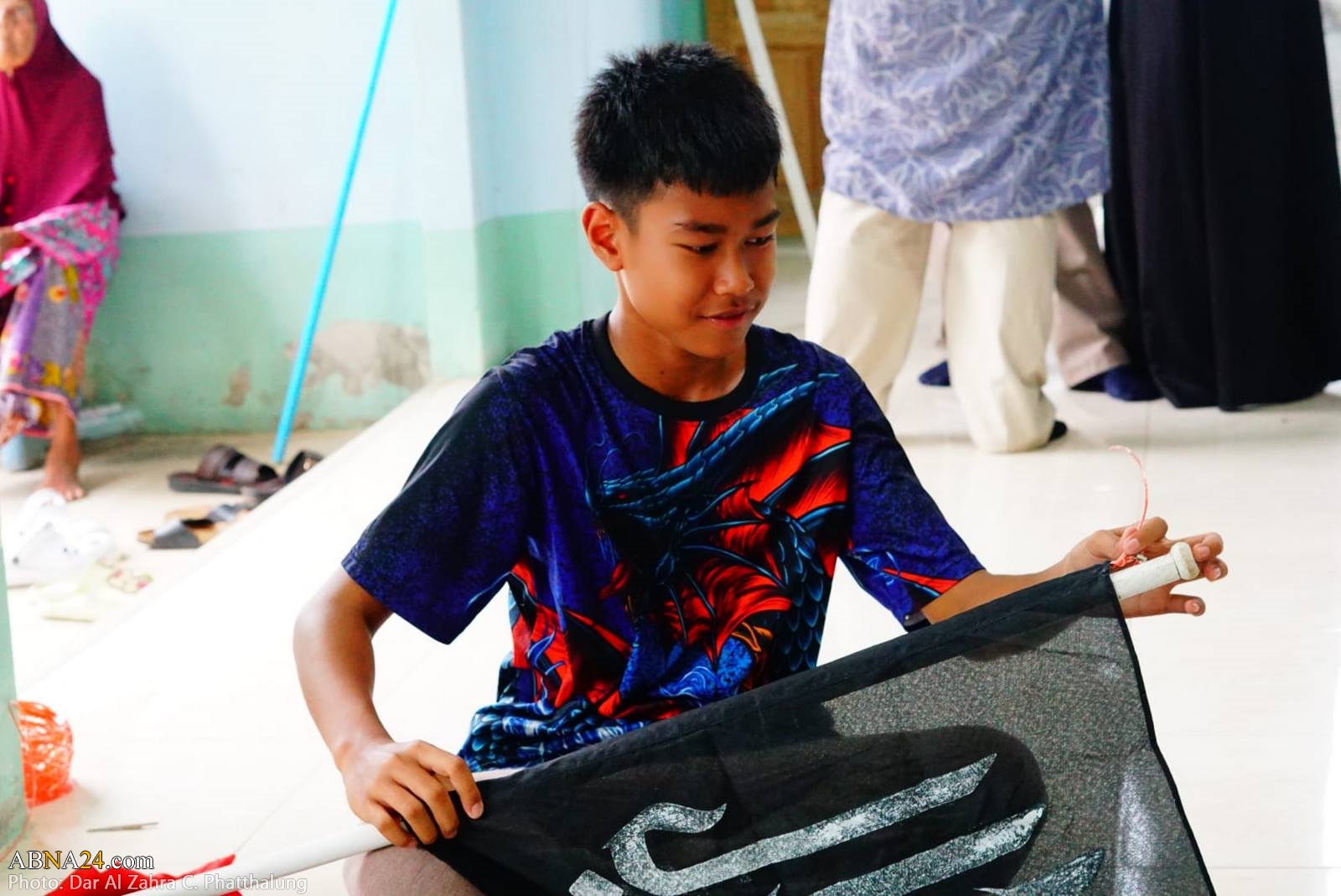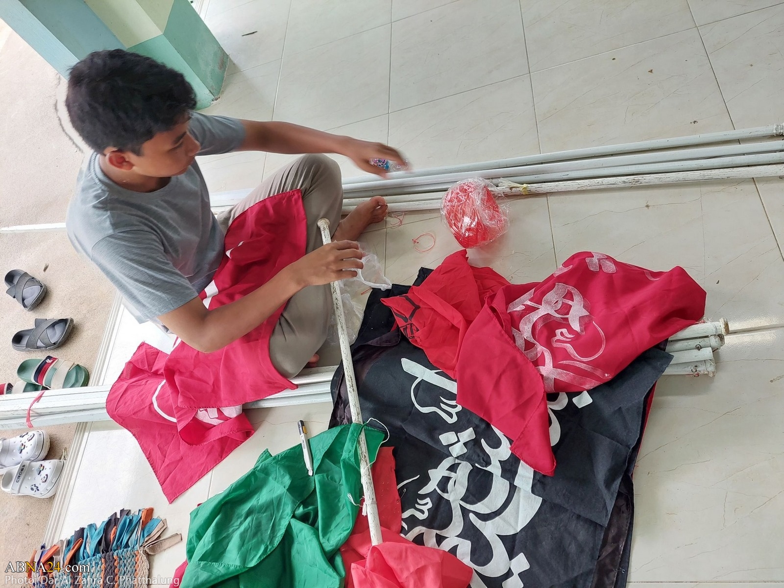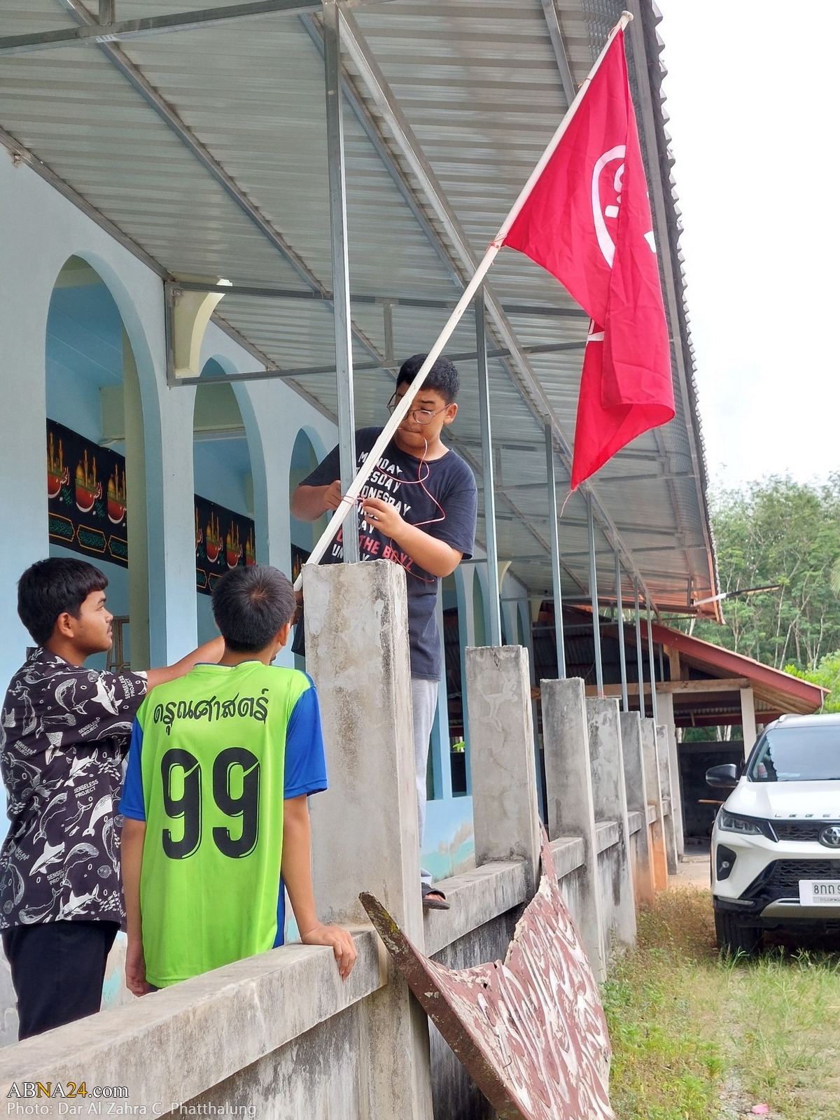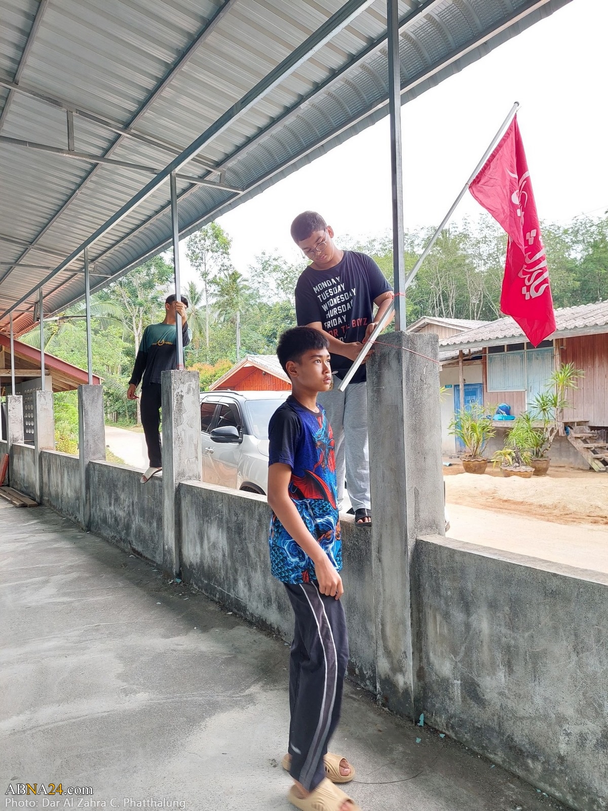 Youths are preparing Dar al-Zahra Center in Kong Ra district of Phatthalung province in Thailand for Muharram mourning ceremony 1445-2023.