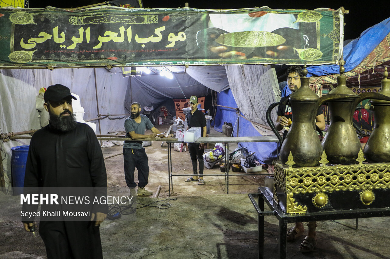 AhlulBayt News Agency (ABNA): As the Arbaeen pilgrims are crossing the Iran-Iraq borders to visit Imam Hussein (AS) holy shrine in Karbala, different mawkibs (voluntarily prepared stations) are set on their paths to serve them.