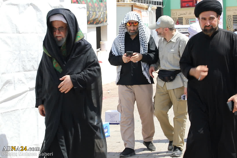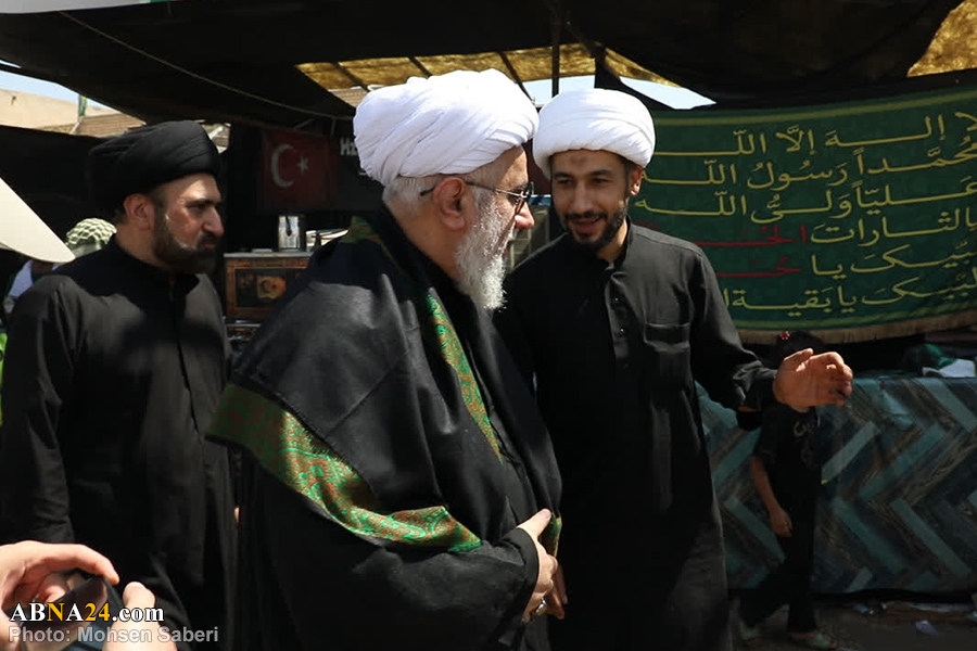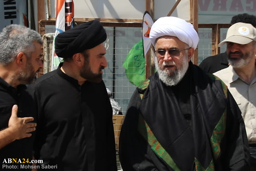 AhlulBayt News Agency (ABNA): Secretary General of AhlulBayt World Assembly Ayatollah Ramazani was attended in some international Mawkibs on Najaf-Karbala Road.