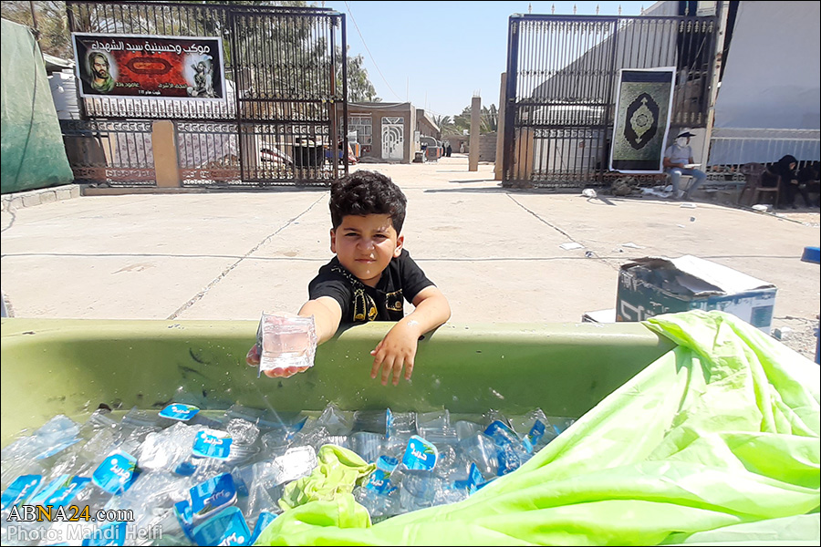 AhlulBayt News Agency (ABNA): During Arbaeen pilgrimage, Iraqi children serve pilgrims on the walking path of Najaf towards Karbala.