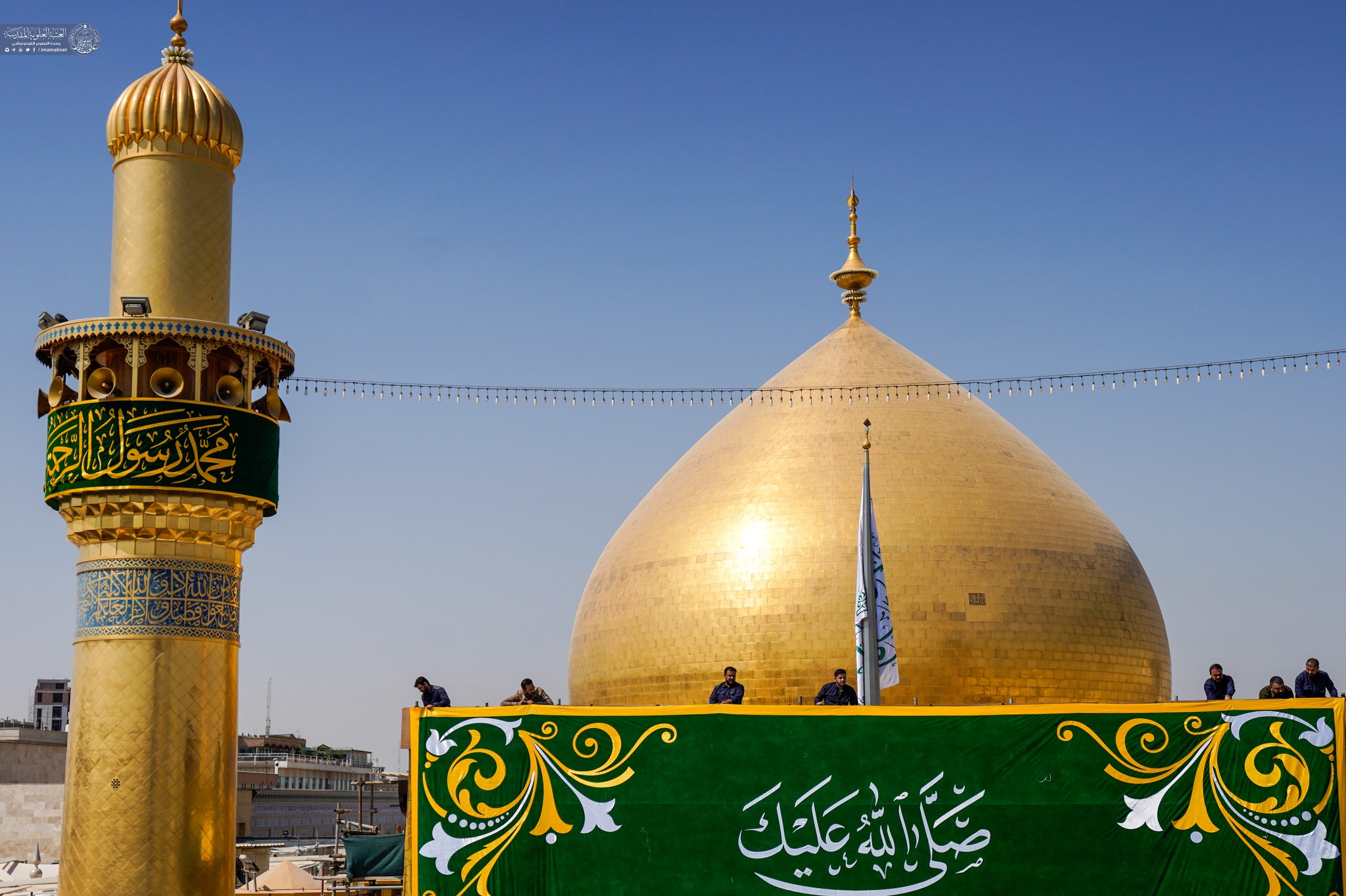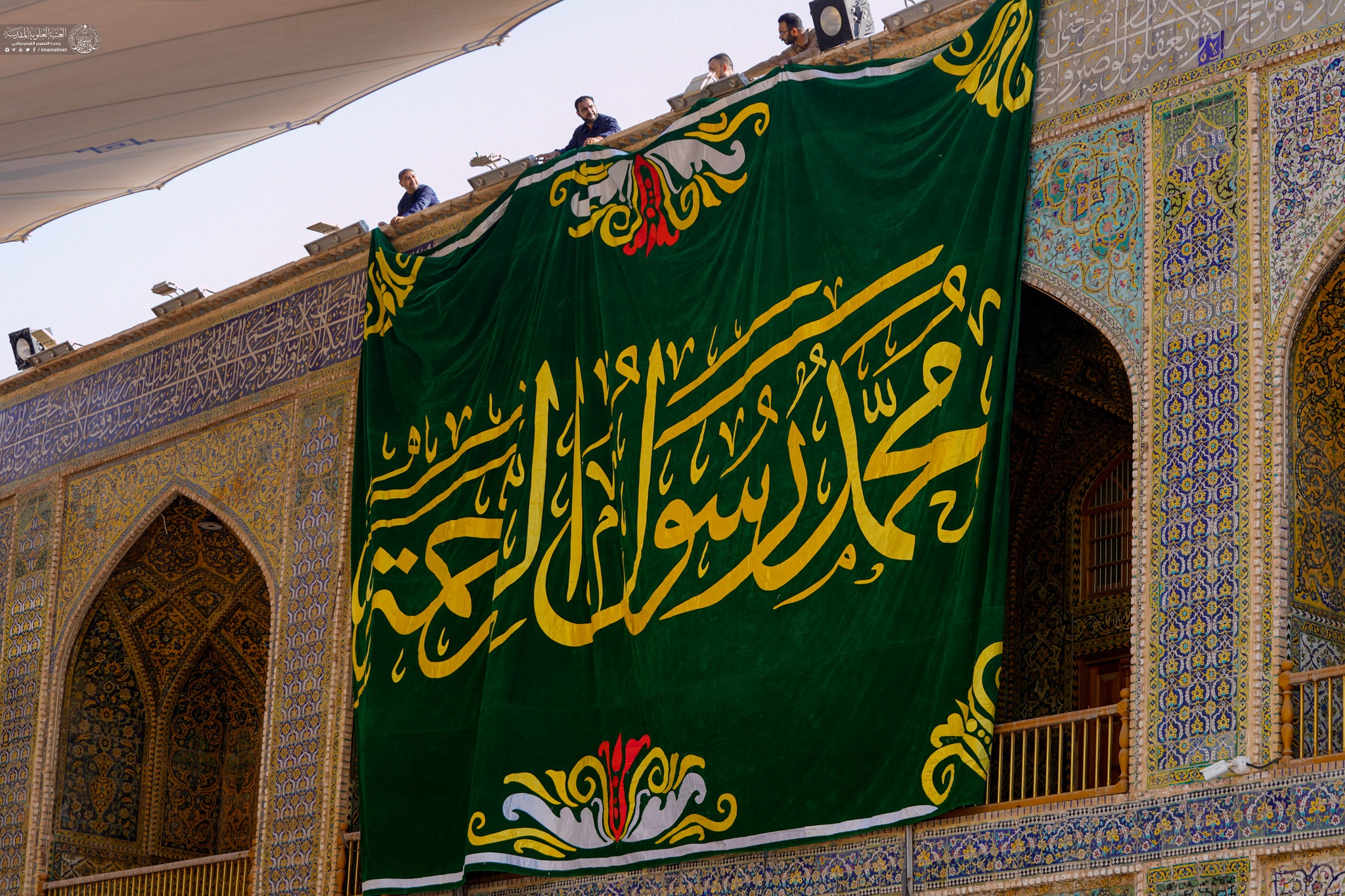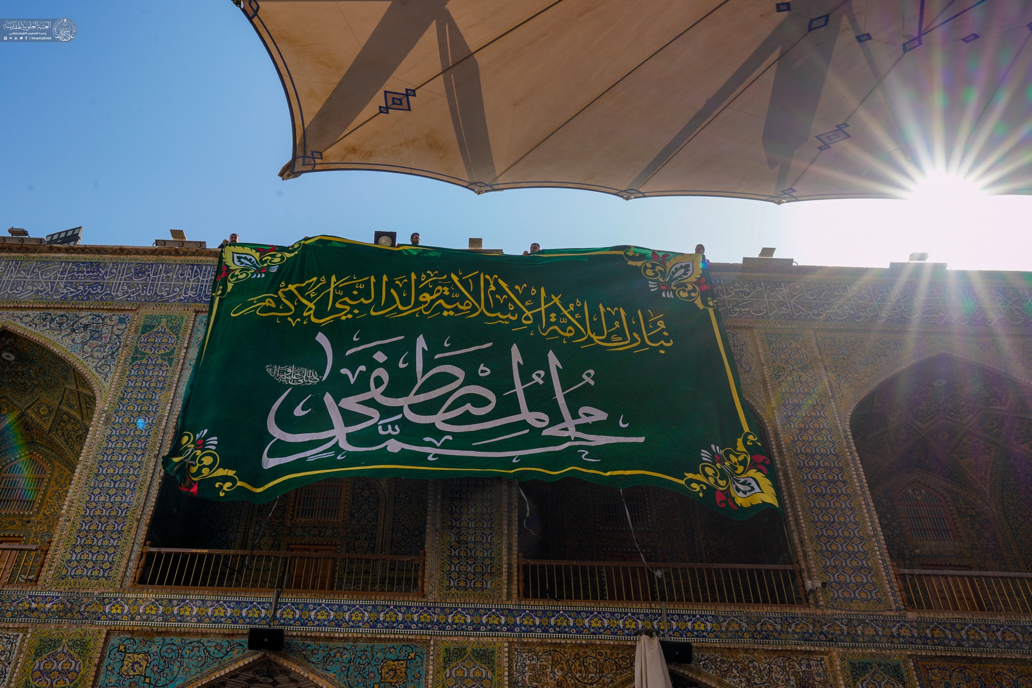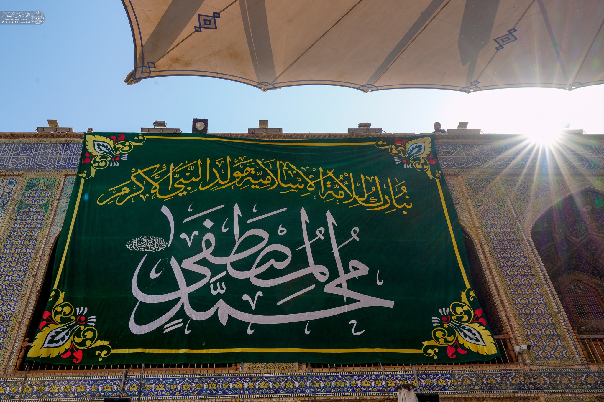 On auspicious birth anniversary of Prophet Muhammad (A) the holy shrine of Amir Al-Mu'minin Ali ibn Abi Talib decorated with green banners and flowers.