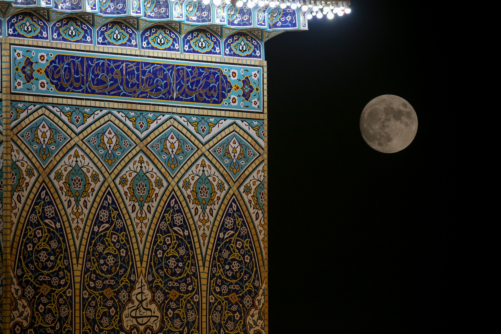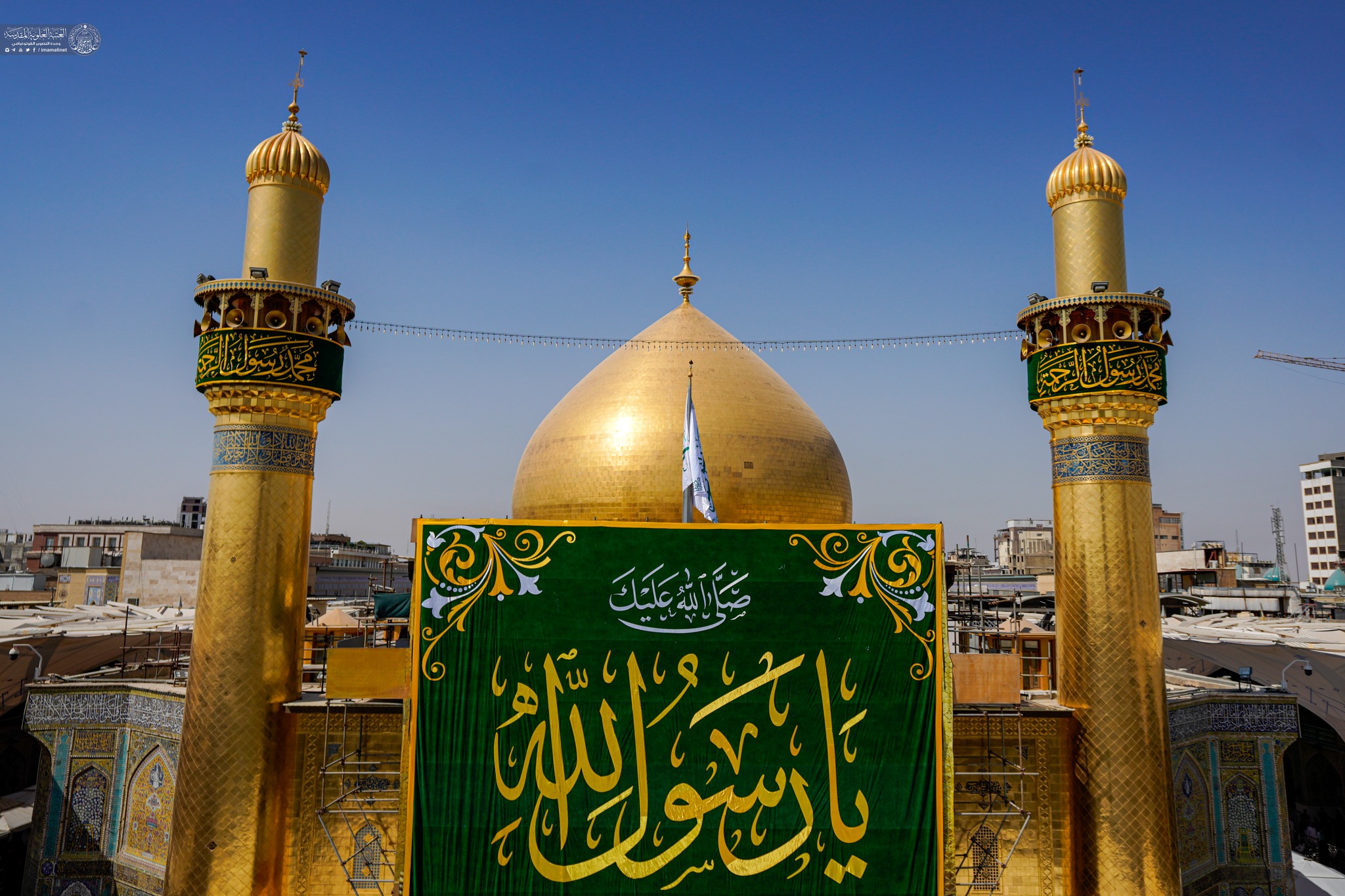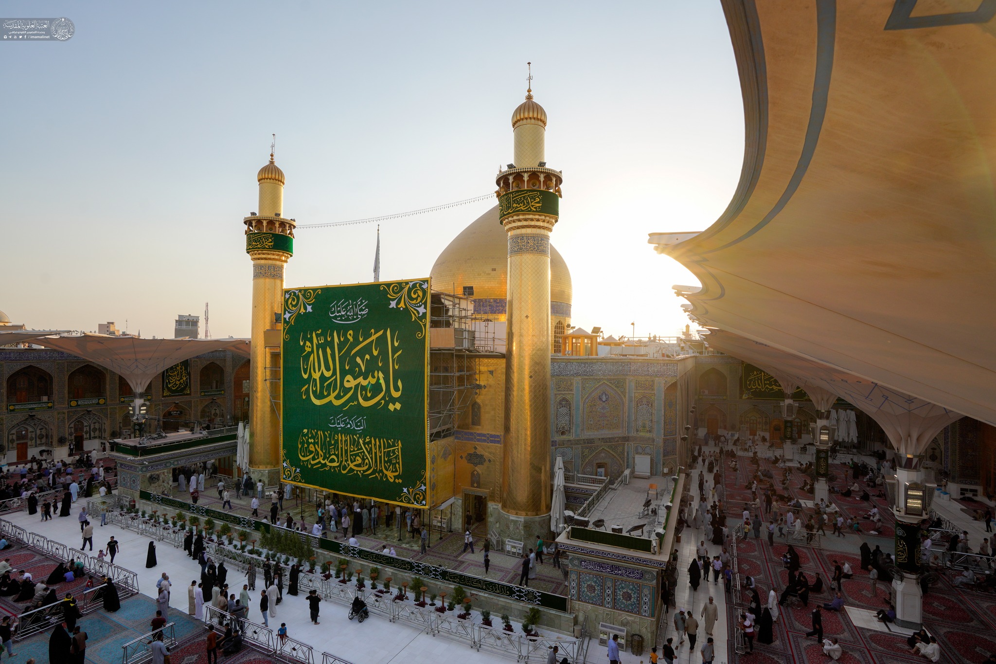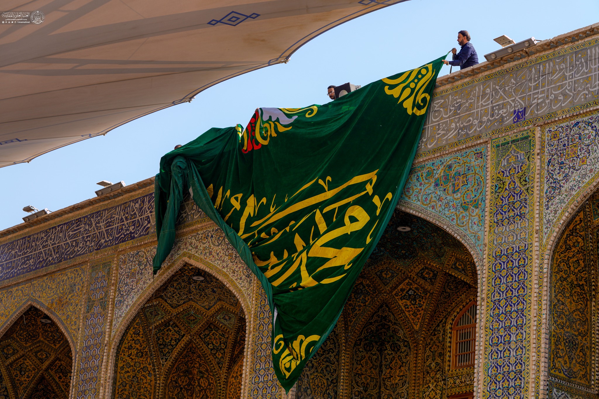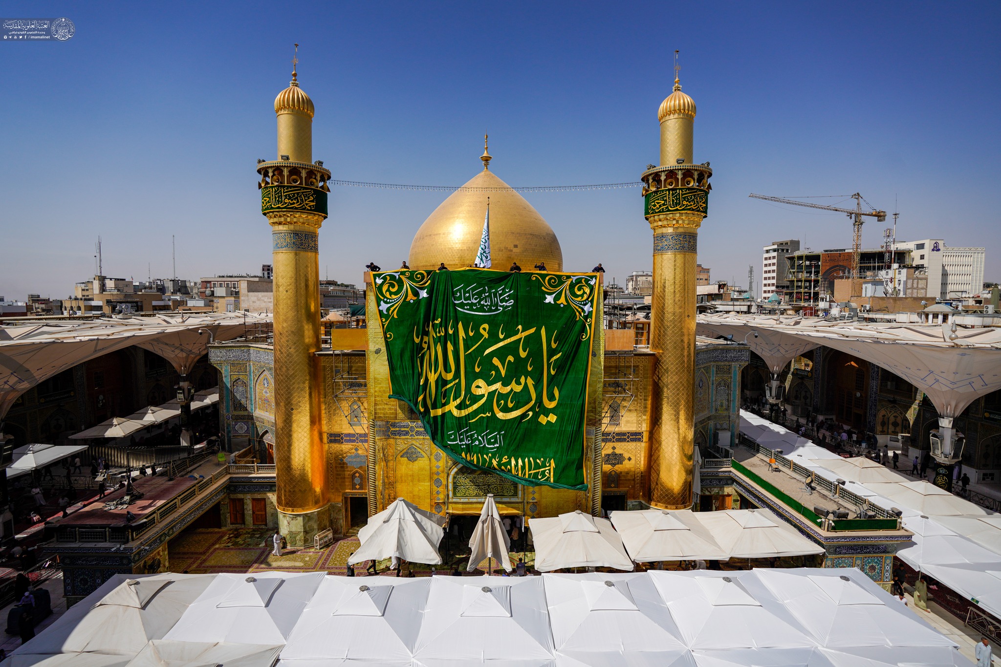 On auspicious birth anniversary of Prophet Muhammad (A) the holy shrine of Amir Al-Mu'minin Ali ibn Abi Talib decorated with green banners and flowers.