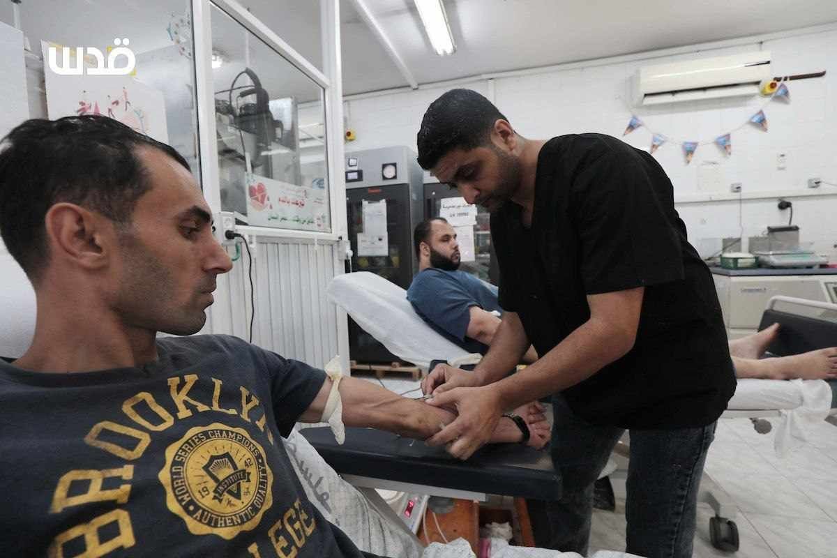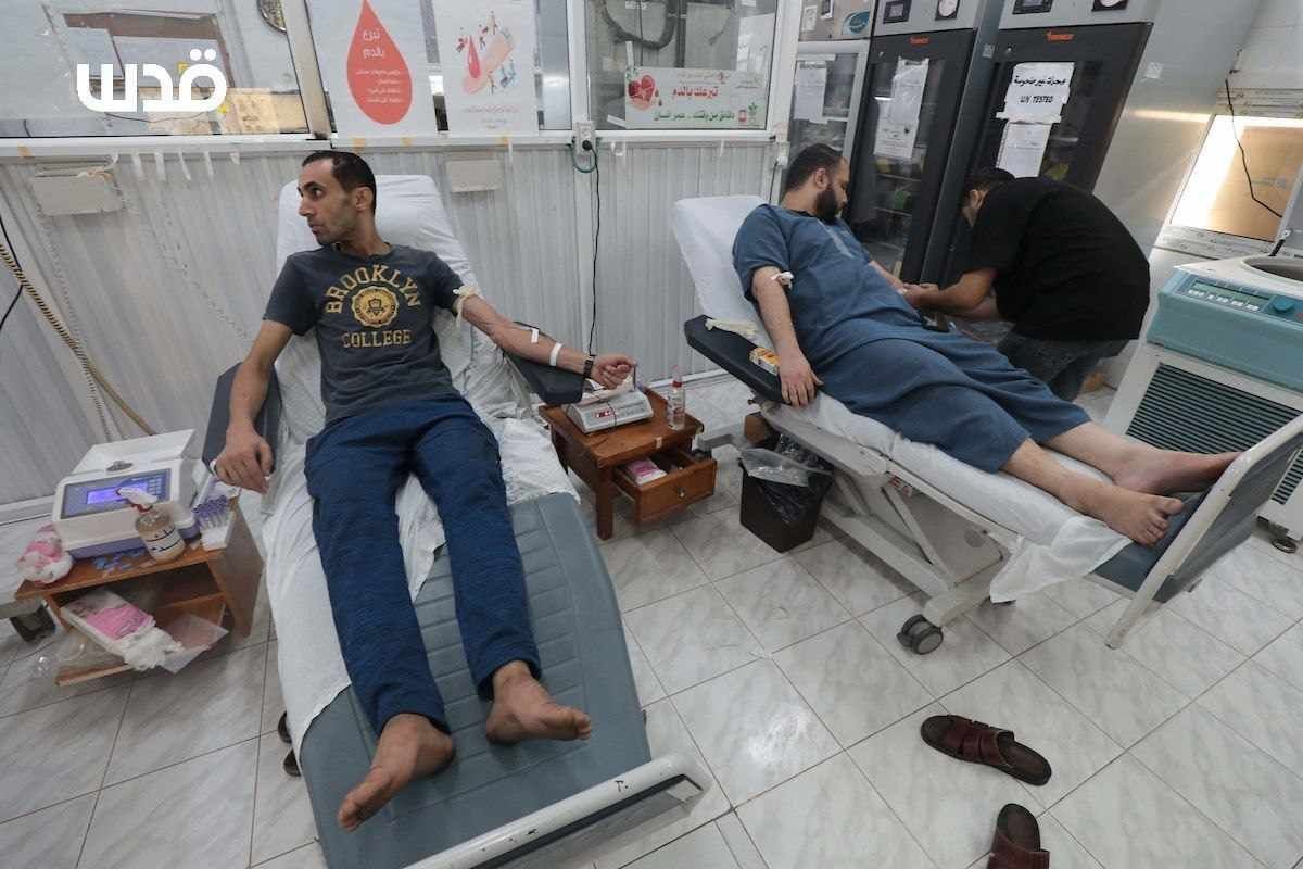 In the light of the occupation’s continued bombing of Gaza Strip, a blood donation campaign at Al-Aqsa Hospital in Gaza.