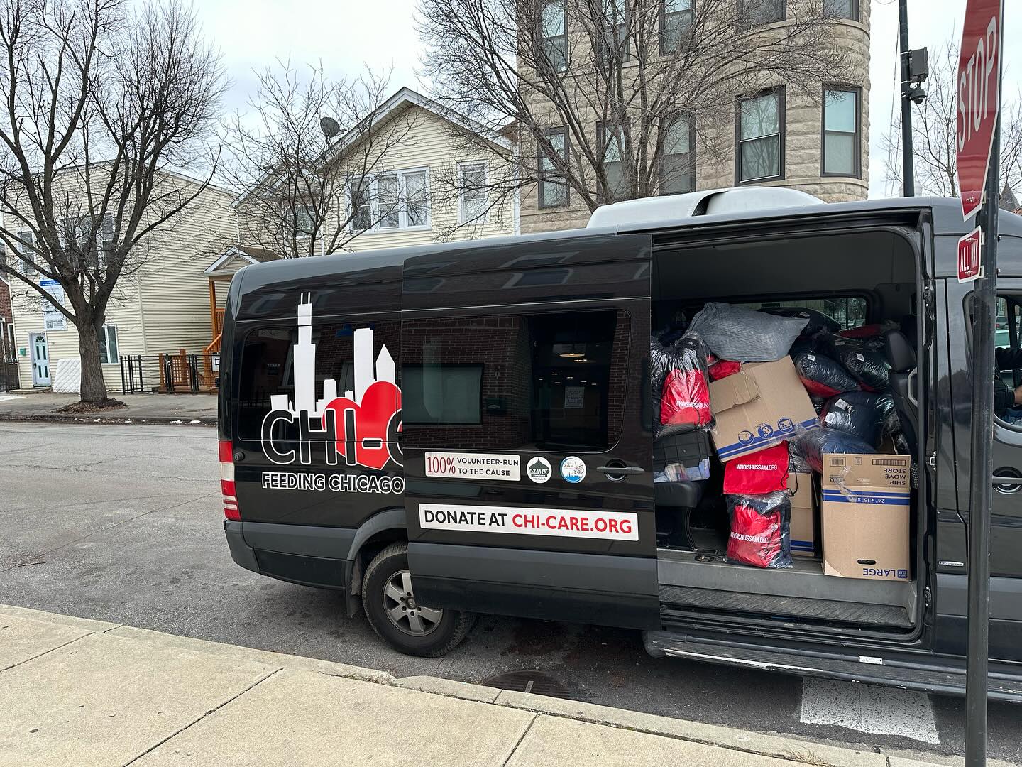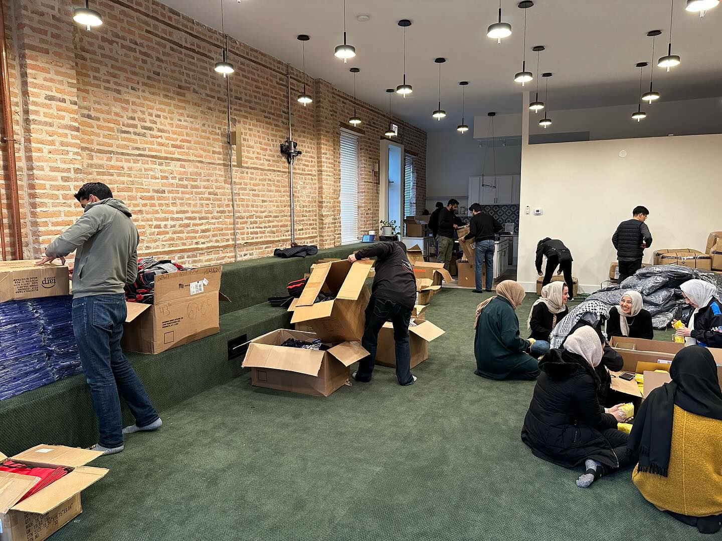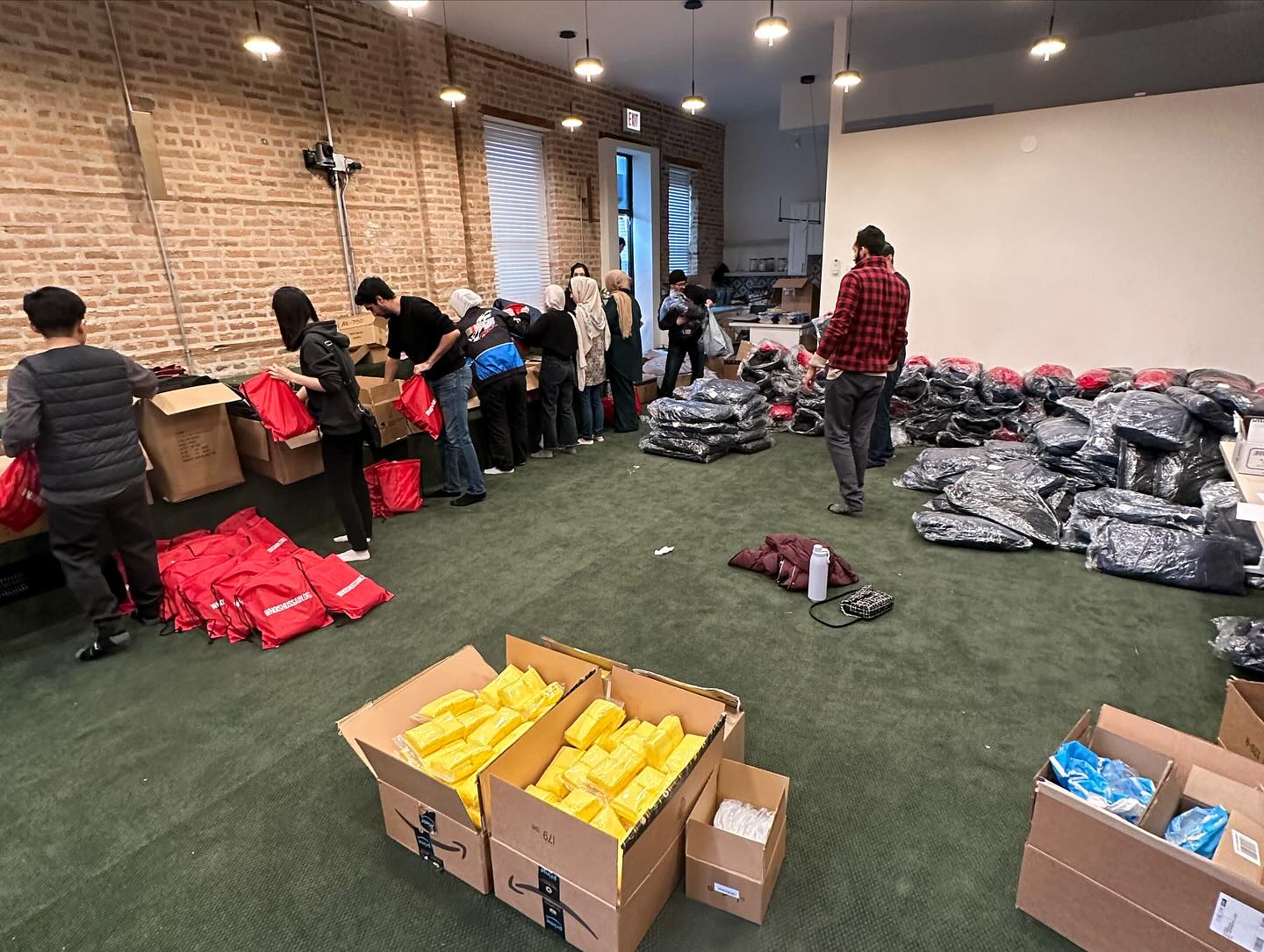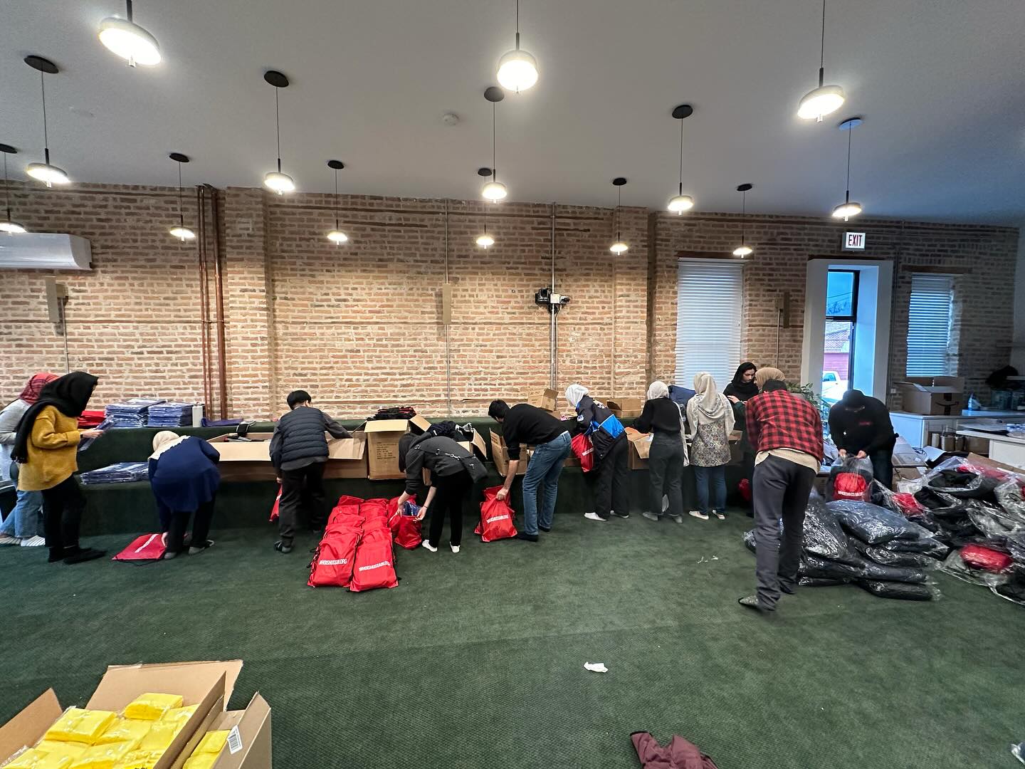 "Who is Hussain" volunteers in Chicago to distribute 150 winter care packages including gloves, hygiene supplies and more for among local homeless shelters in Chicago