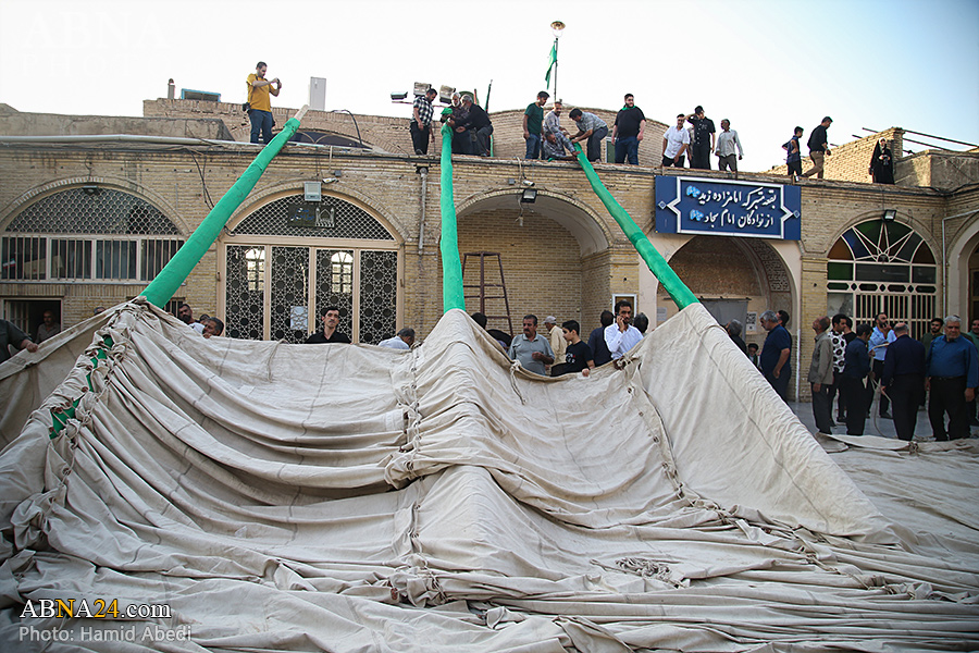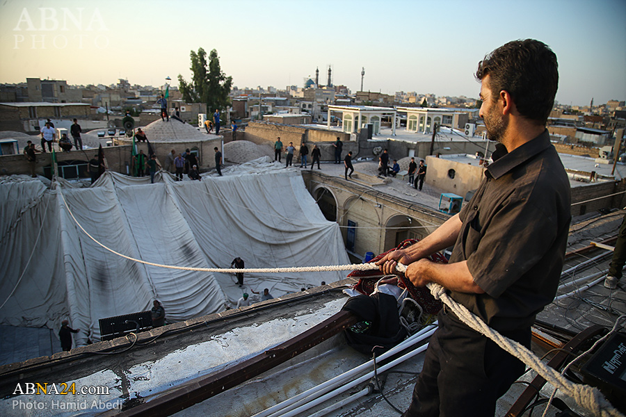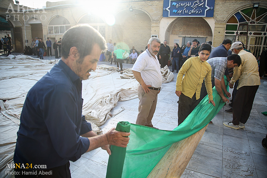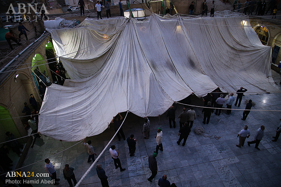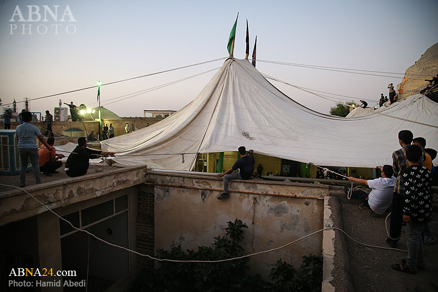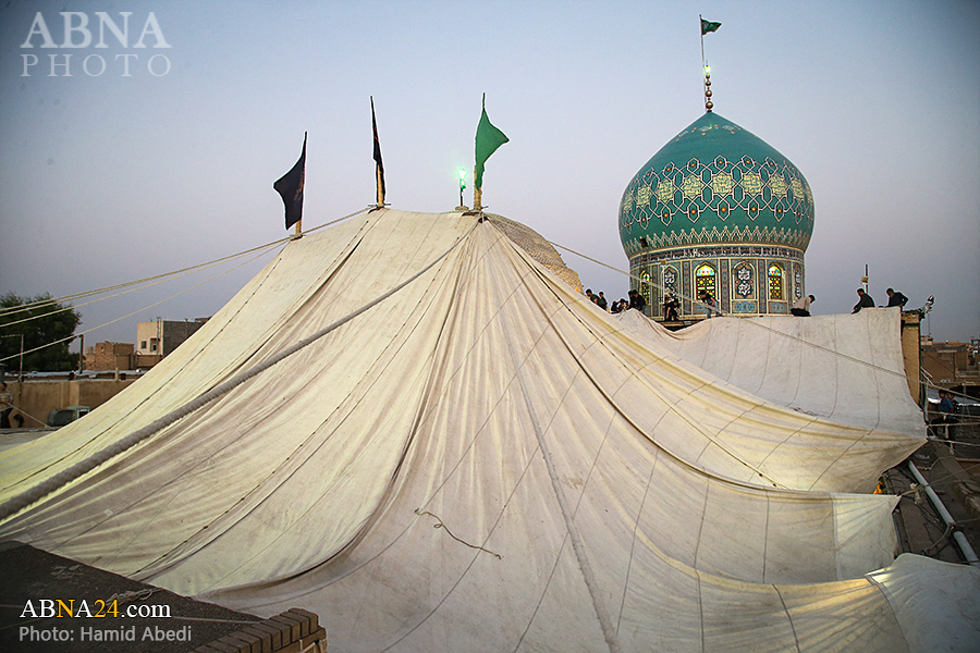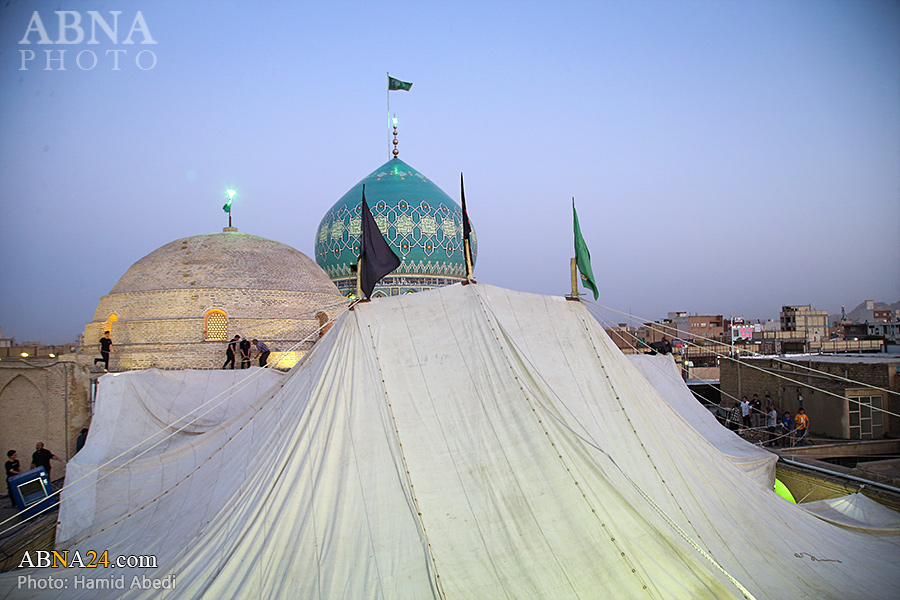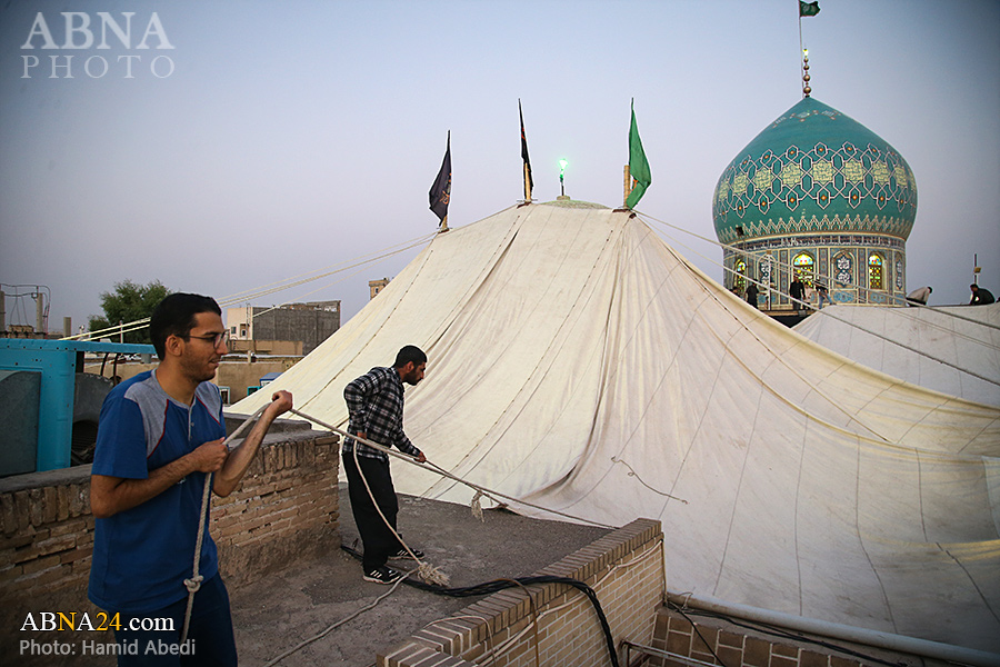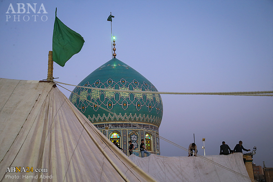 AhlulBayt News Agency (ABNA): As the month of Muharram is approaching, a tent for holding mourning processions marking the martyrdom anniversary of Imam Hussein (AS) was set up the at Imamzadeh Musa al-Mubarqa holy shrine in Qom, Iran.