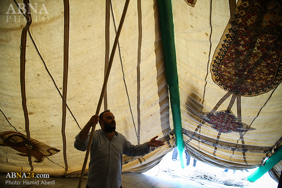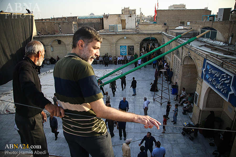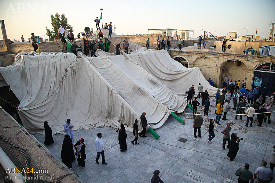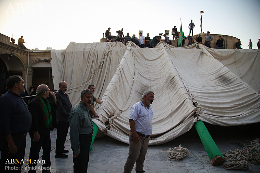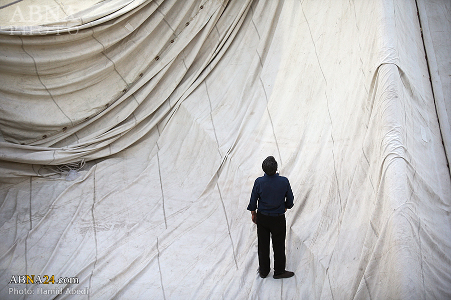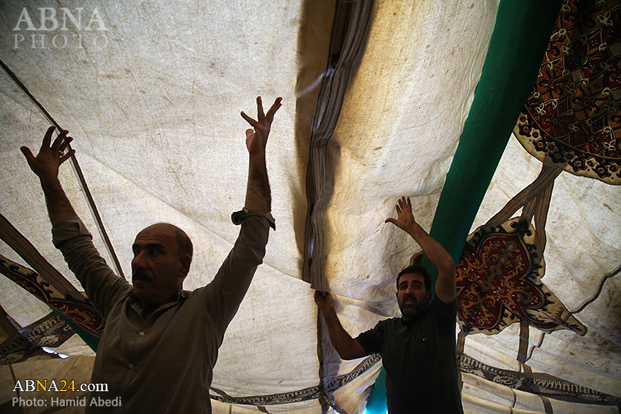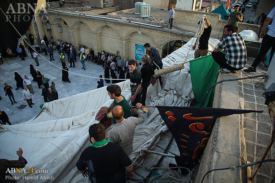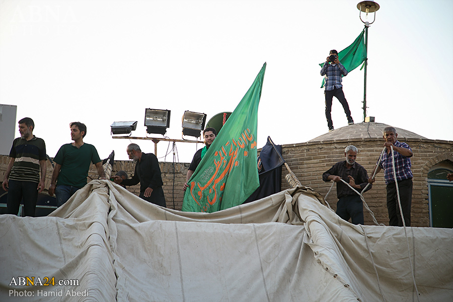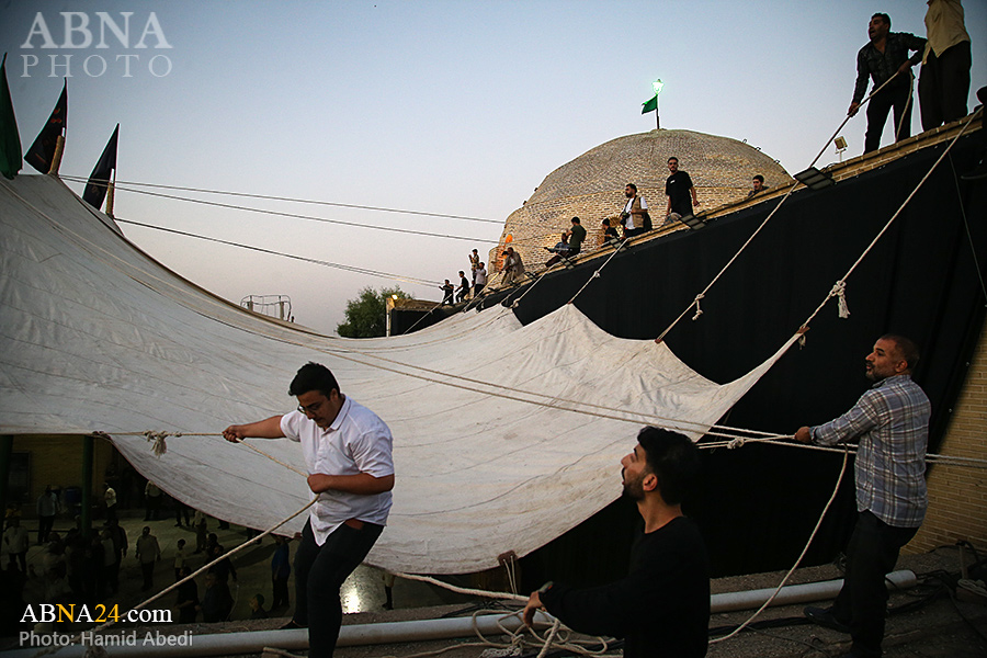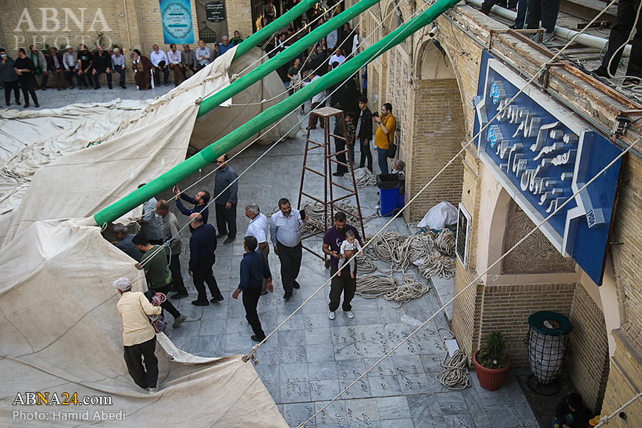 AhlulBayt News Agency (ABNA): As the month of Muharram is approaching, a tent for holding mourning processions marking the martyrdom anniversary of Imam Hussein (AS) was set up the at Imamzadeh Musa al-Mubarqa holy shrine in Qom, Iran.