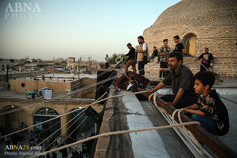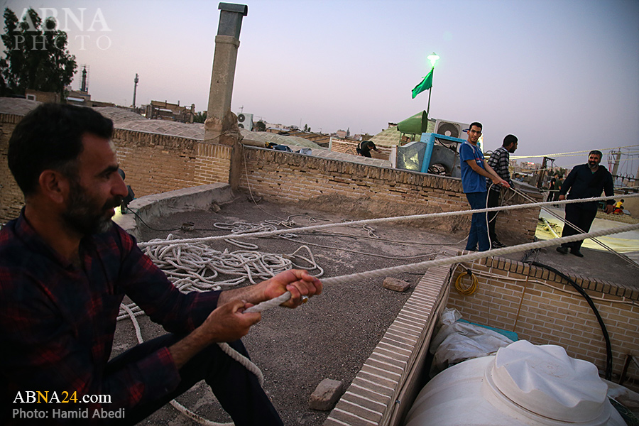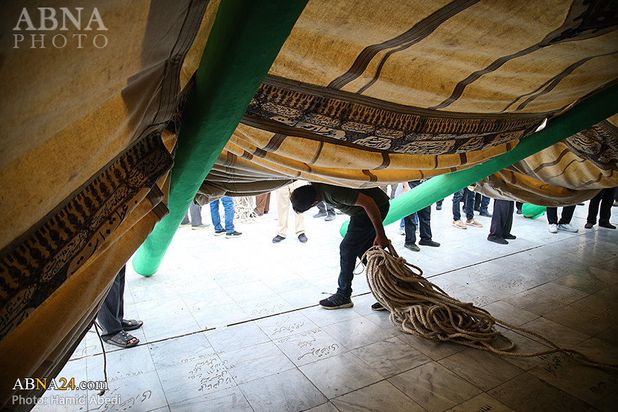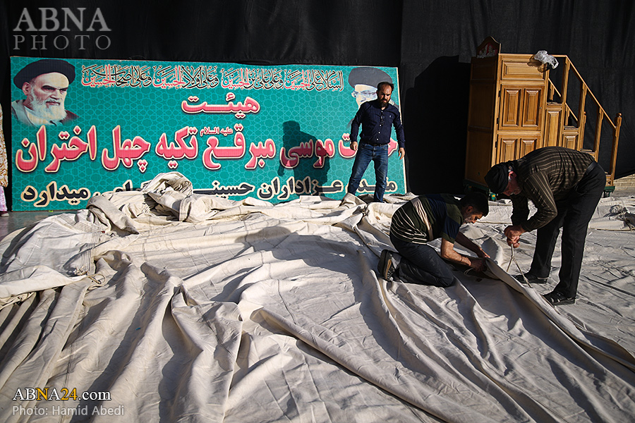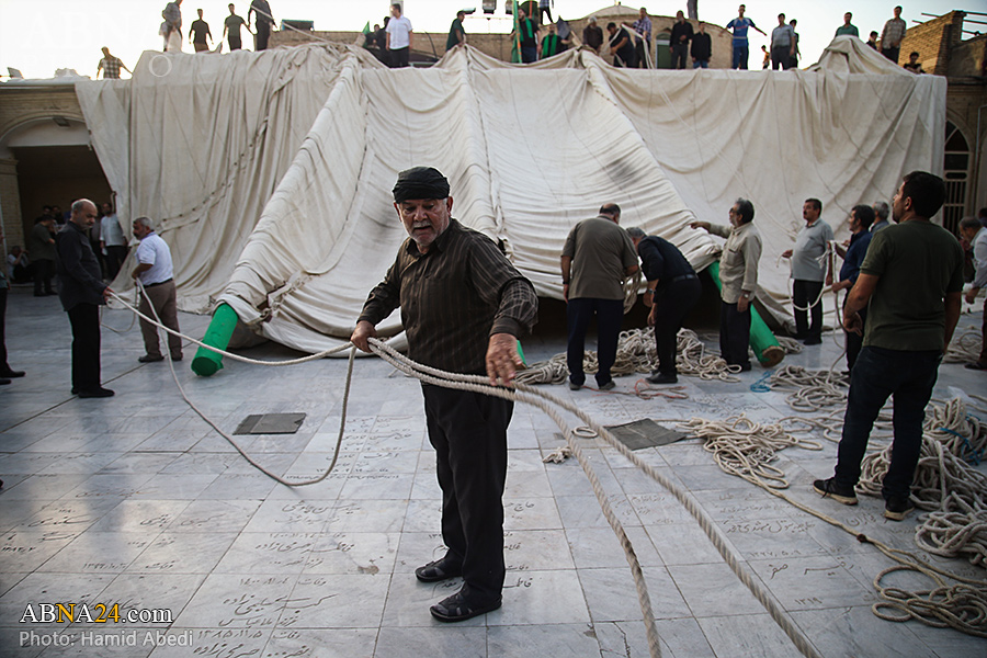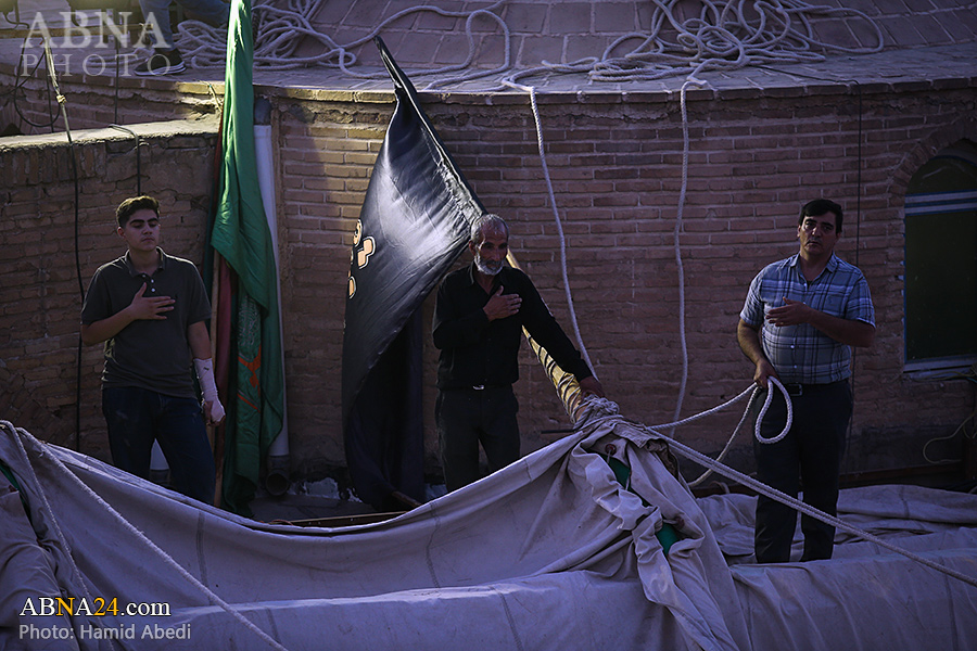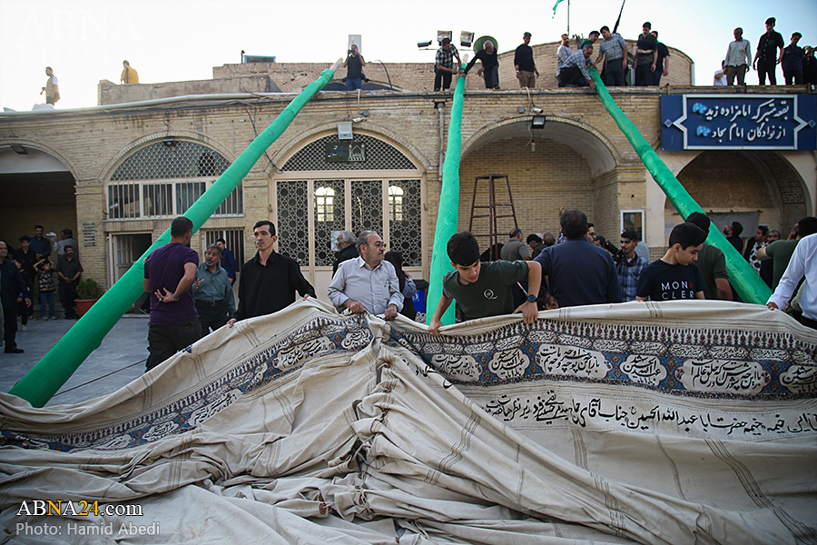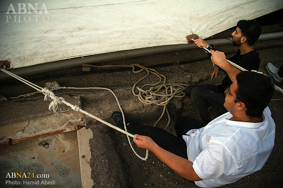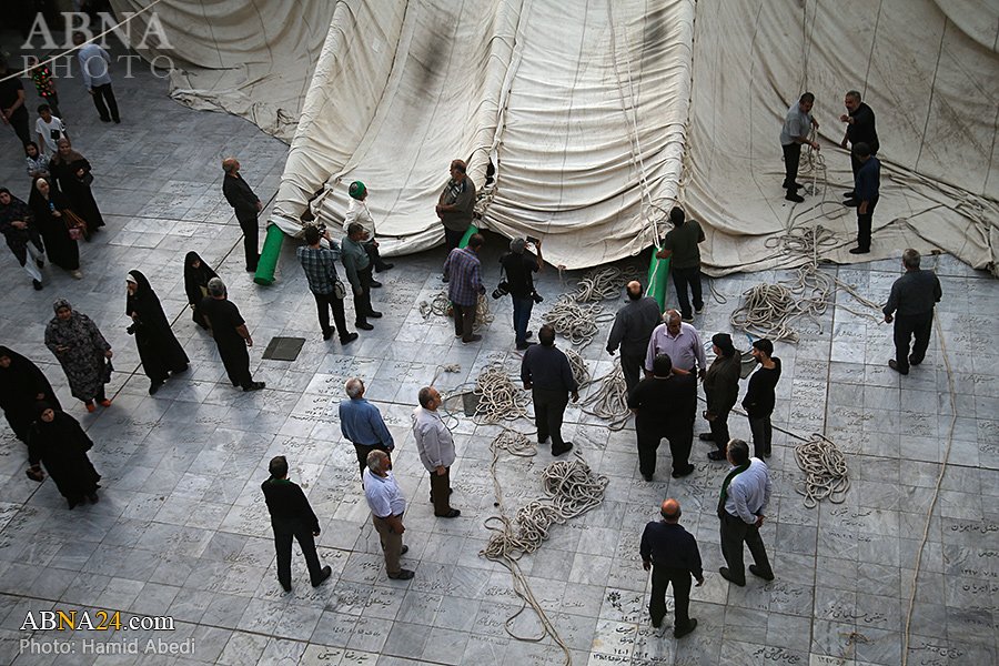AhlulBayt News Agency (ABNA): As the month of Muharram is approaching, a tent for holding mourning processions marking the martyrdom anniversary of Imam Hussein (AS) was set up the at Imamzadeh Musa al-Mubarqa holy shrine in Qom, Iran.