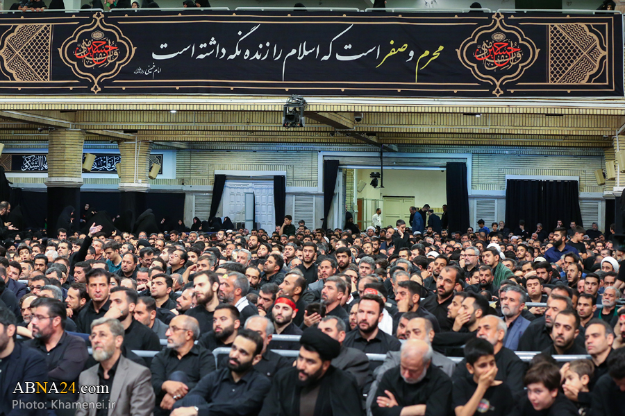 AhlulBayt News Agency (ABNA): The Leader of the Islamic Revolution, Ayatollah Khamenei, attended the first night of mourning ceremonies for the Master of Martyrs, Imam Hussain (pbuh) and his faithful companions, on July 12, 2024, which was held in the Hussainiyah of Imam Khomeini. These ceremonies will be held for six consecutive nights from the night of the seventh to the twelfth of the month of Muharram.