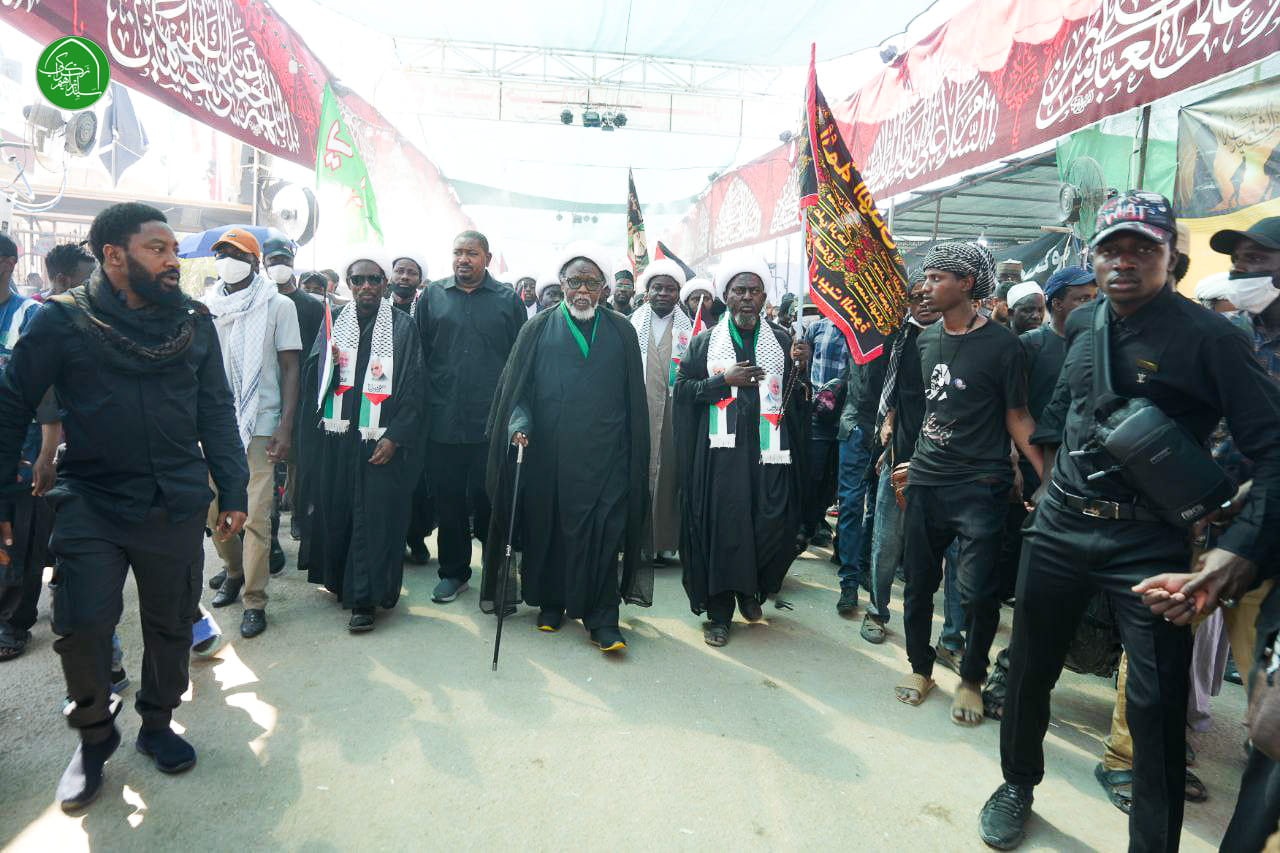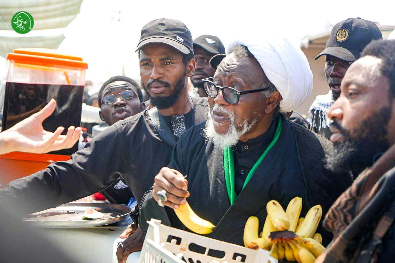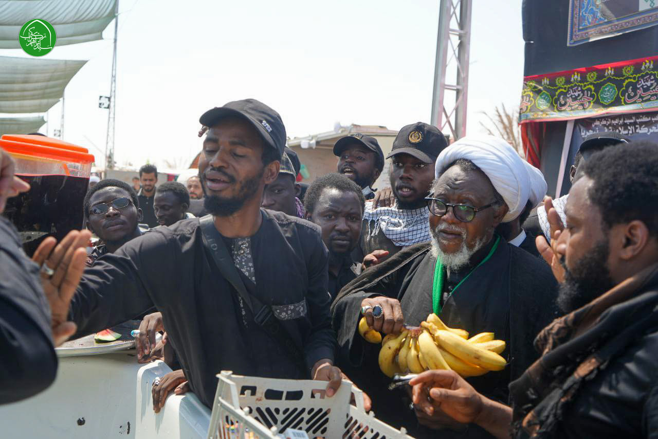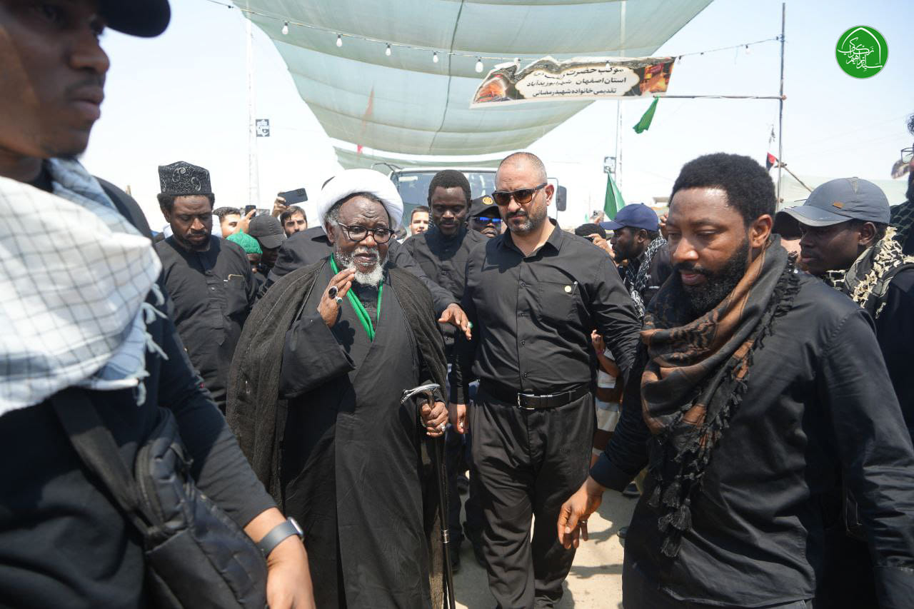 Sheikh Ibraheem Zakzaky joined the Arbaeen walking towards the holy city of Karbala, this morning. He address the group of pilgrims and proceeded visited the Mawkib of his office at (pole No. 1117) where he served the passing pilgrims. 22nd August 2024-1446