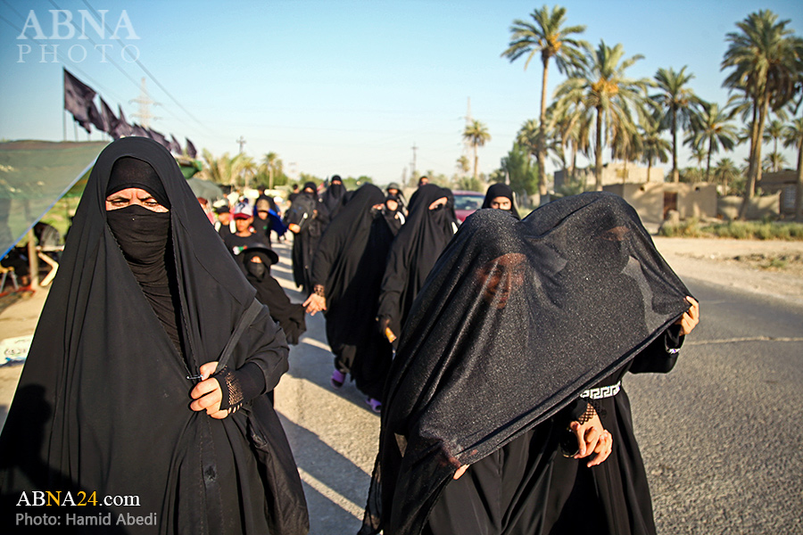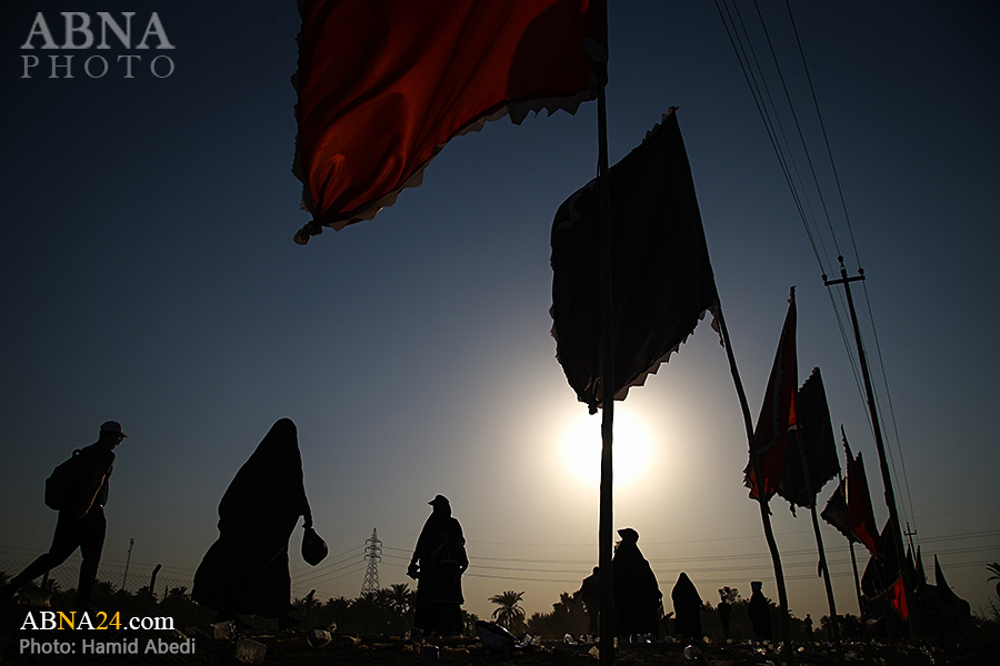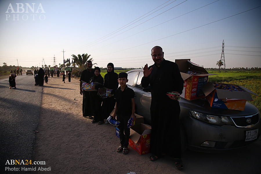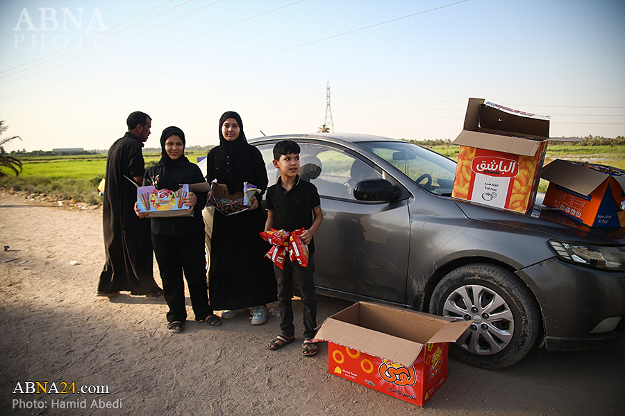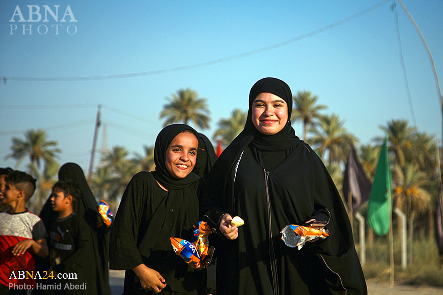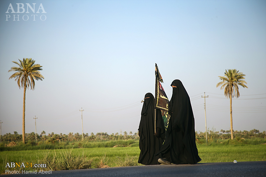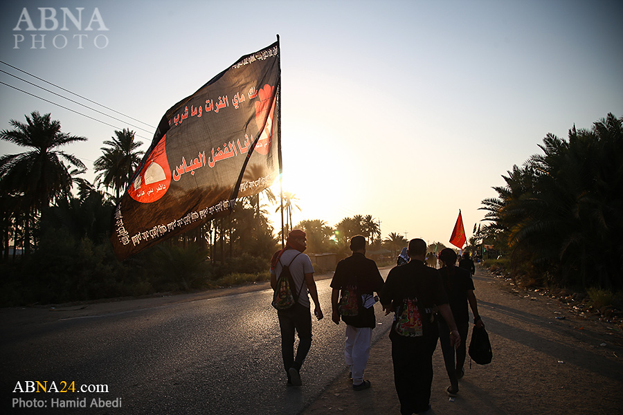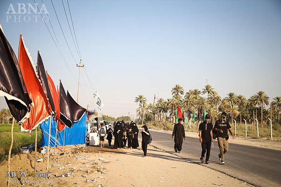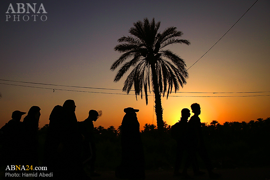 AhlulBayt News Agency (ABNA): Arbaeen pilgrims on their way to Karbala, after passing through the Shamiya route on the edge of the paddy fields of Salahiyah area of Al Diwaniyah, continue their route to go to the city of Kufa and then to Karbala.