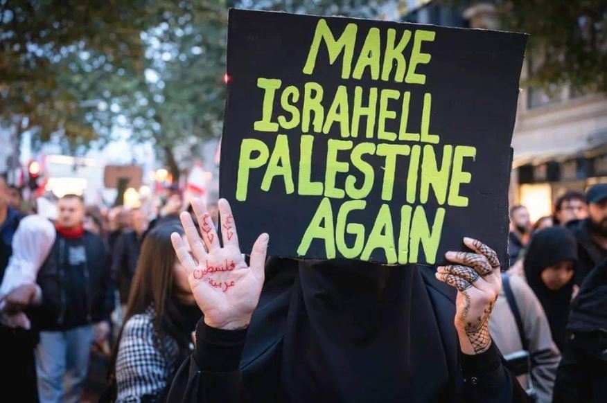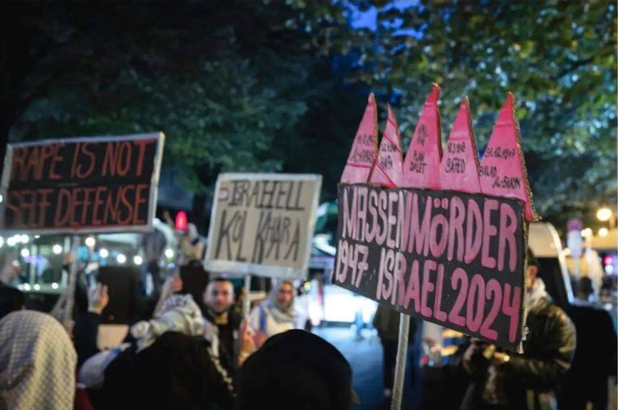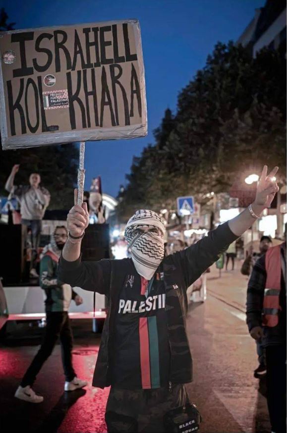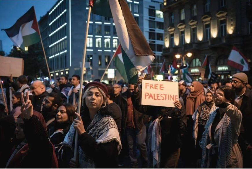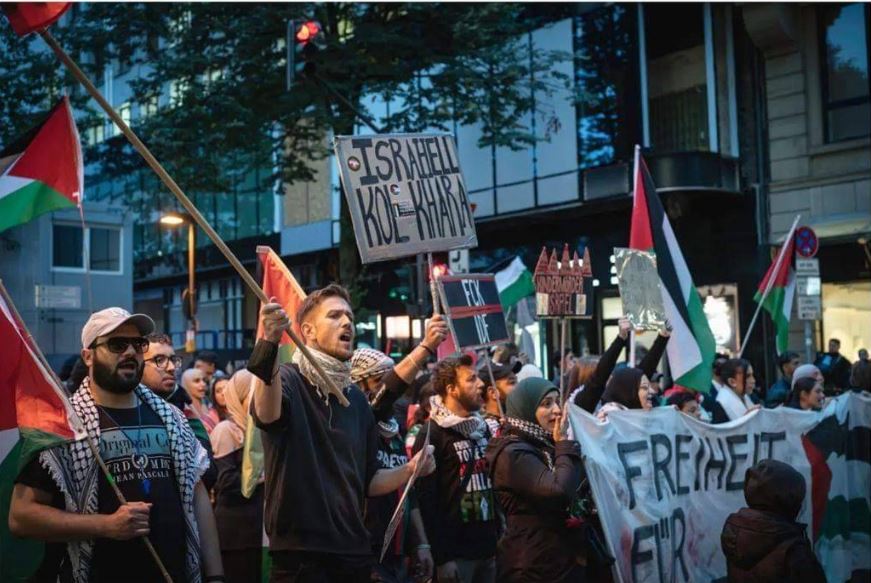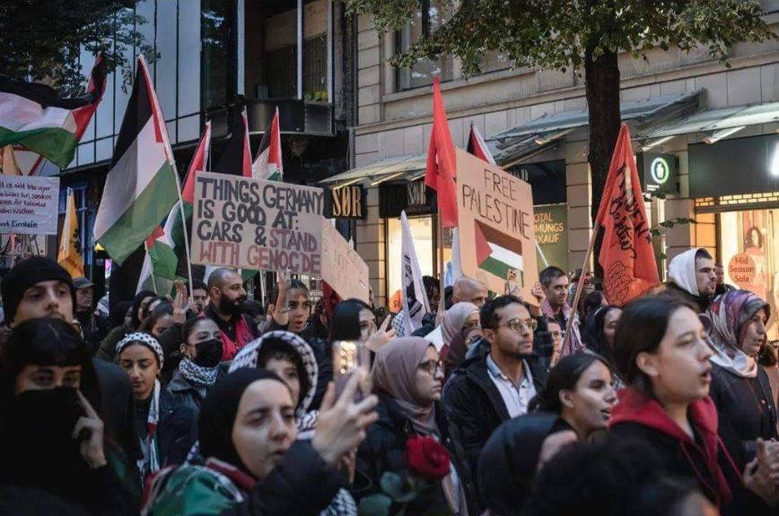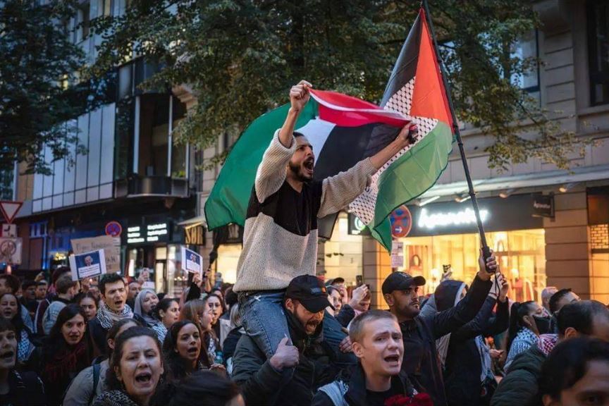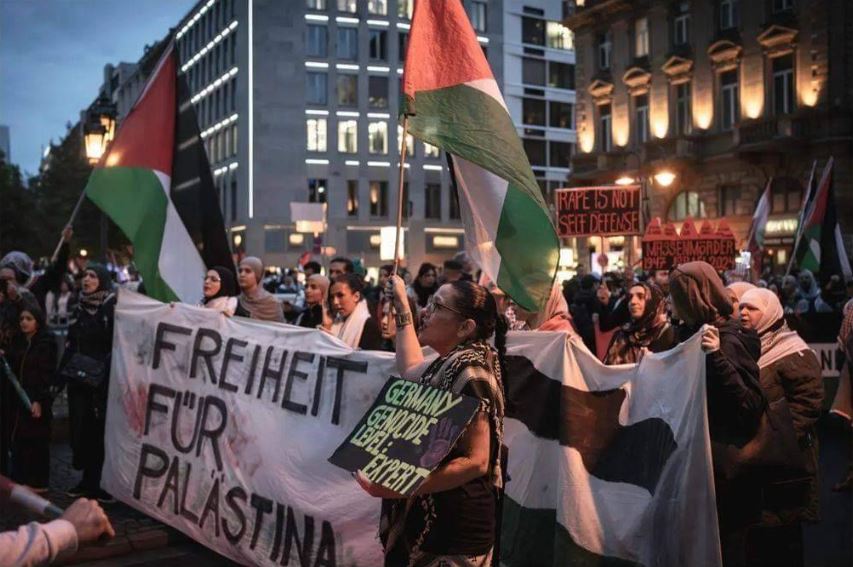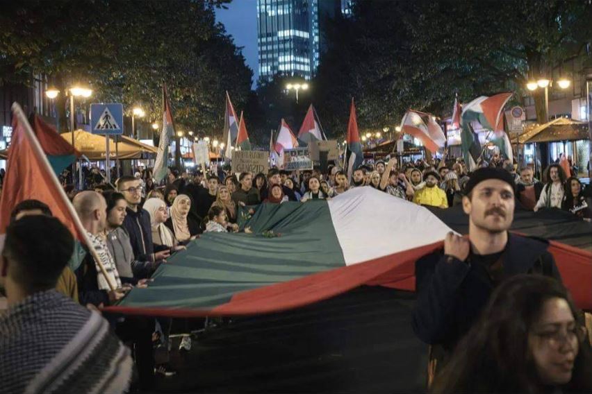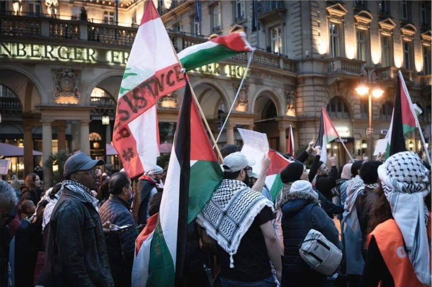 Dozens of protesters in Frankfurt, Germany march in solidarity with Palestine and Lebanon