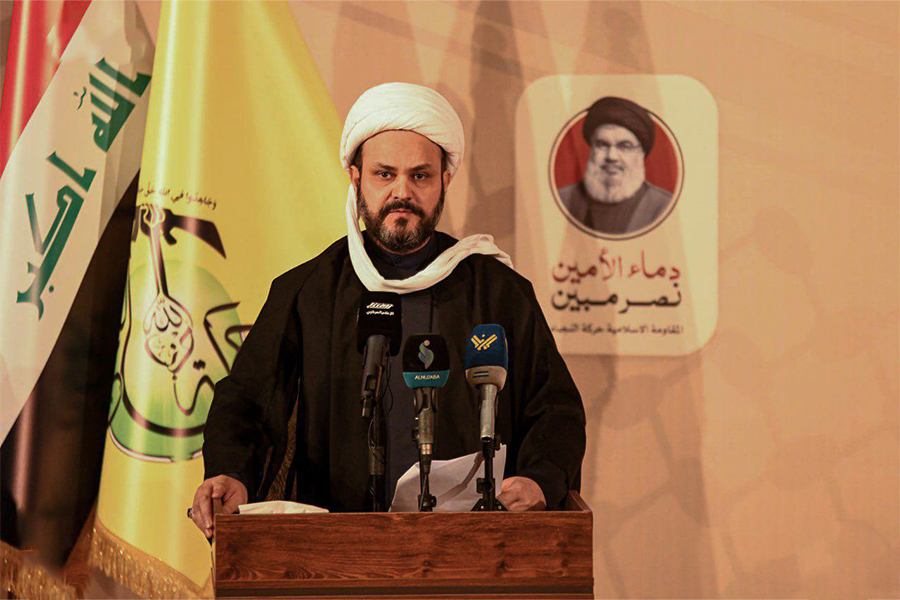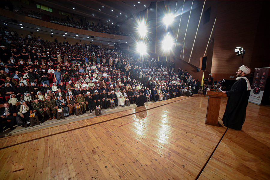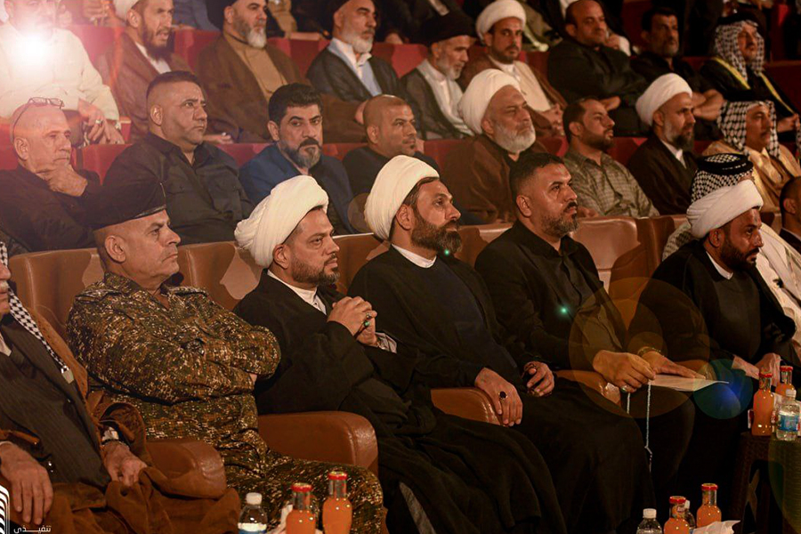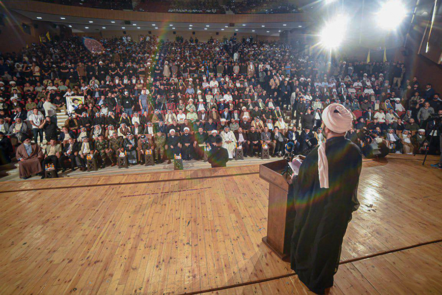 AhlulBayt News Agency (ABNA): The Islamic Resistance of Najaf Iraq held its first annual conference in the holy city of Najaf. This ceremony was devoted to the honor of Martyr Sayed Hassan Nasrallah. Sheikh Akram Al-Kaabi, Secretary General of the Iraqi Nujaba Movement, was the main speaker who explained the latest positions of the Iraqi Islamic resistance.