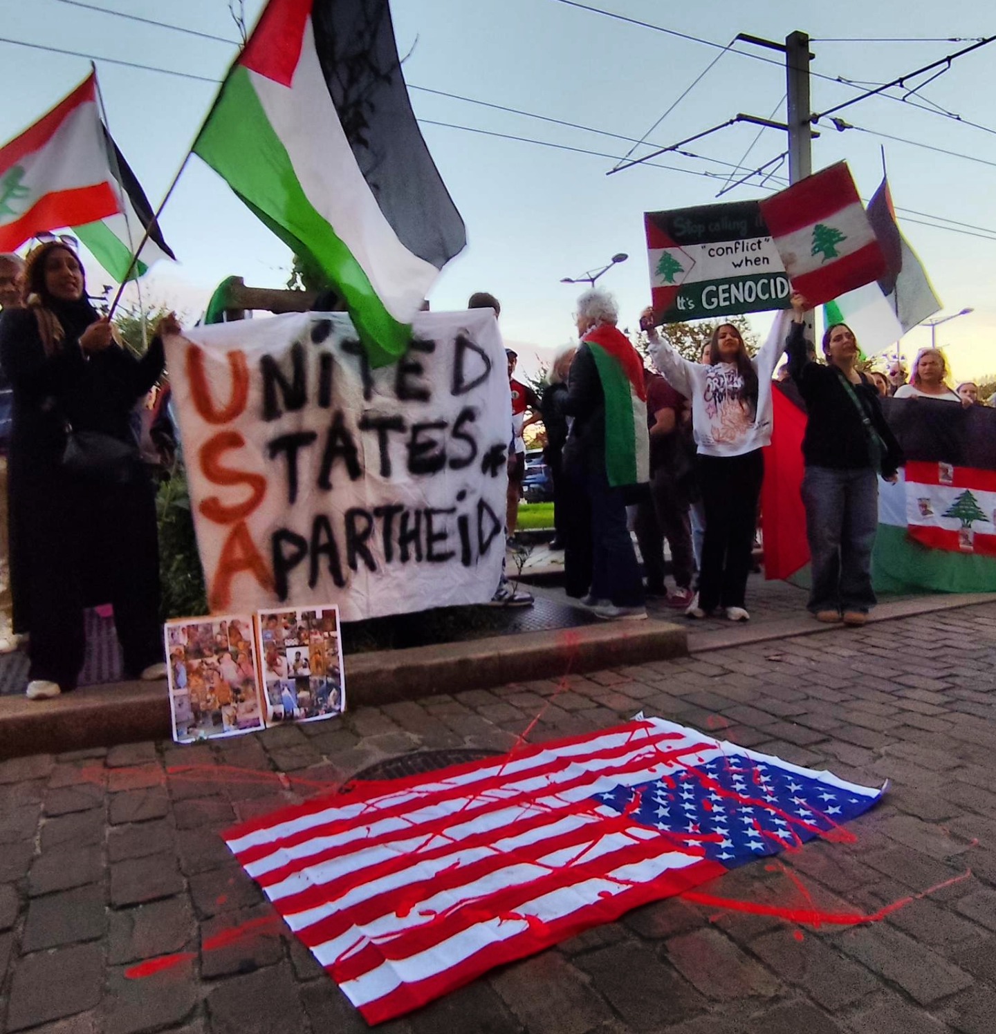 Protesters gathered in front of US consulate in Bordeaux, France to condemn US support and arms delivery to Israeli regime in genocide of Gaza and Lebanon