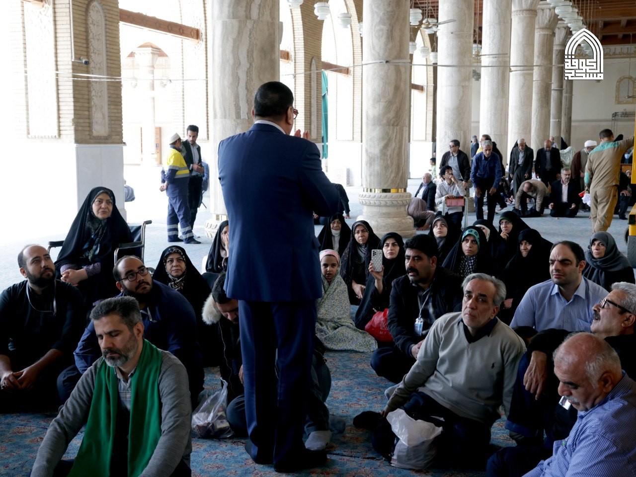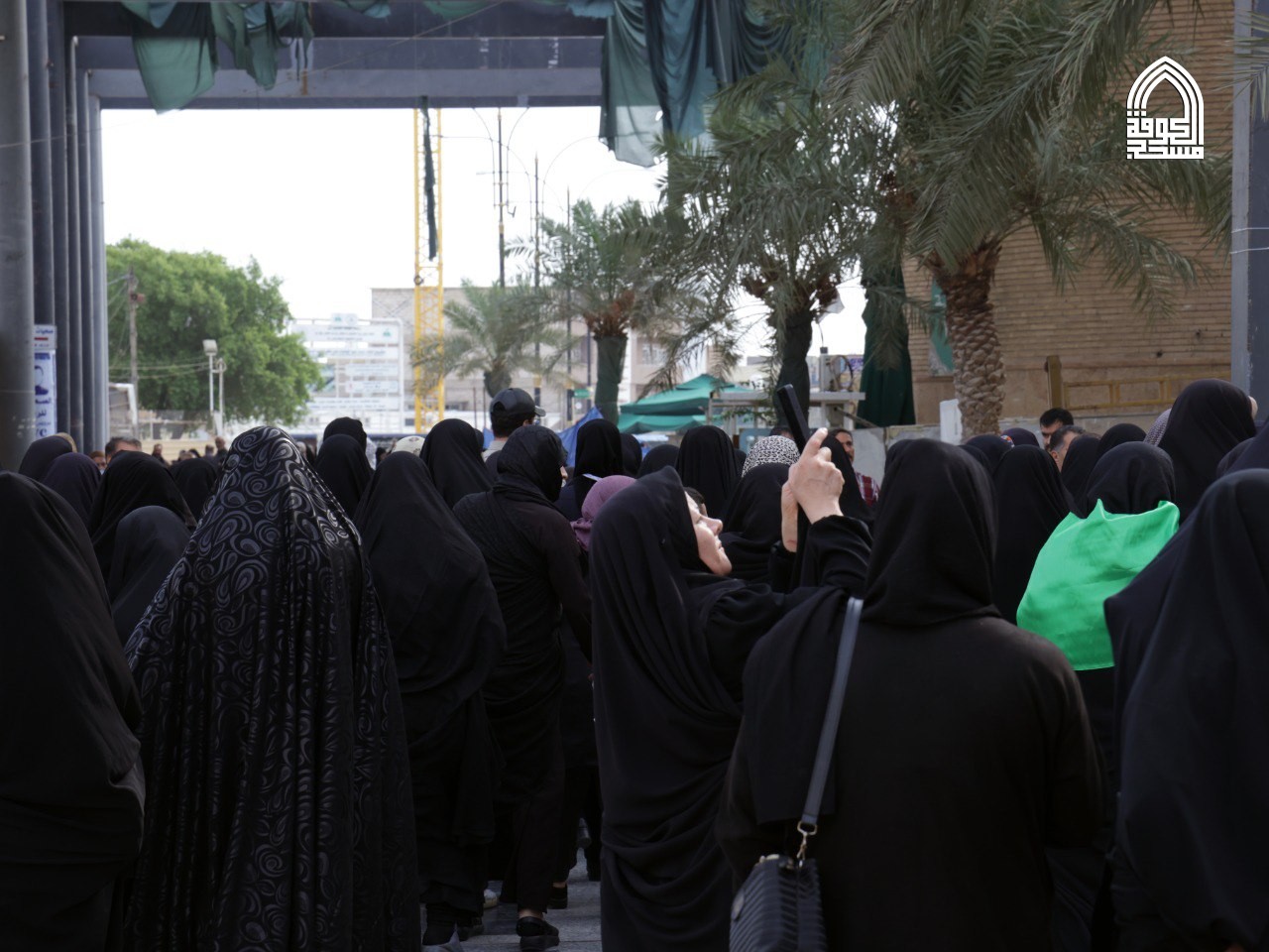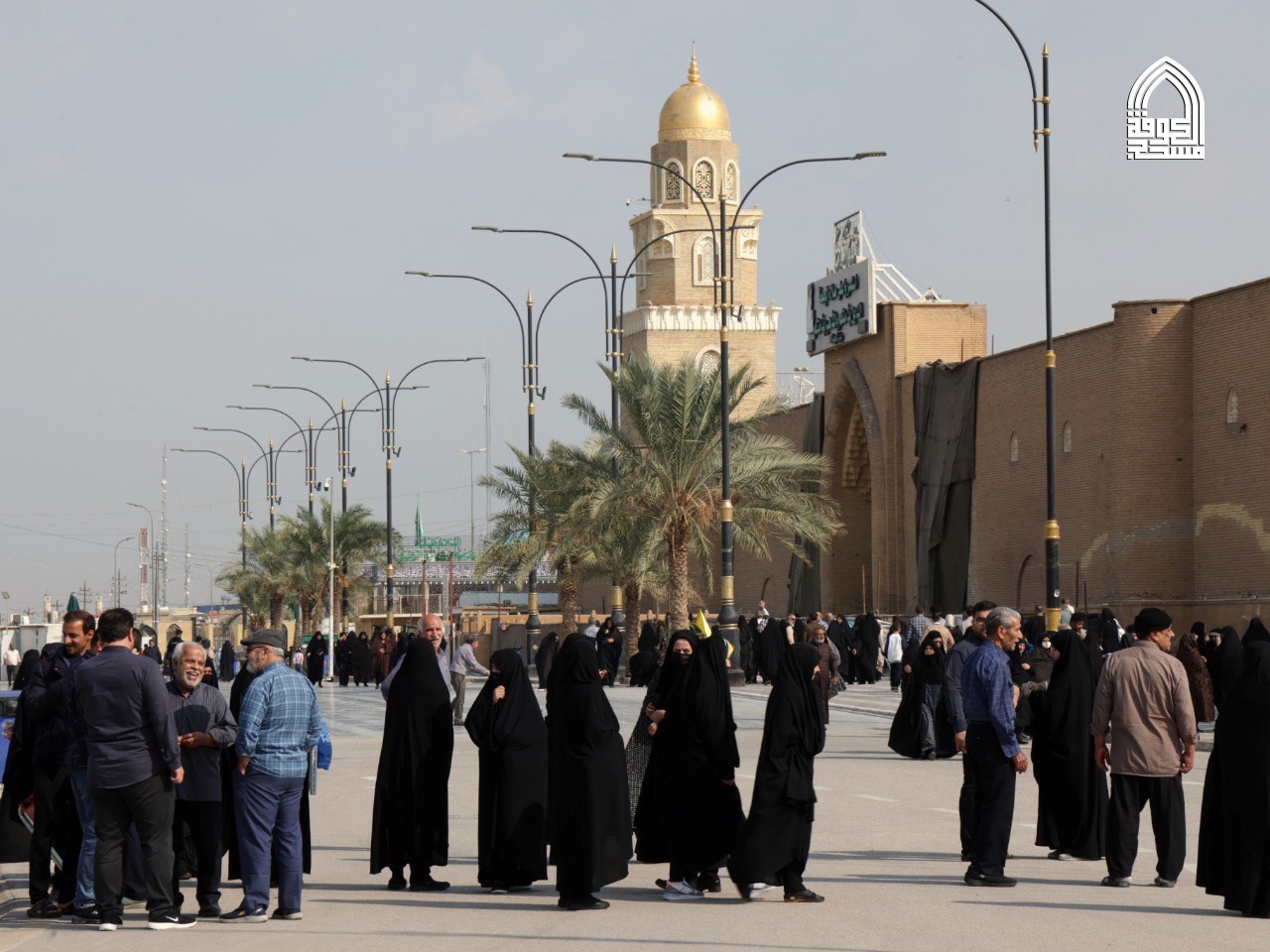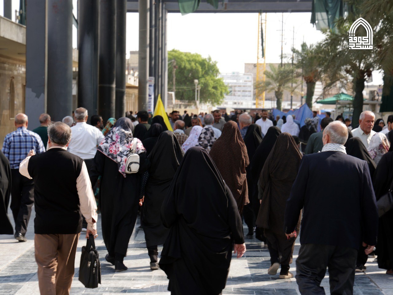 Crowd of visitors at Kufa grand Mosque and visiting the graves of saint of Allah