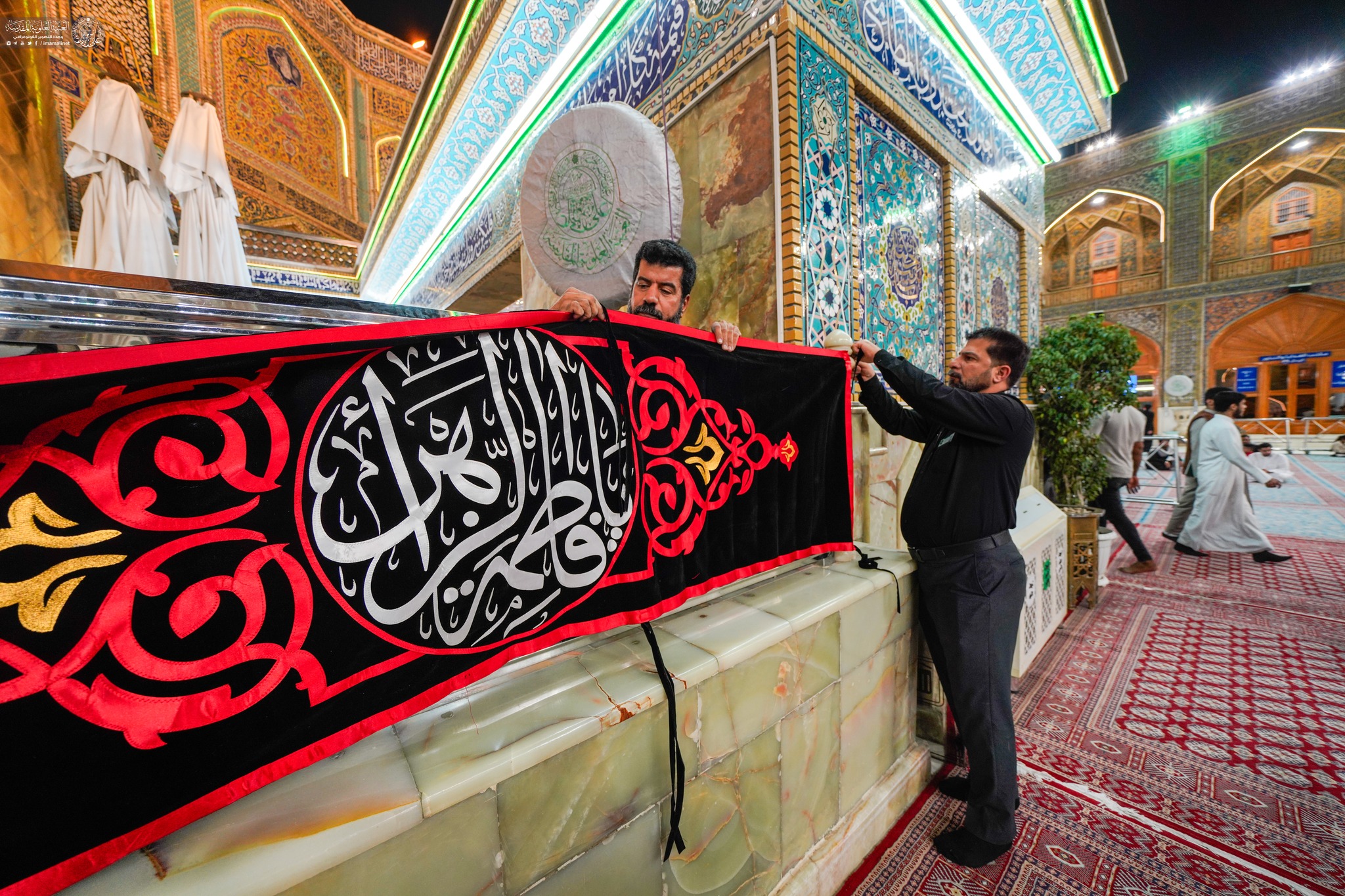 Imam Ali holy shrine covered in black on martyrdom of Sayyida Fatima Al-Zahra