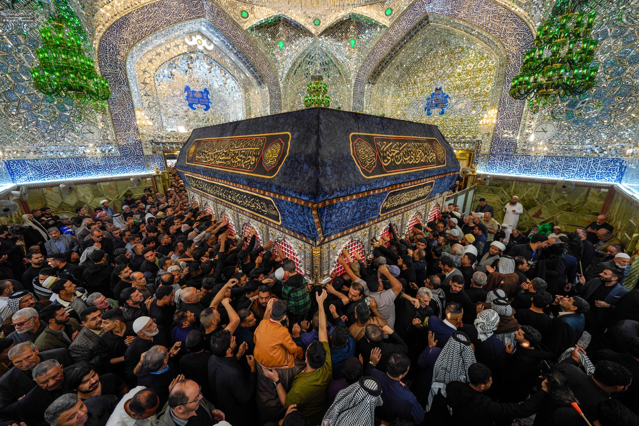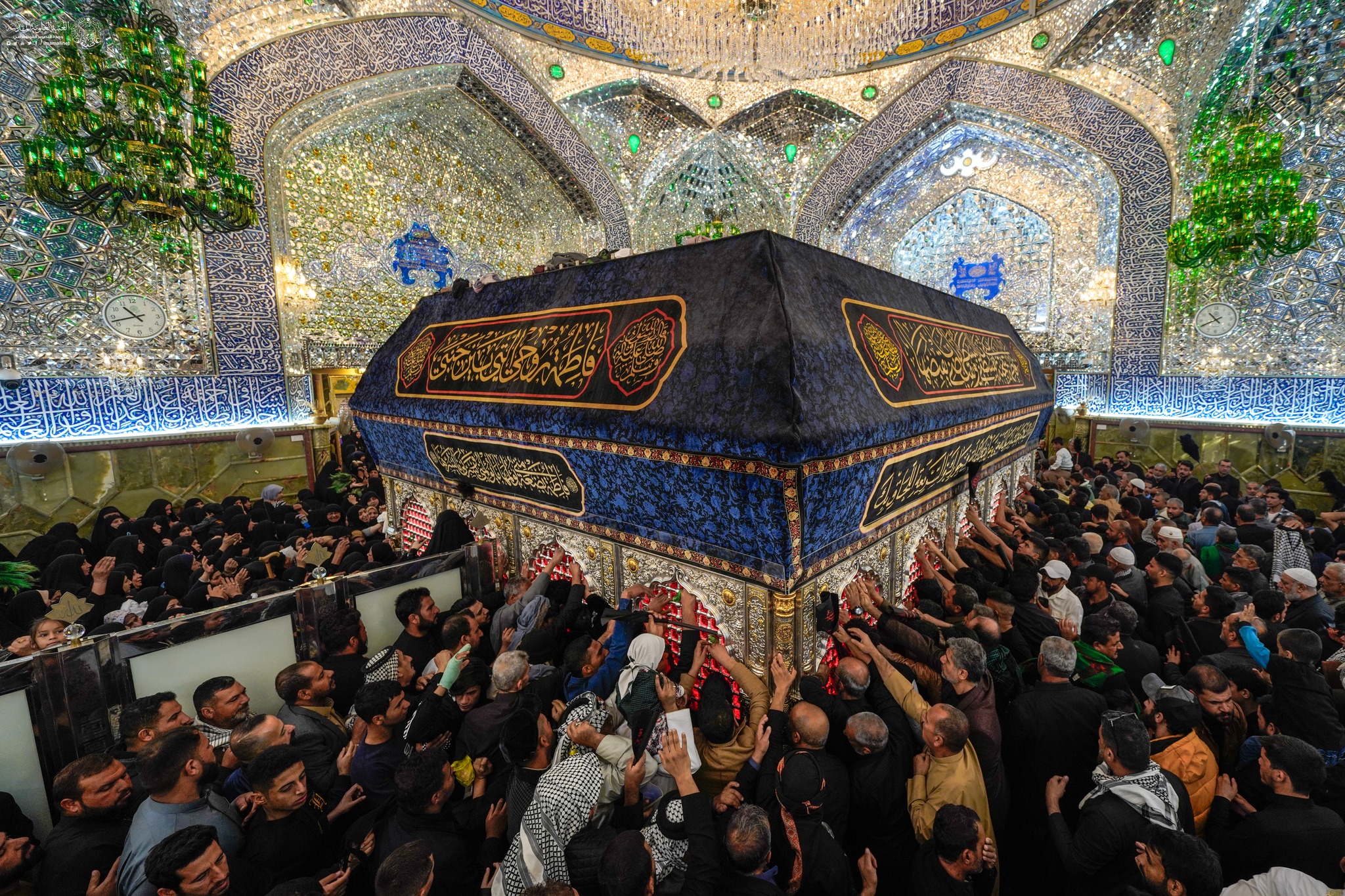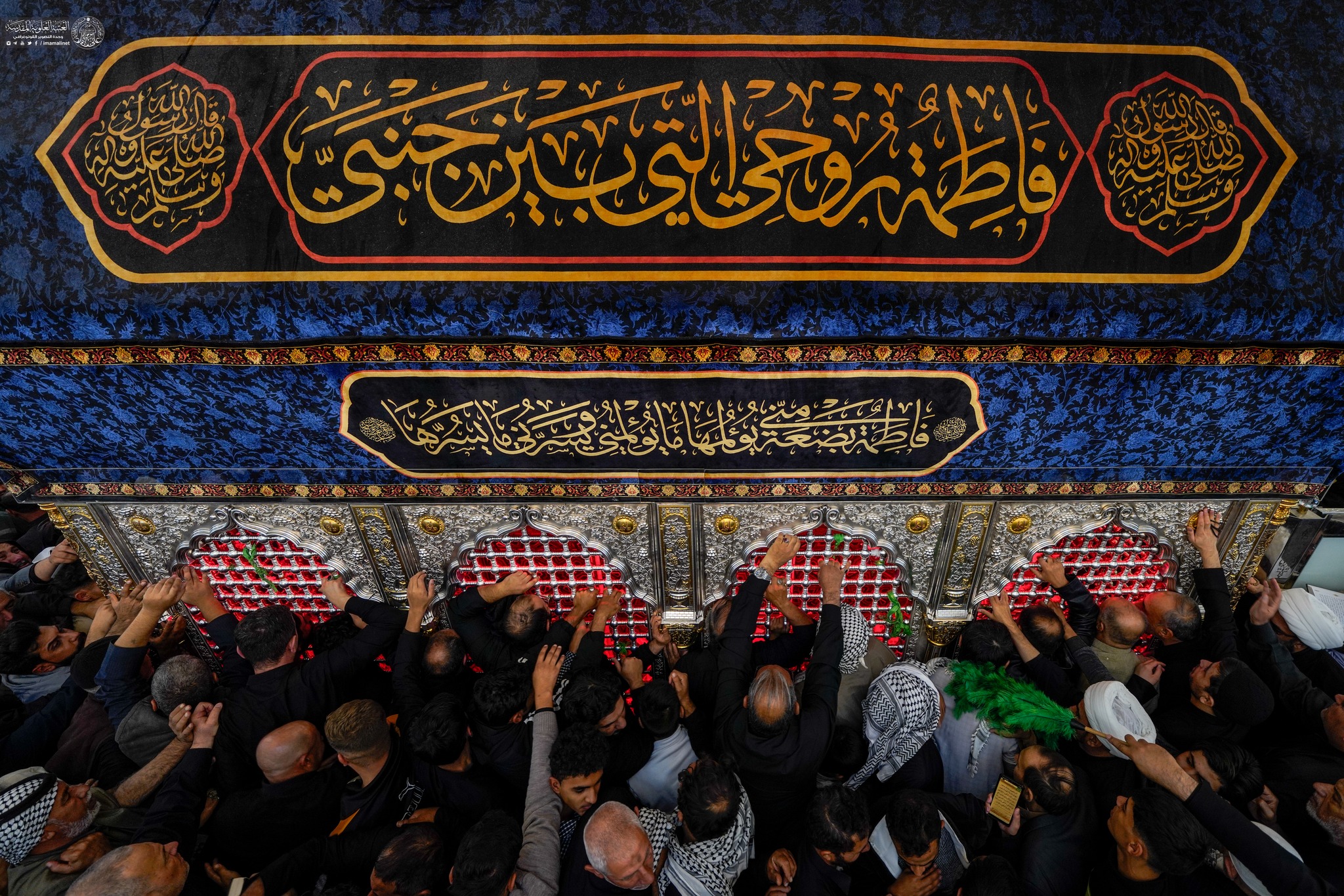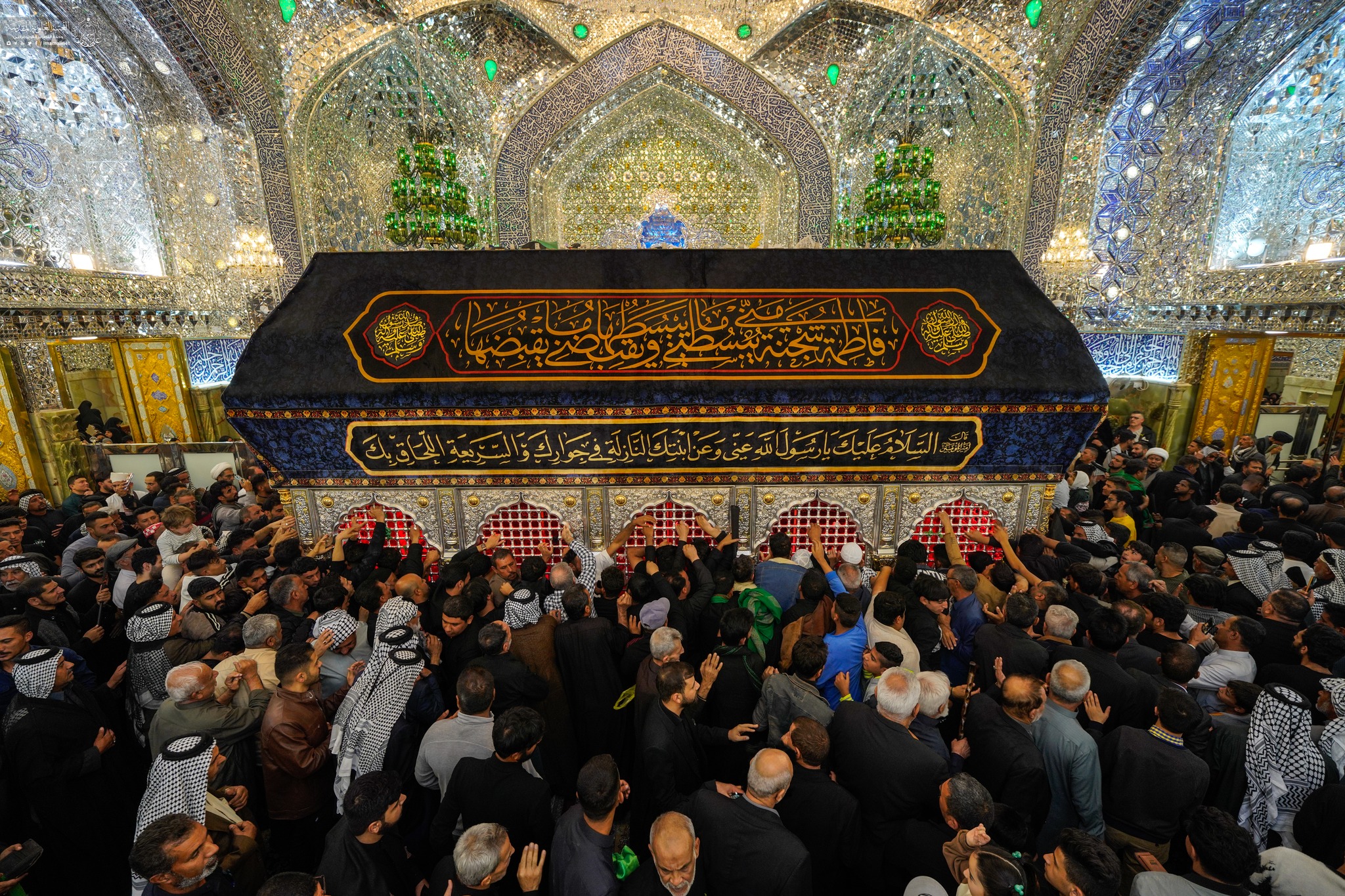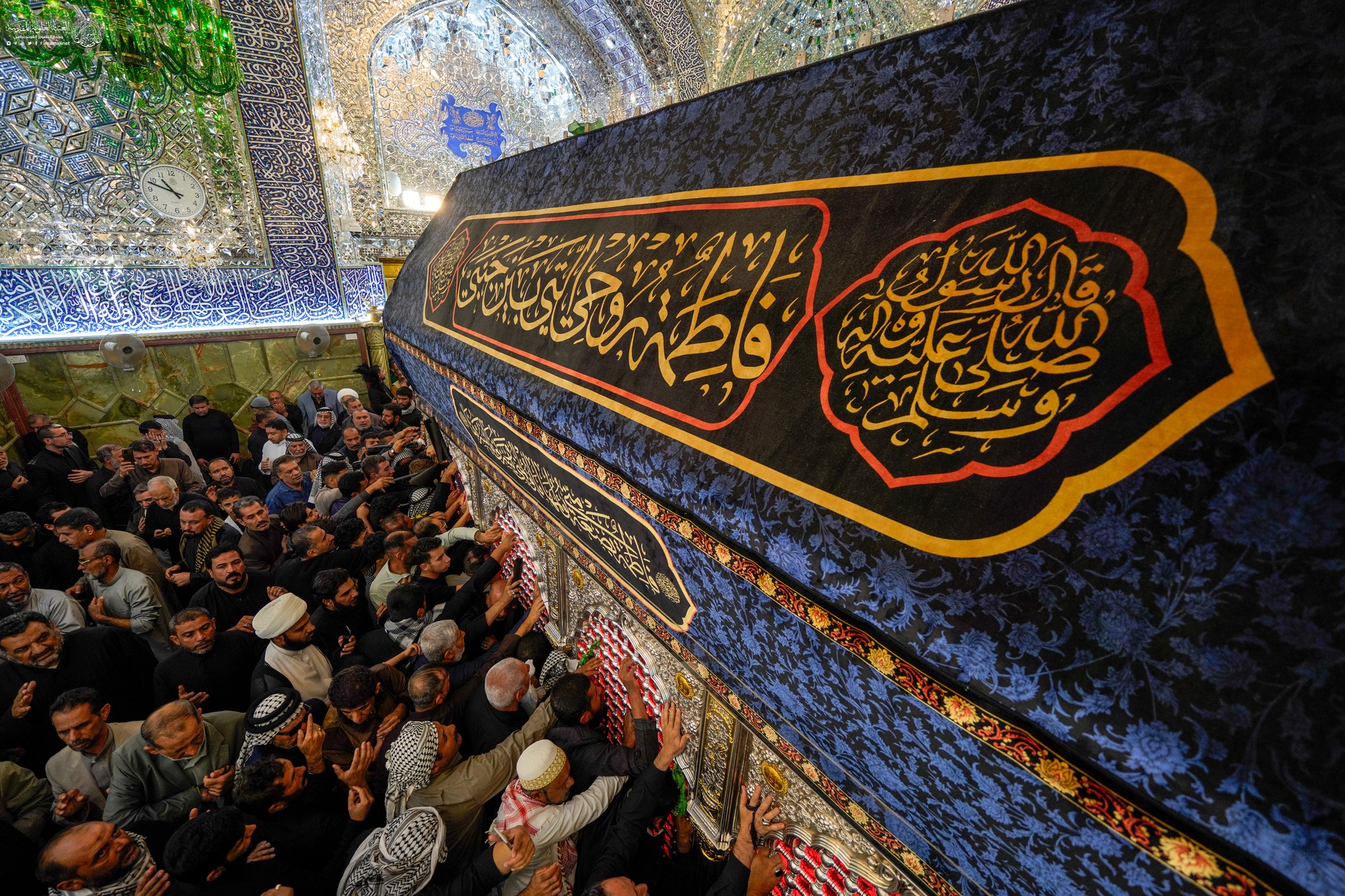 The crowd of Ahlul Bayt lovers next to the holy grids of Imam Ali on martyrdom anniversary of Lady fatima Al-Zahra (Peace be upon them)