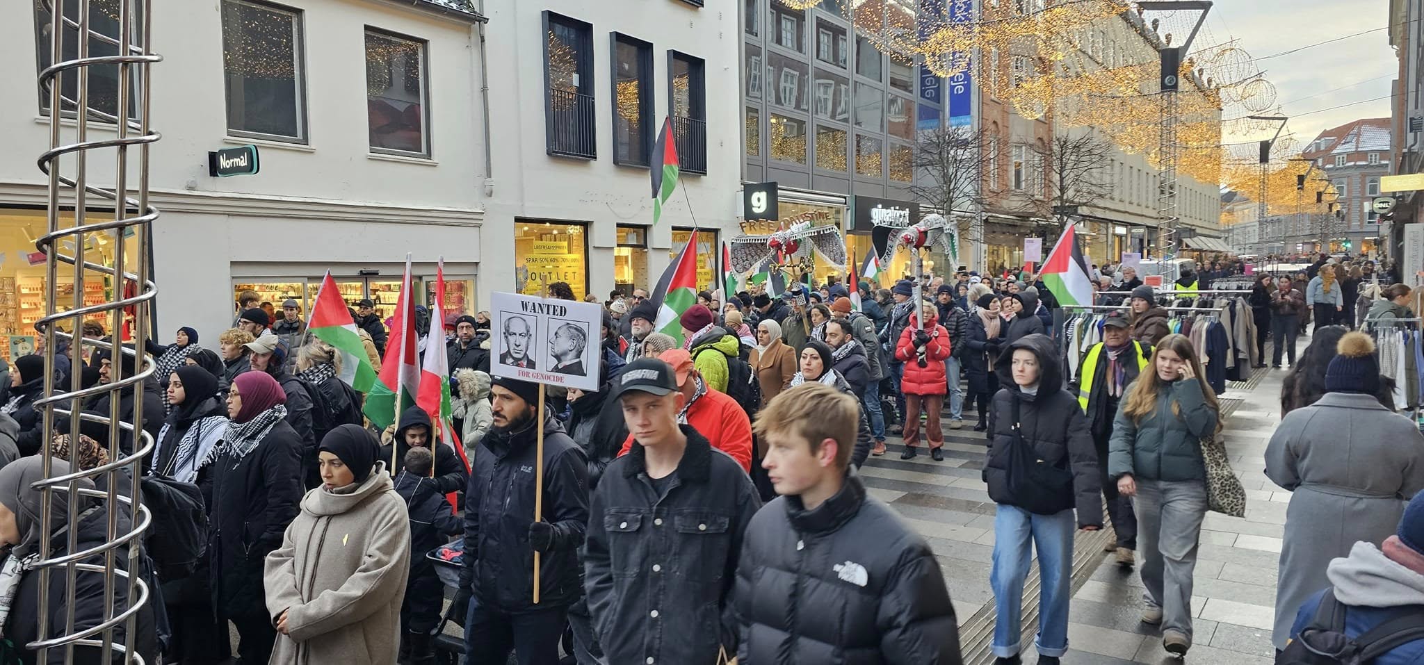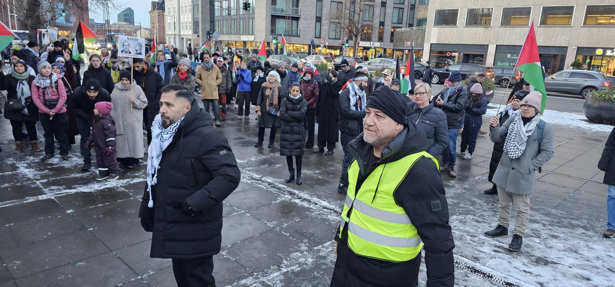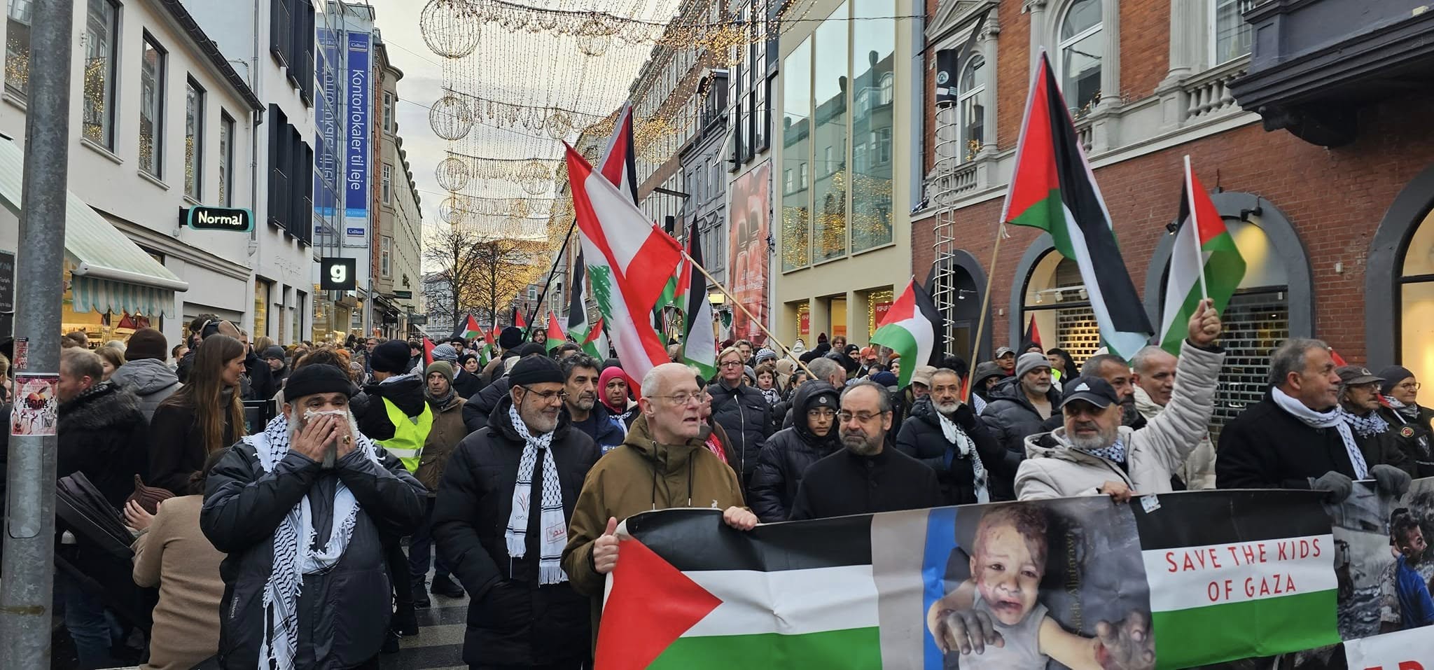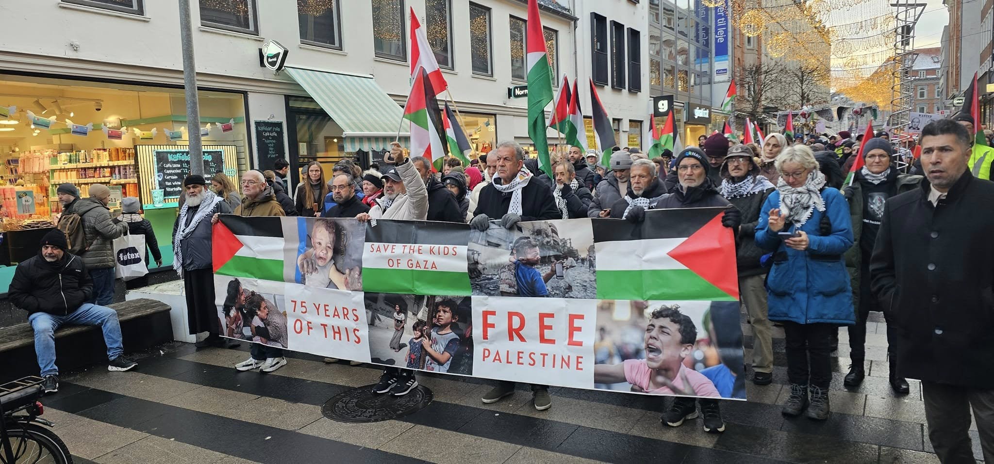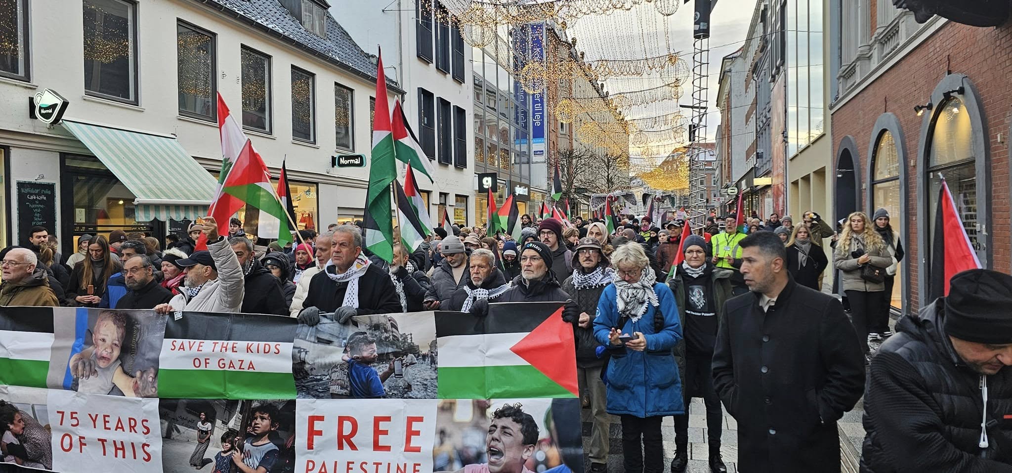Massive march in solidarity with Gaza and Lebanon in a very cold weather of Aarhus, Denmark